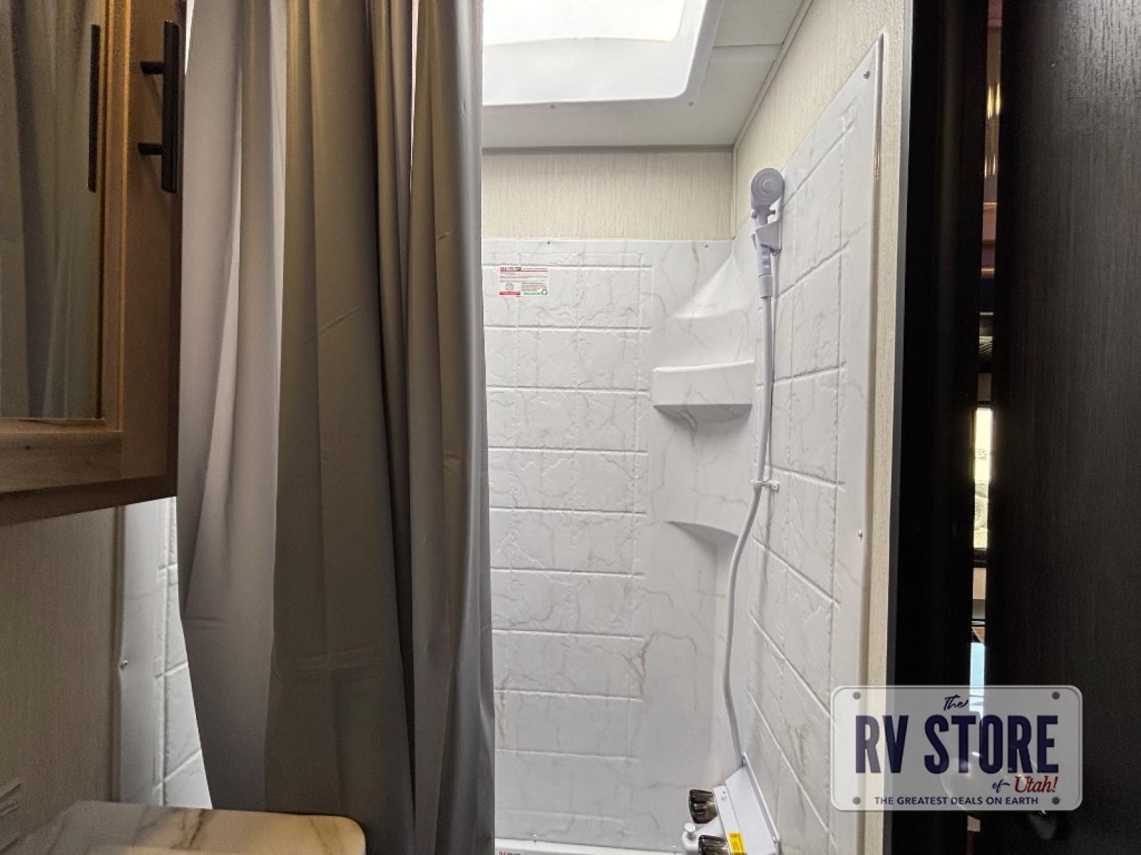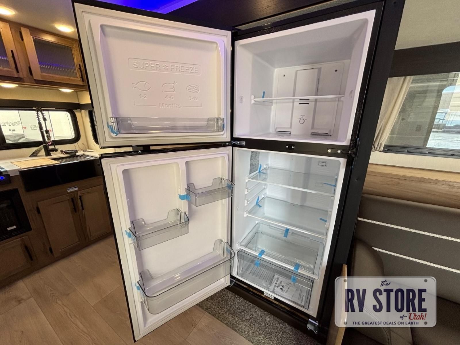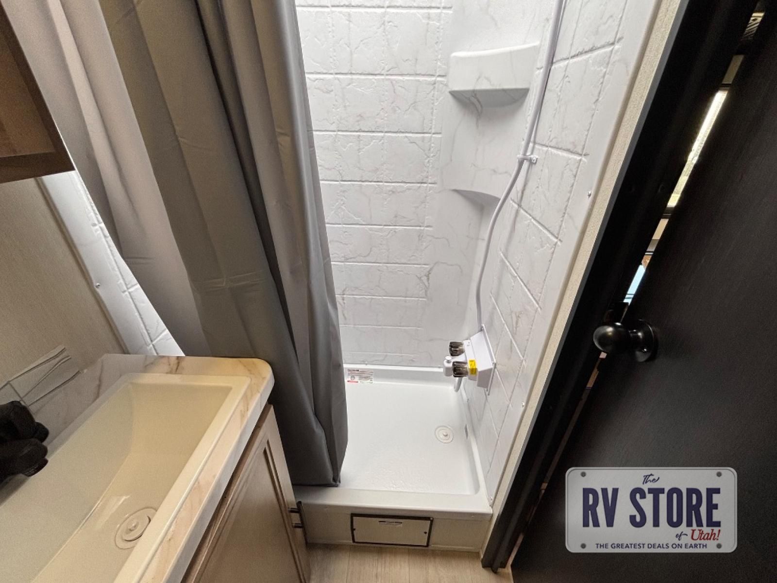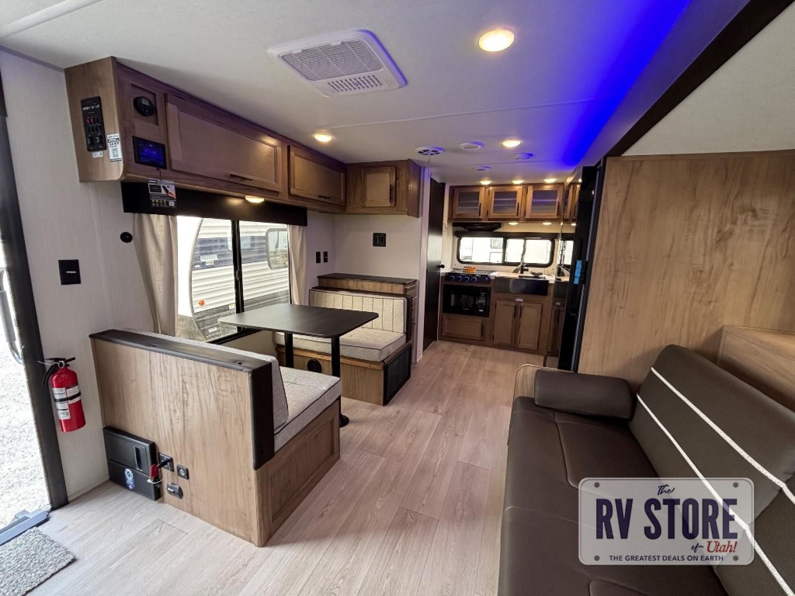 You will love traveling with this Cherokee Grey Wolf in tow. This is a great unit for a couple or family as the booth dinette and sofa can both be used for added sleeping for children or quests if needed. There is a comfortable RV king bed up front that you will love for a great night's rest with storage space in nightstands and wardrobes for your clothing and things on either side of the bed. A cooktop and air fryer is available for cooking inside, and the rear corner bath includes a tub/shower, toilet and sink. A nice 15' awning creates more outdoor living space to enjoy protected from the elements both day and night with an LED light strip for after dark. You can also add a TV on the exterior as it has an outside TV mount.