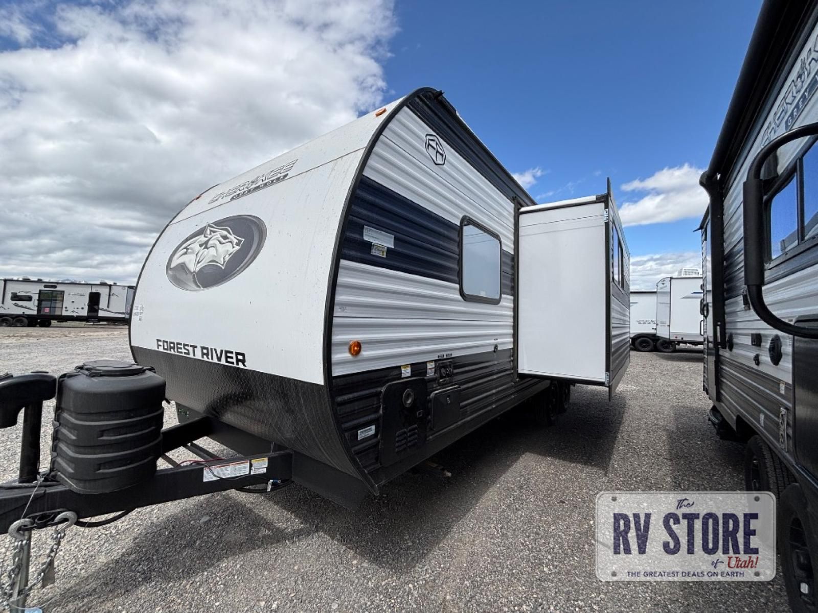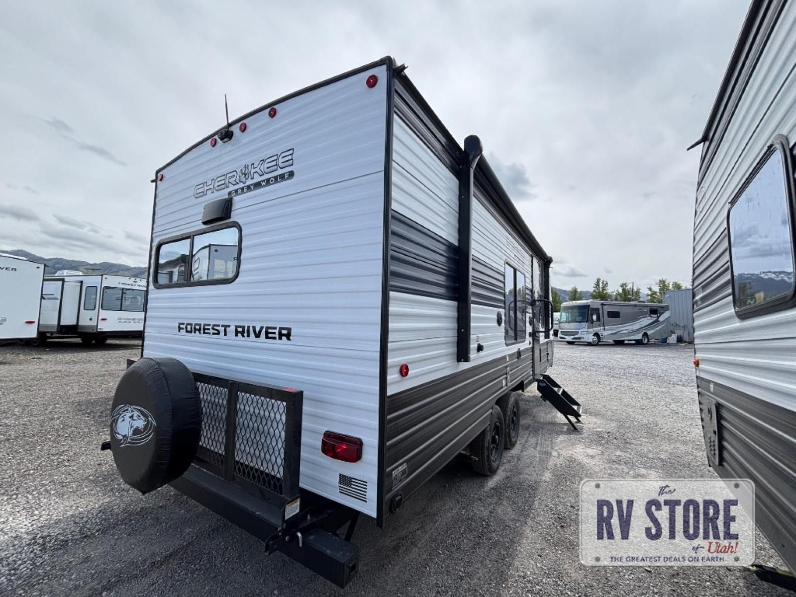 Whether it's a journey that will take you to new locations or a tried-and-true getaway to that favorite and memorable destination, the Forest River Cherokee Grey Wolf travel trailers and toy haulers are going to make the trip worth it every single time! You can travel in confidence with the premium wheel package, seamless roofing membrane with heat reflectivity, Power Gear frame technology with space-saver rail design, and Cherokee back-up camera system. The Cherokee Grey Wolf's interior is highly attractive with its stainless steel kitchen suite package and premium bedding ensemble and comforter, and 8" ceiling-mounted subwoofer with accent lighting. You will also find a black waste tank flush-out kit, an outside shower with hot and cold water, an armored underbelly tank enclosure, and an RV grill quick connect.Â