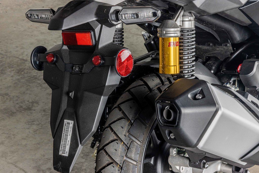The suspension boasts the longest travel in its class. It has a Showa® telescopic fork in front and a pair of premium Showa® shocks in the rear, featuring remote piggyback reservoirs and triple-rate springs.