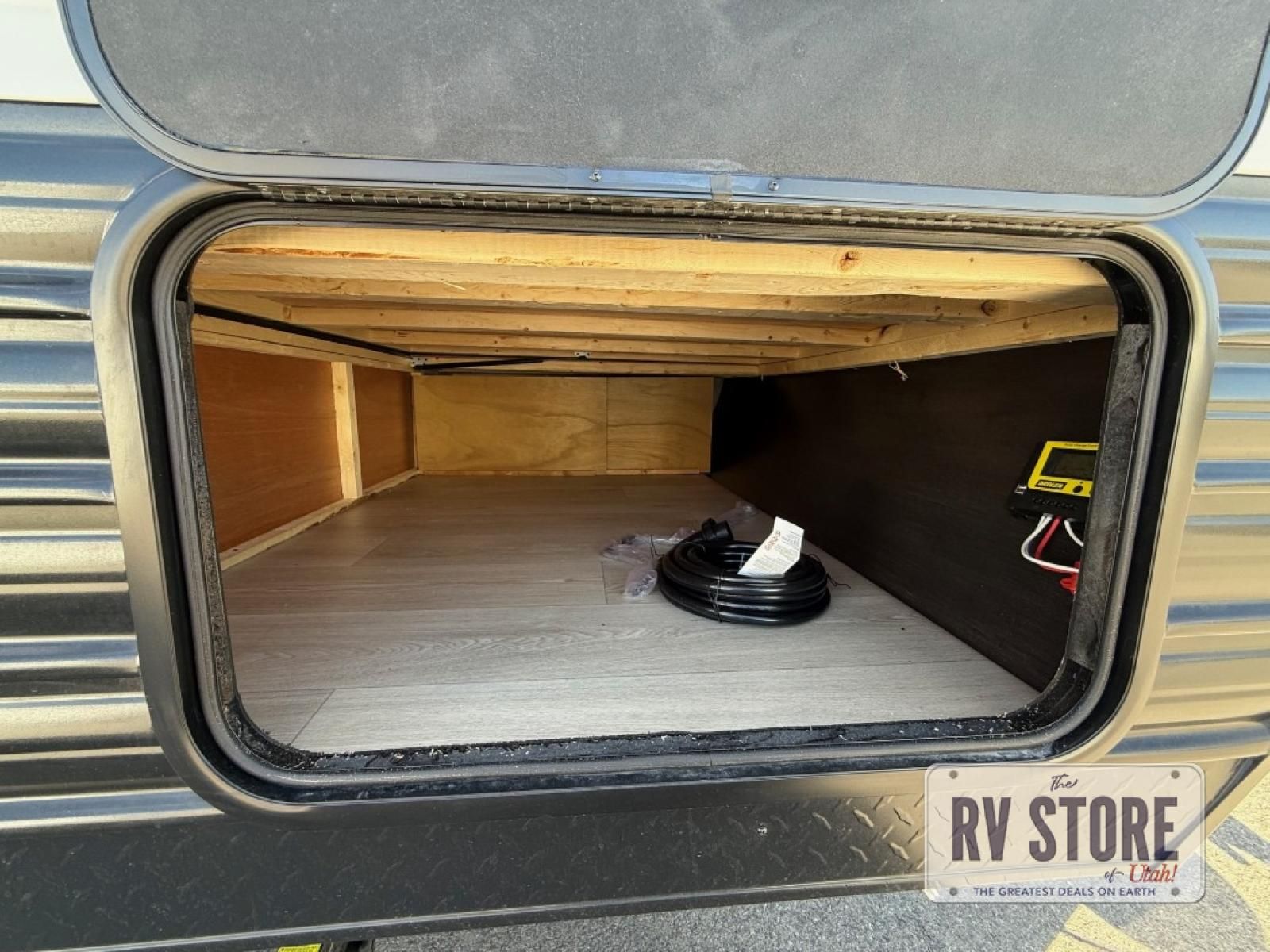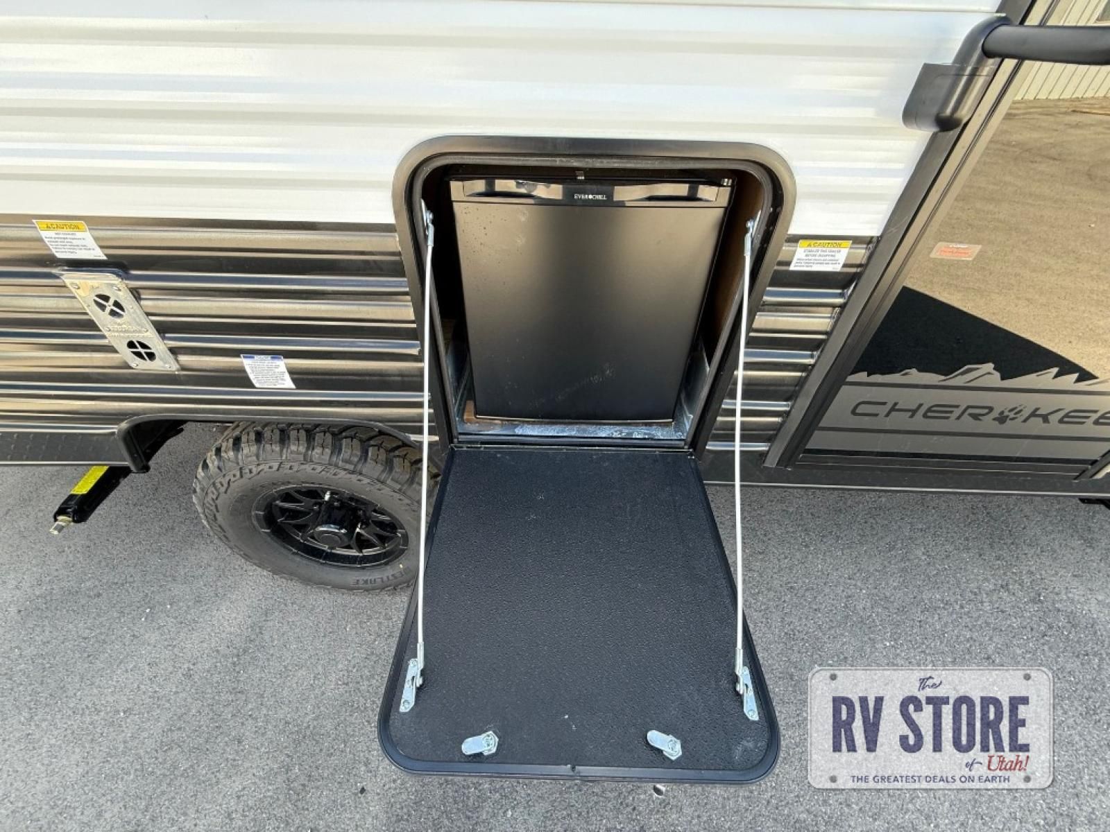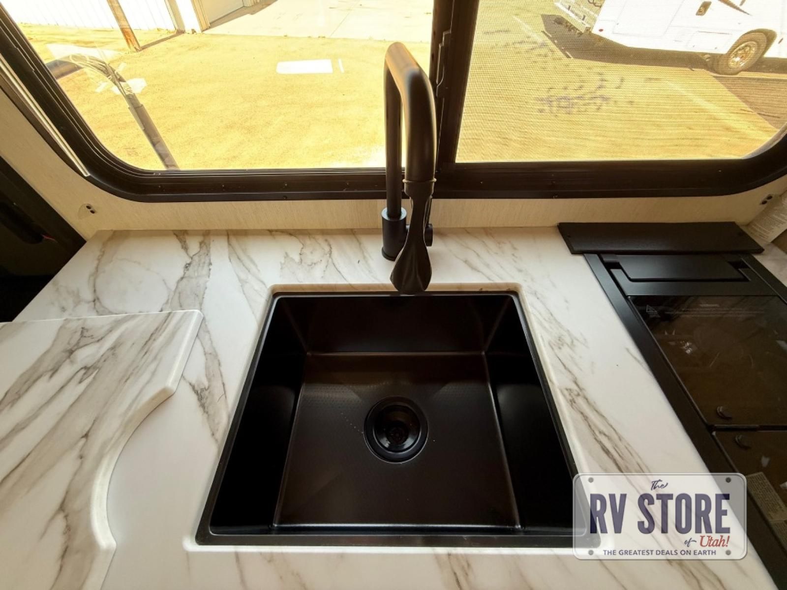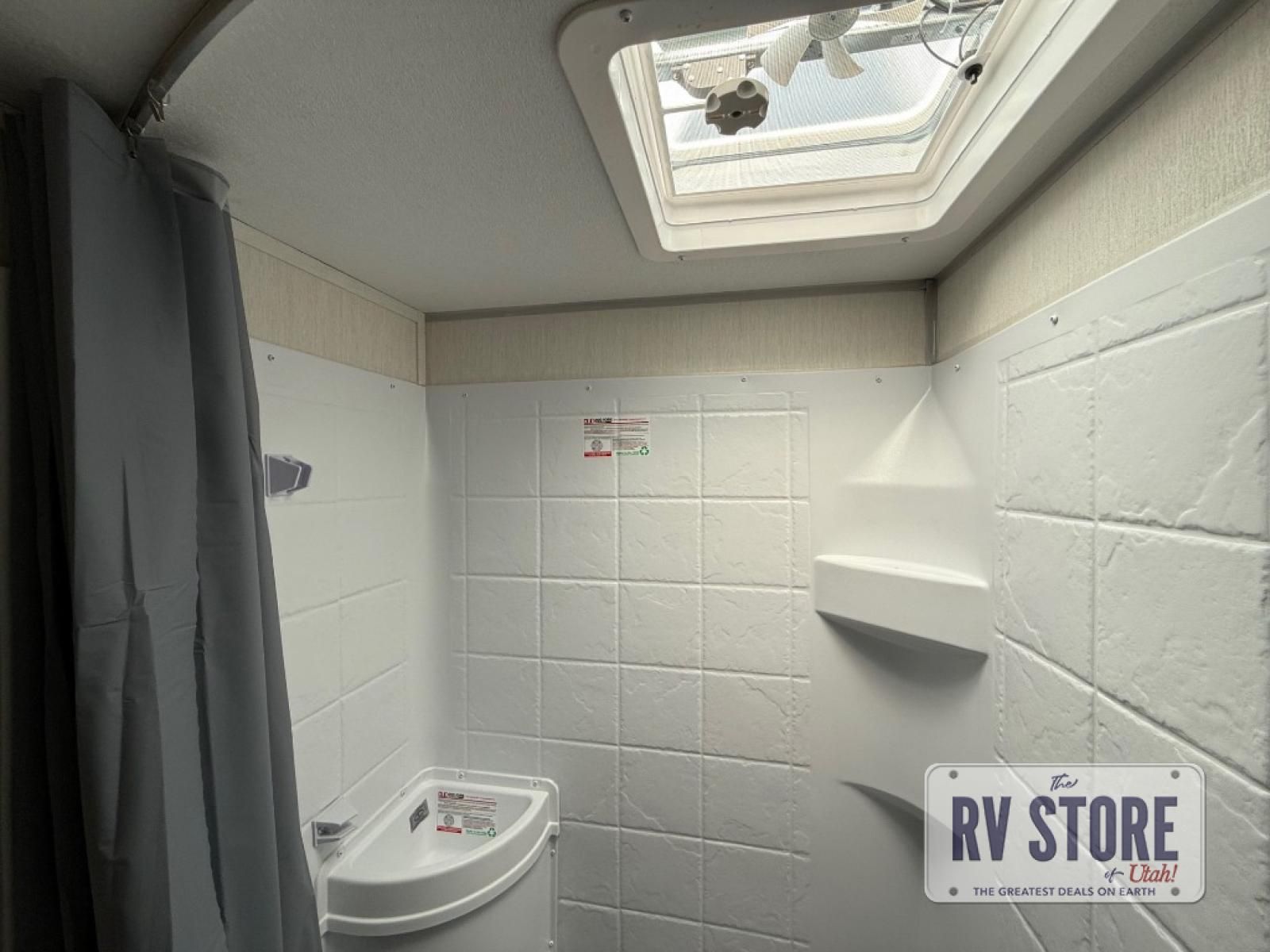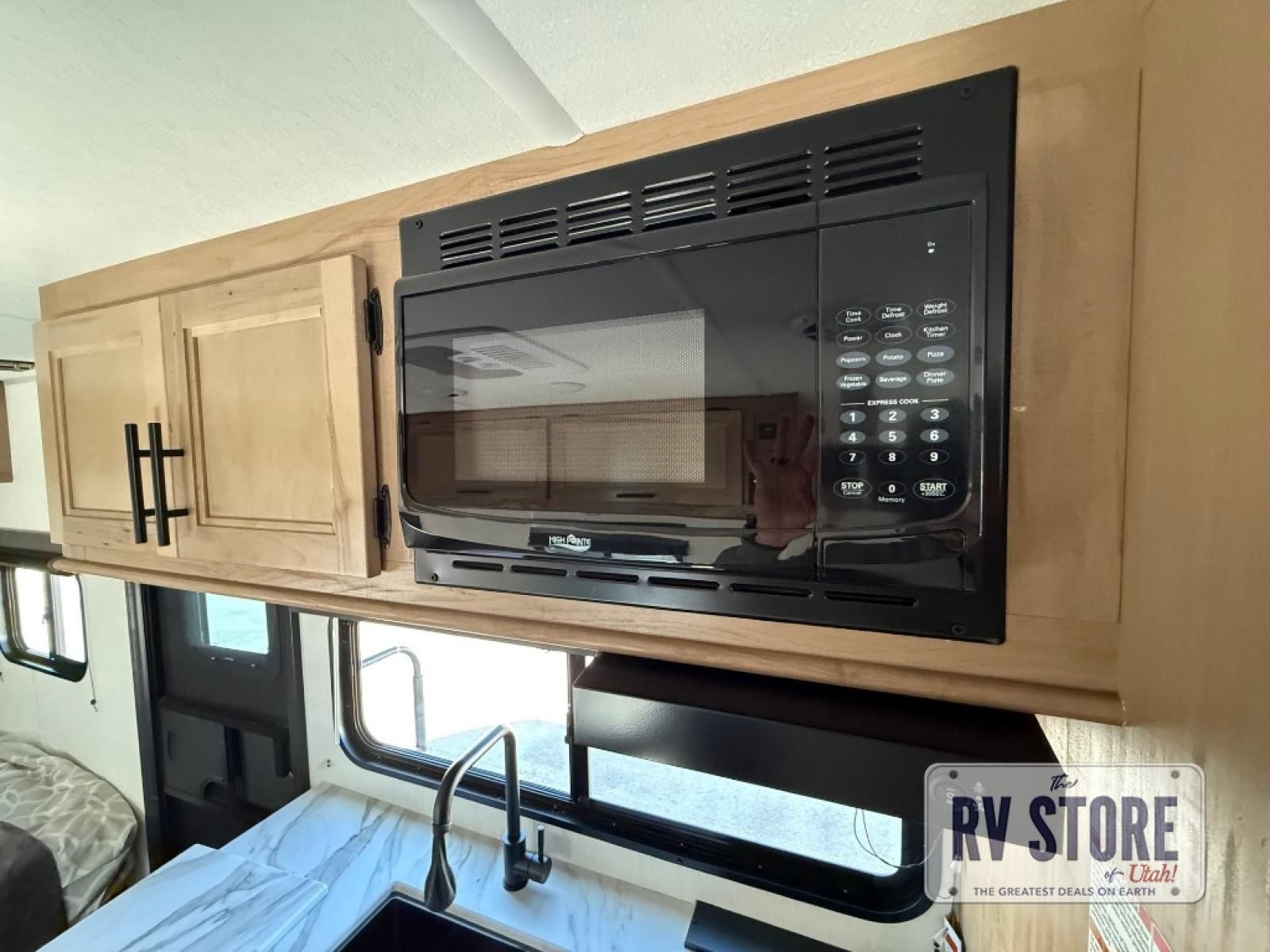 The whole family can sleep comfortably in this travel trailer! It has a set of bunk beds for the kids to sleep on, and you can sleep comfortably on the front queen bed with overhead cabinets and a shelf. There is even an exterior storage plus door that accesses the storage space under the bottom bunk. The chef will enjoy preparing their best home cooked meals either indoors with the high output cooktop or at the outside mini kitchen while staying protected by the 12' power awning!