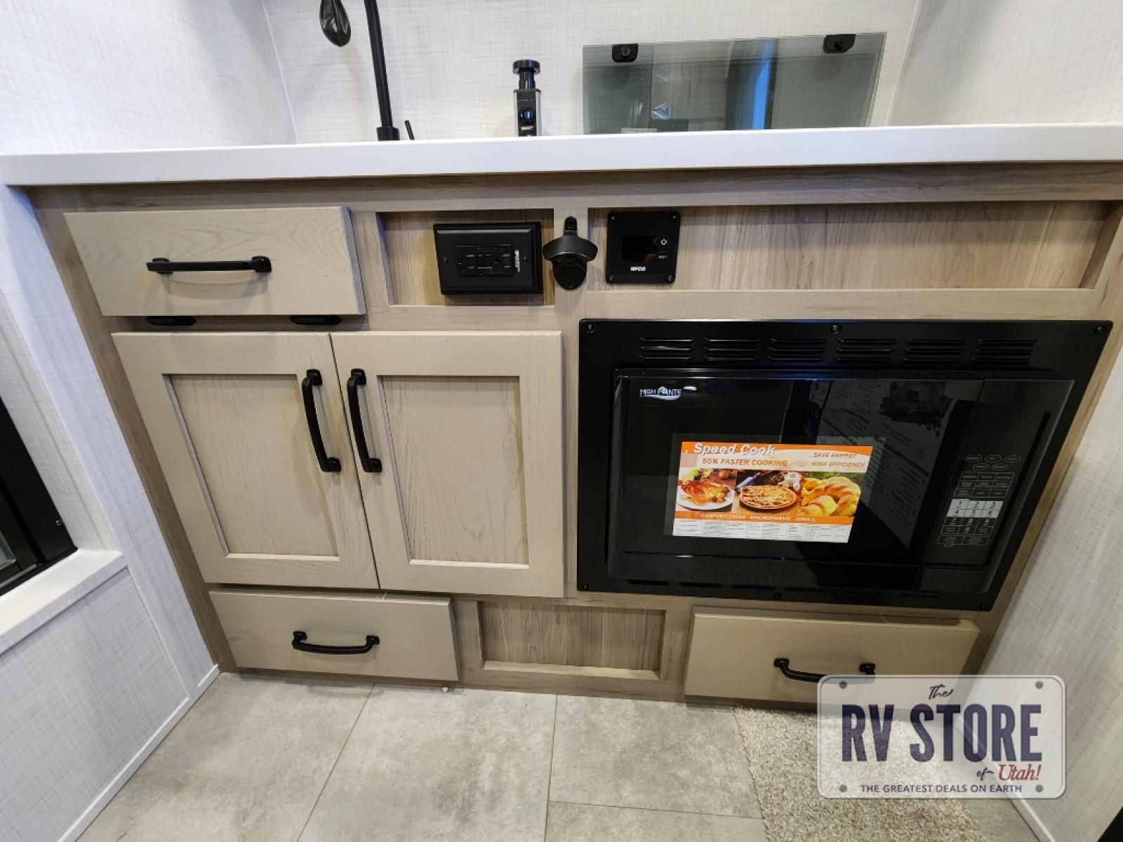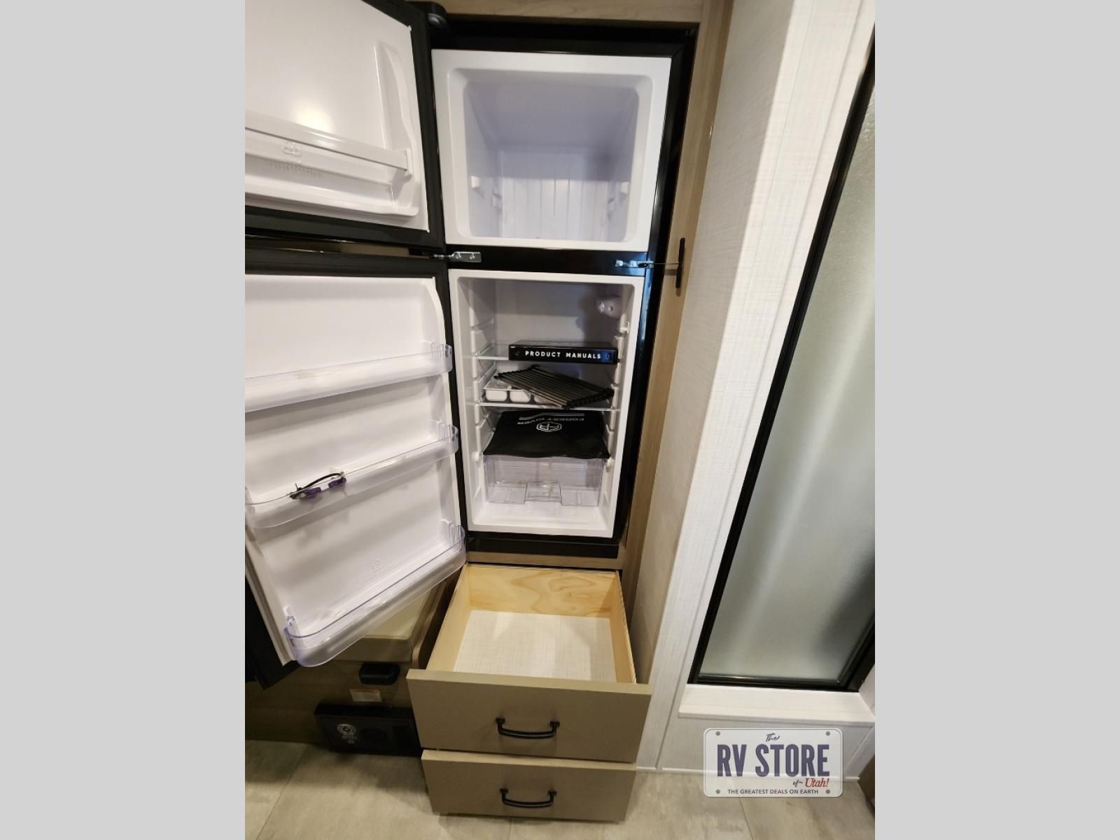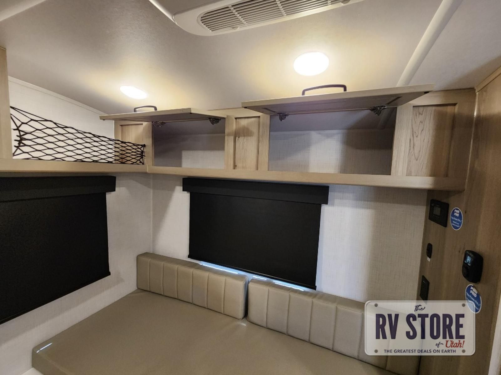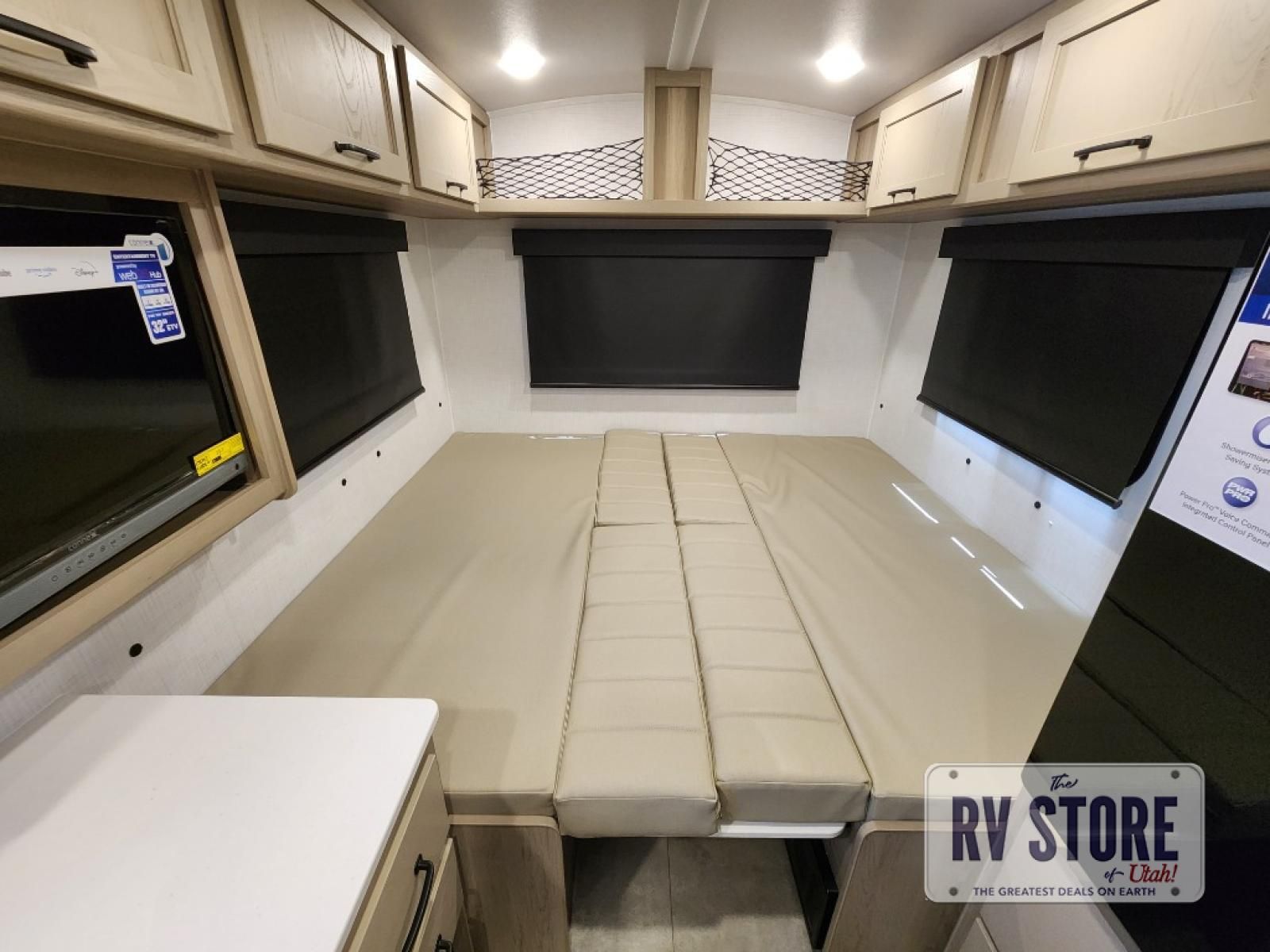 It won't be hard to find comfort in this travel trailer. It may be smaller on size, but it doesn't skim on features. The twin beds convert to a king-size bed for your comfort, and there is even a 32" 12V TV to enjoy in the evenings. The kitchen includes a three burner cooktop, a convection microwave, plus a 12V refrigerator for perishables. You'll find overhead compartments for your valuables and exterior storage for your hiking gear!