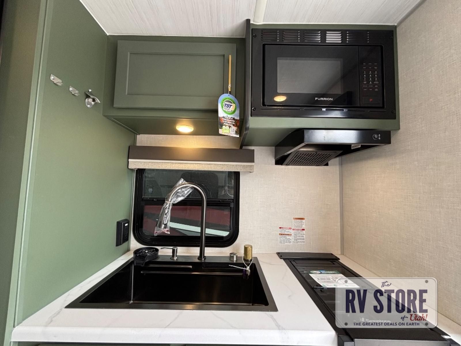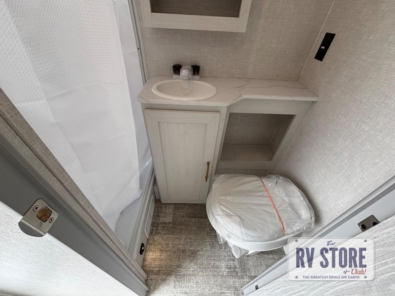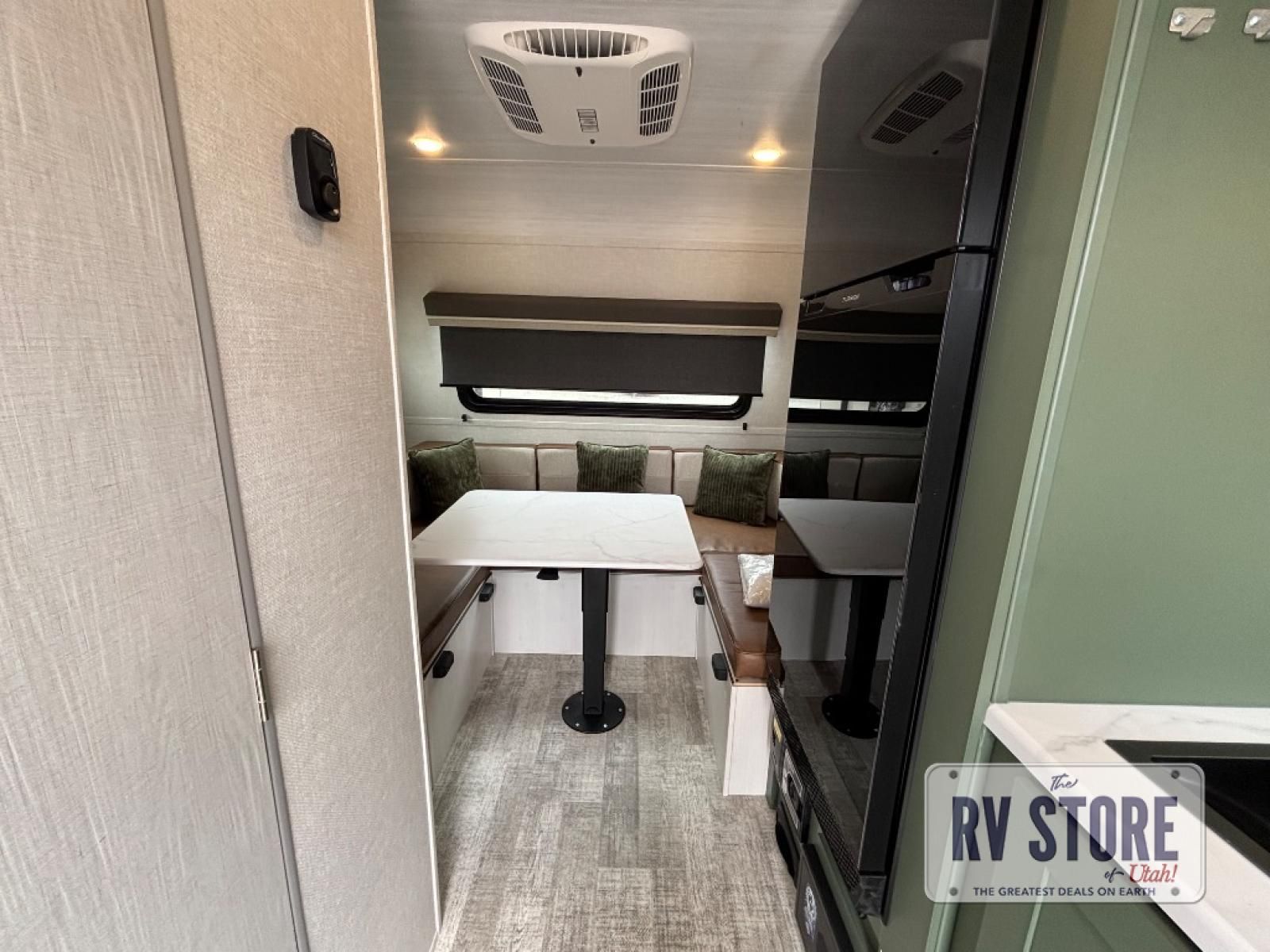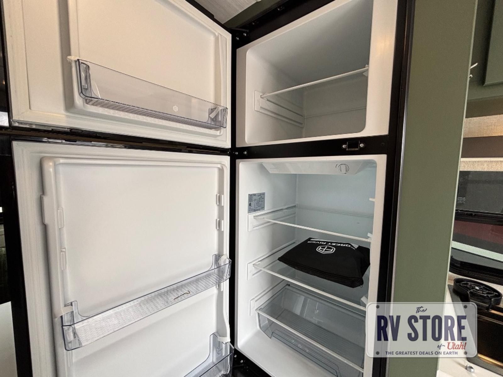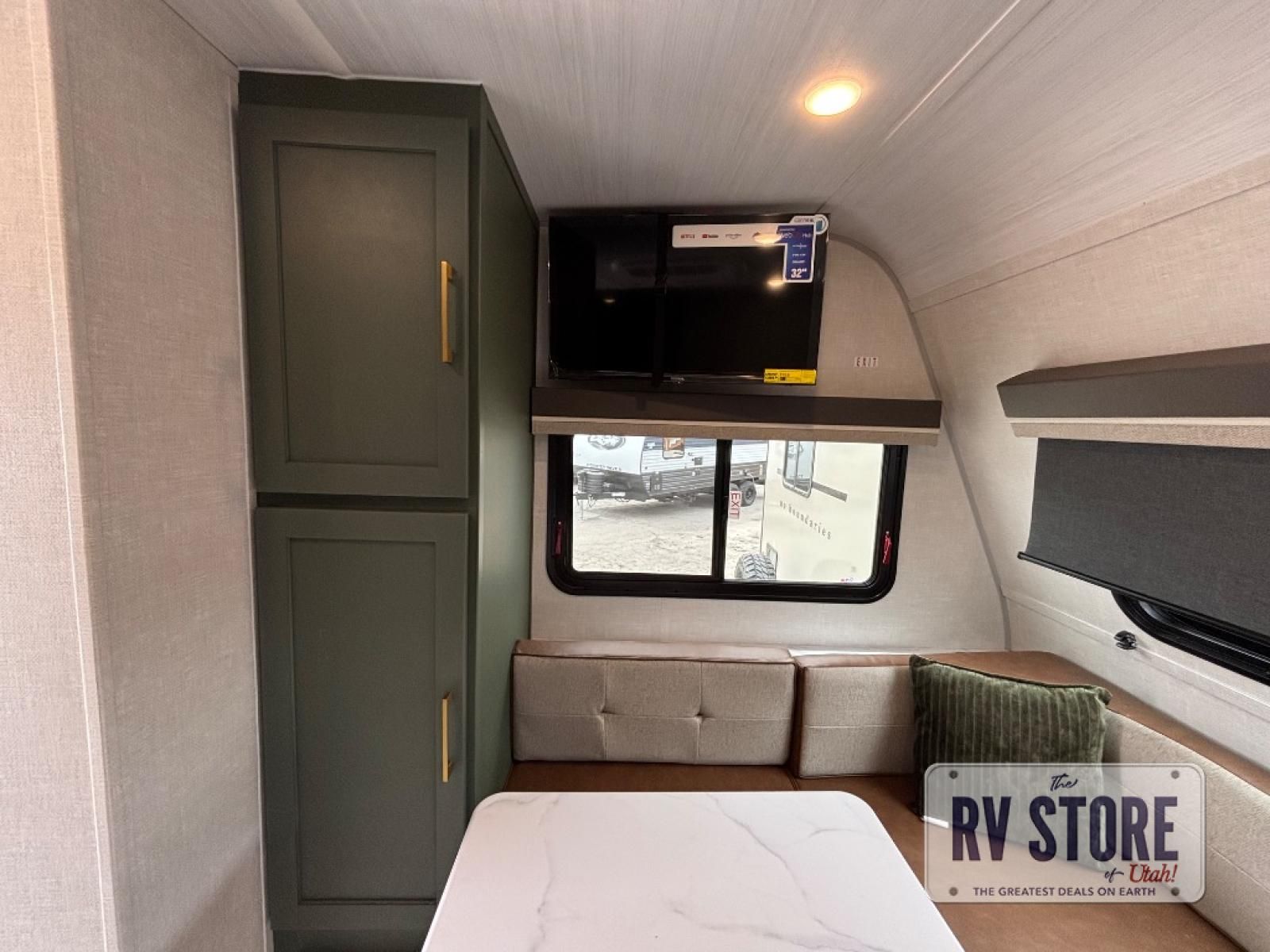 This easy to tow trailer is perfect for weekend trips to the lake! Once you're set up at camp, put out the patio awning, make lunch on the outside kitchen, and grab your camp chairs from the slam latch cargo doors with pass-thru lighting. The kitchen includes an all-in-one microwave and air fryer, plus a pantry and refrigerator for food storage. When it's time to call it a night, the front queen bed with a U-shaped dinette is sure to bring comfort!
