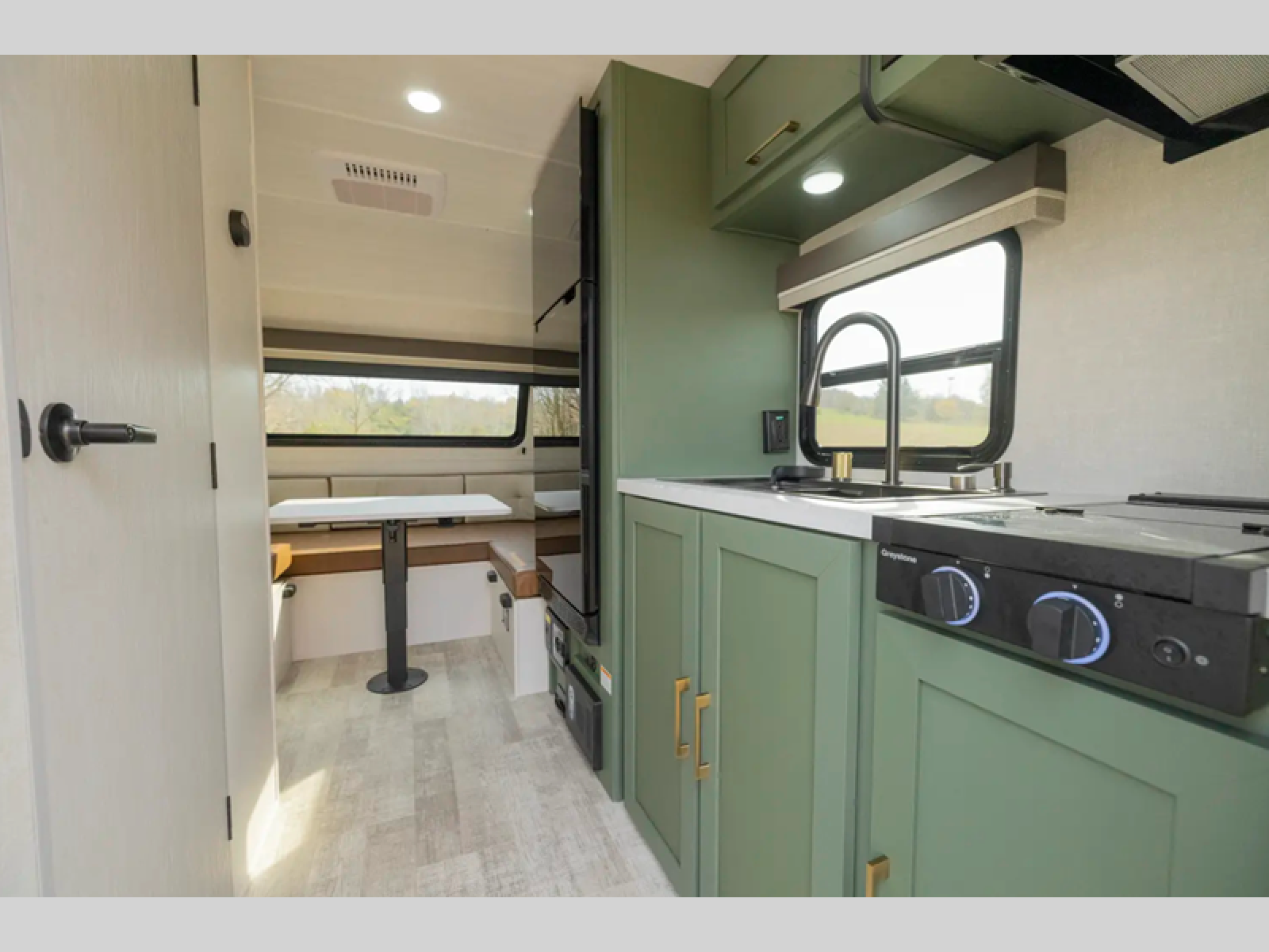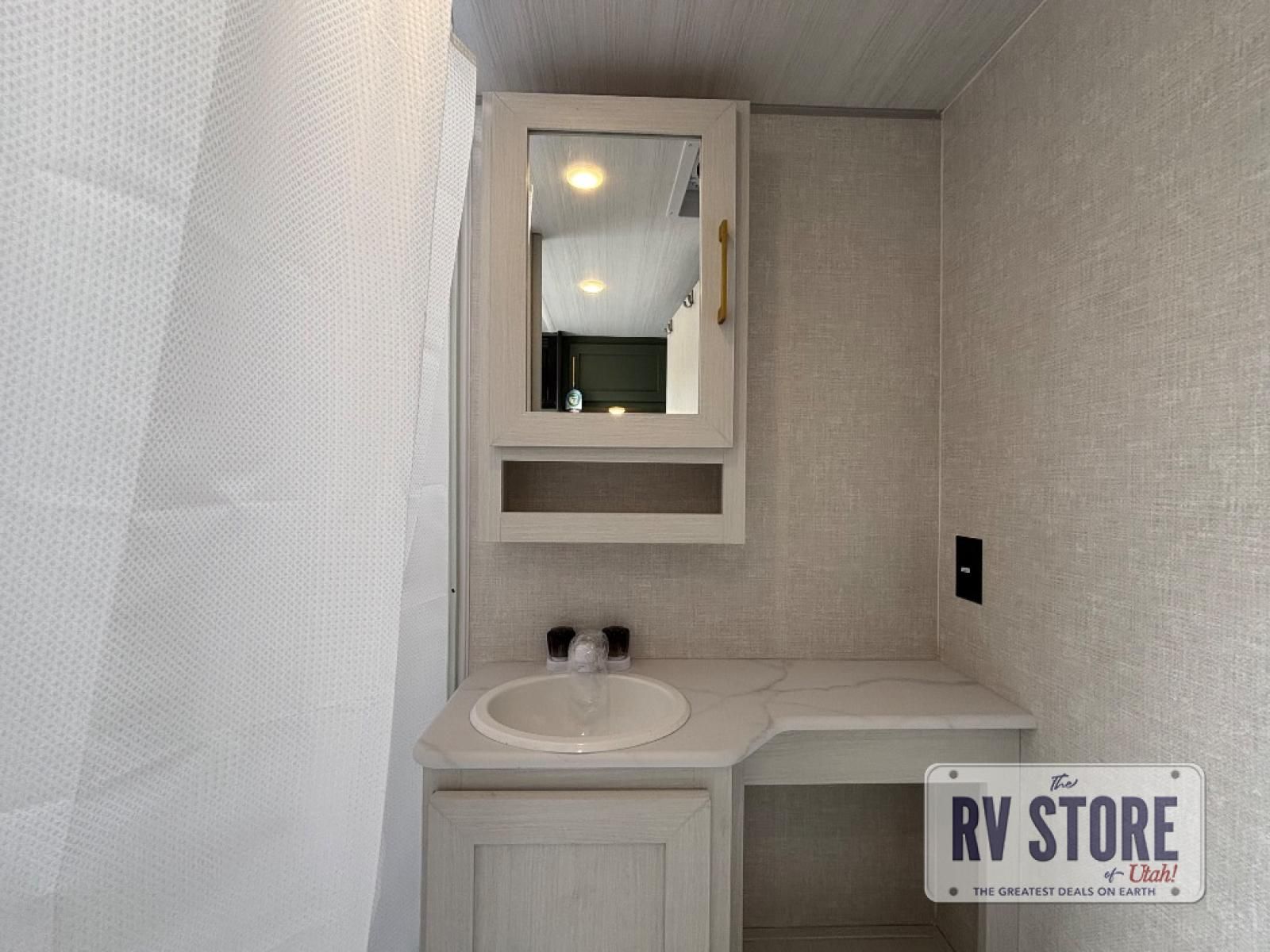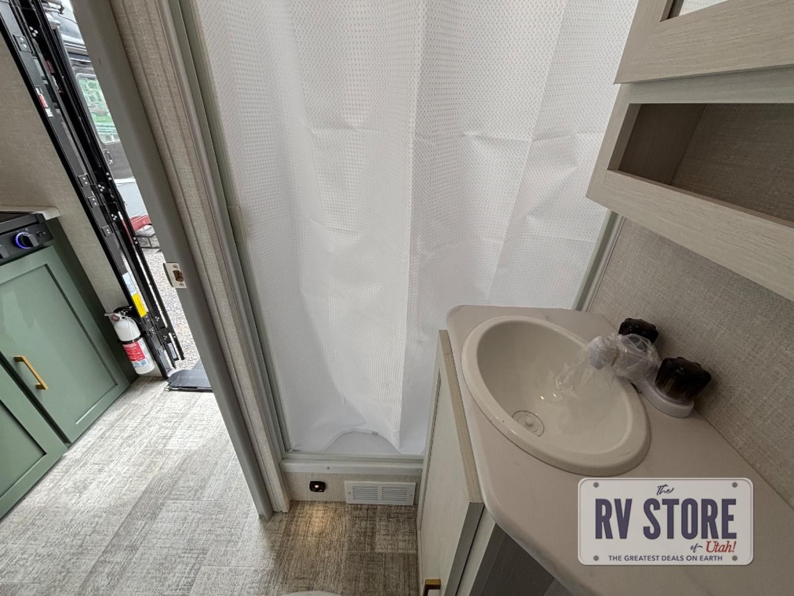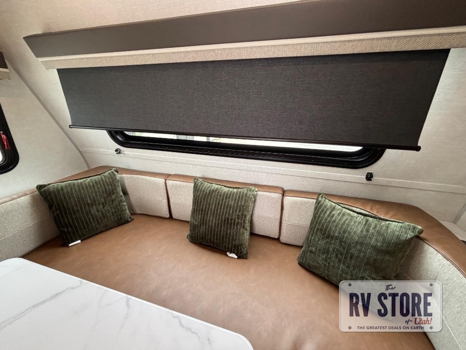 This easy to tow trailer is perfect for weekend trips to the lake! Once you're set up at camp, put out the patio awning, make lunch on the outside kitchen, and grab your camp chairs from the slam latch cargo doors with pass-thru lighting. The kitchen includes an all-in-one microwave and air fryer, plus a pantry and refrigerator for food storage. When it's time to call it a night, the front queen bed with a U-shaped dinette is sure to bring comfort!