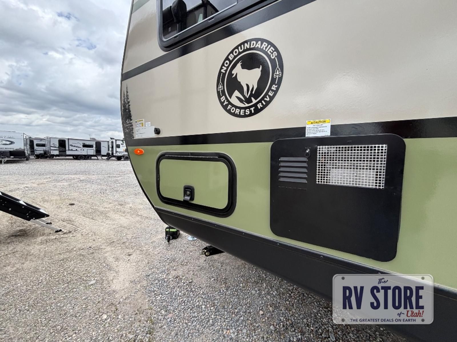 If you want to break free from the travel constraints of standard trailers, then you must choose the Forest River No Boundaries travel trailer because they are rugged and ready for adventure! These 18, 19, and 20 Series trailers are built with a laminated wall with aluminum construction and Azdel composite substrate for added durability. There is also a rugged tire and wheel package with a spare tire included, a fully enclosed underbelly, and a Cold Weather Package with 12V heated tank pads and forced air to help extend your camping season. A 15K A/C will provide comfort during the summer, and a Bluetooth speaker will let you listen to your favorite tunes while you're at the campground. Choose the optional Beast Mode Package for an additional 200W solar panel, 2,000W inverter, and Beast Mode independent suspension!