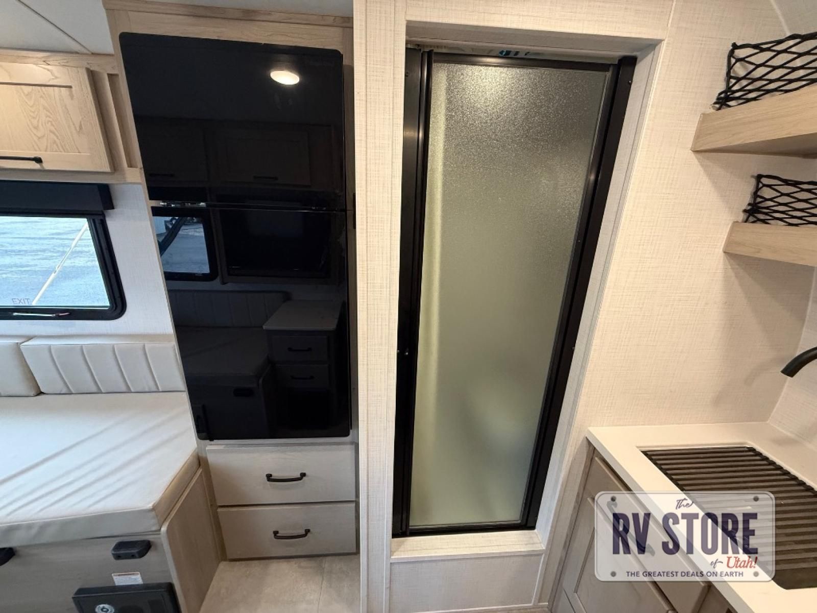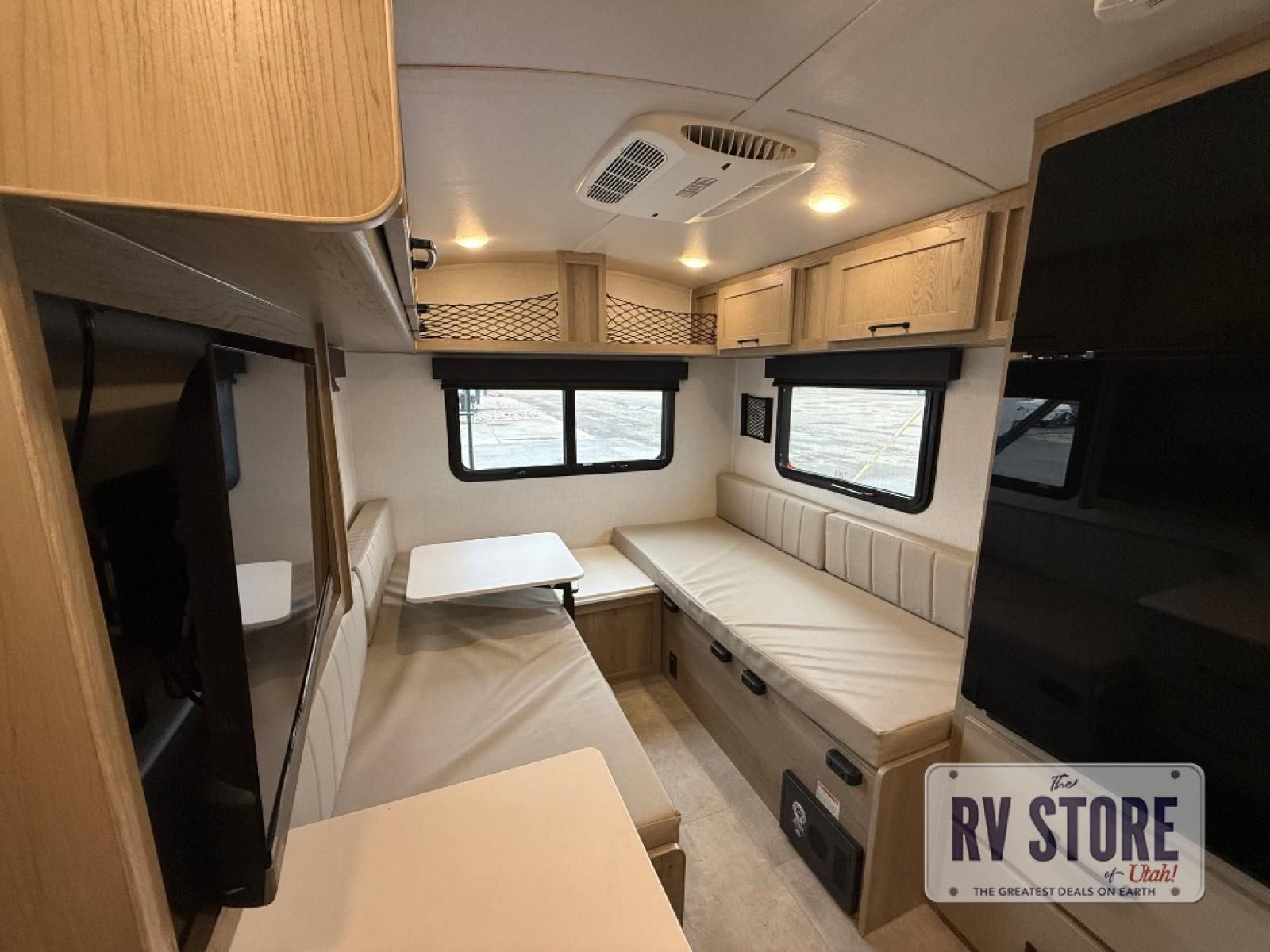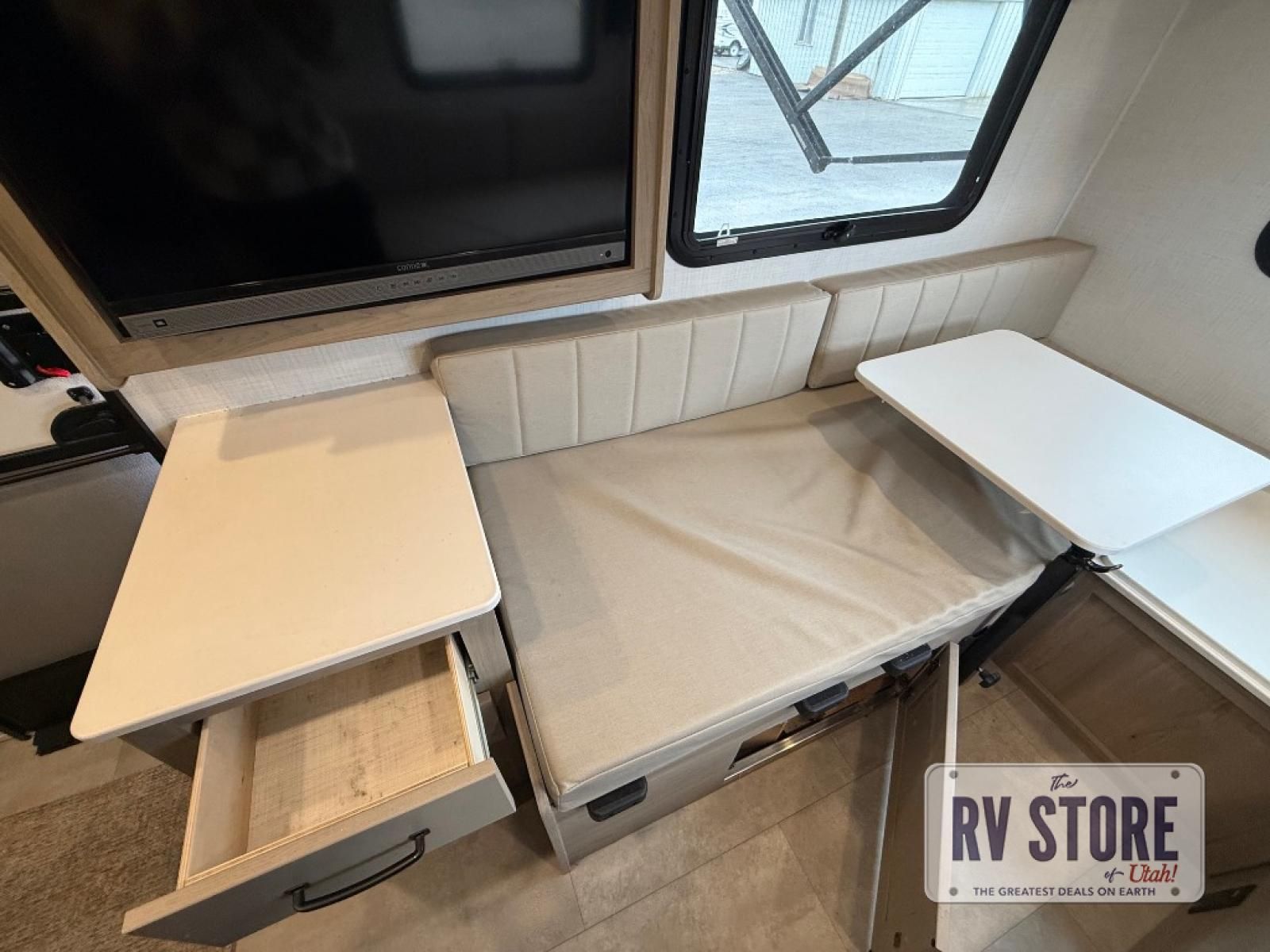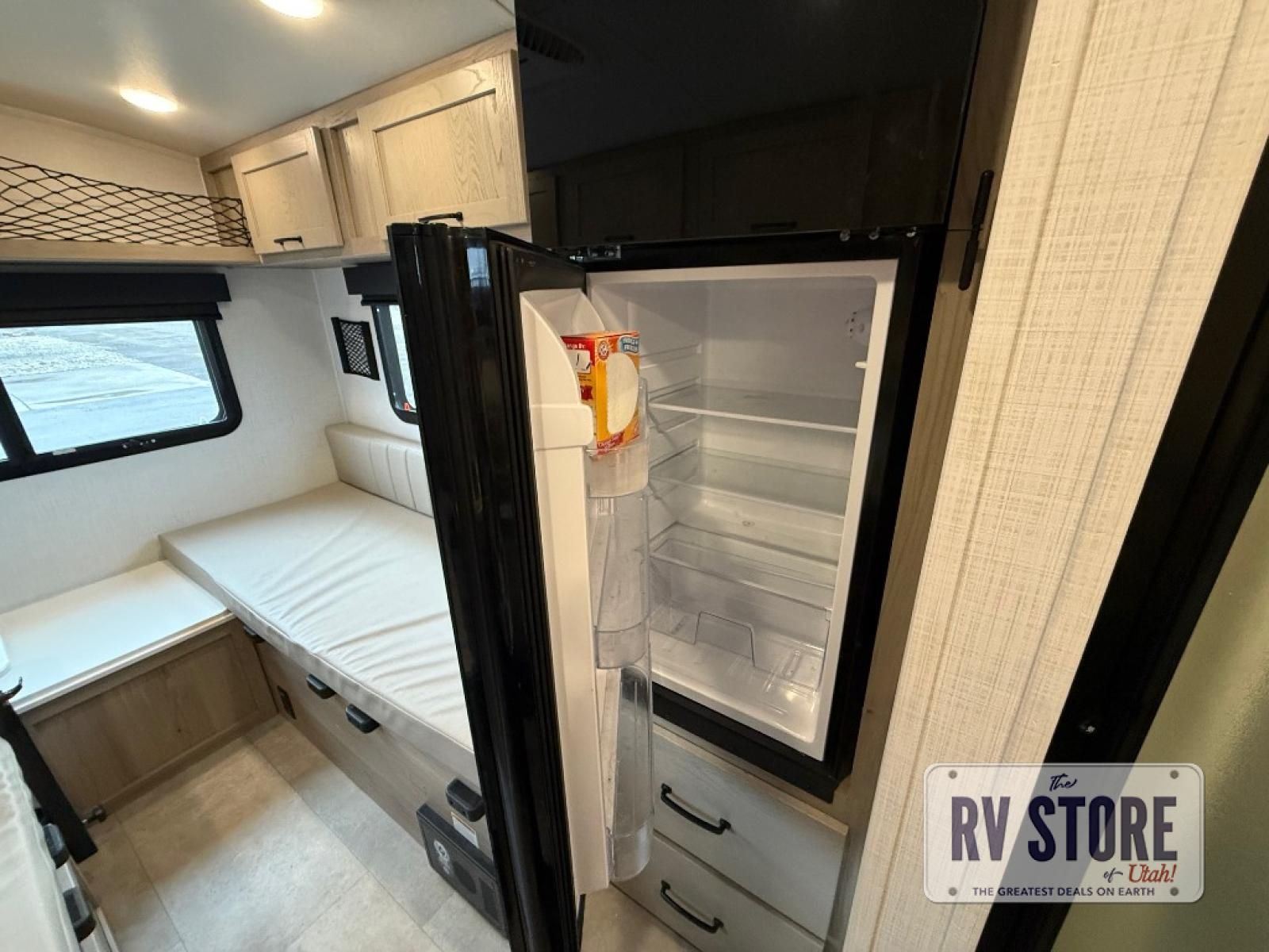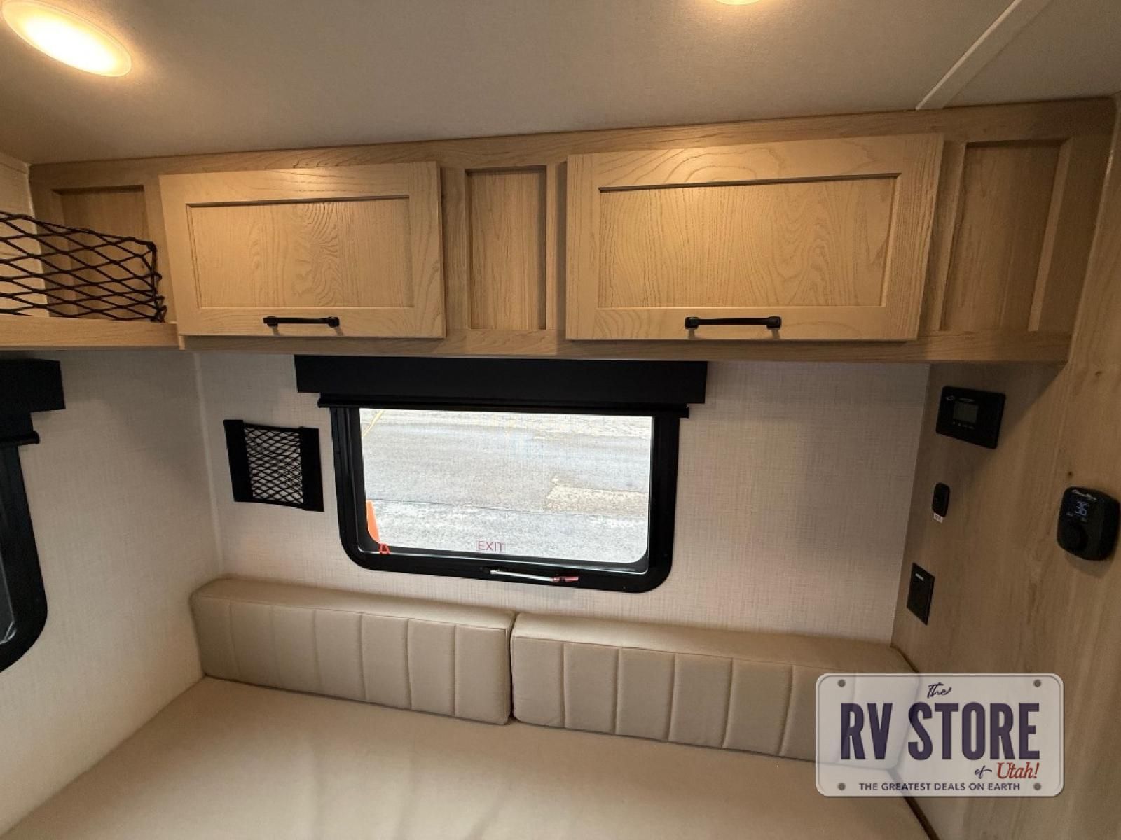 It won't be hard to find comfort in this travel trailer. It may be smaller on size, but it doesn't skim on features. The twin beds convert to a king-size bed for your comfort, and there is even a 32" 12V TV to enjoy in the evenings. The kitchen includes a three burner cooktop, a convection microwave, plus a 12V refrigerator for perishables. You'll find overhead compartments for your valuables and exterior storage for your hiking gear!