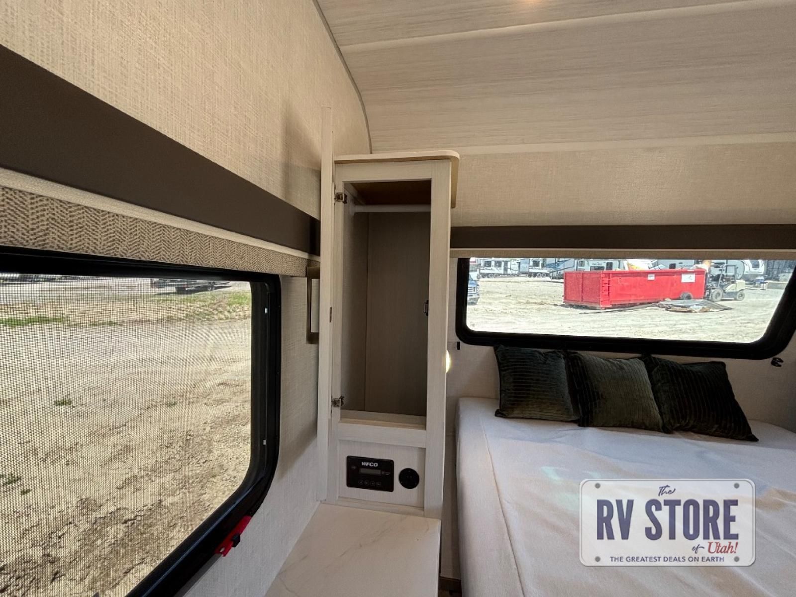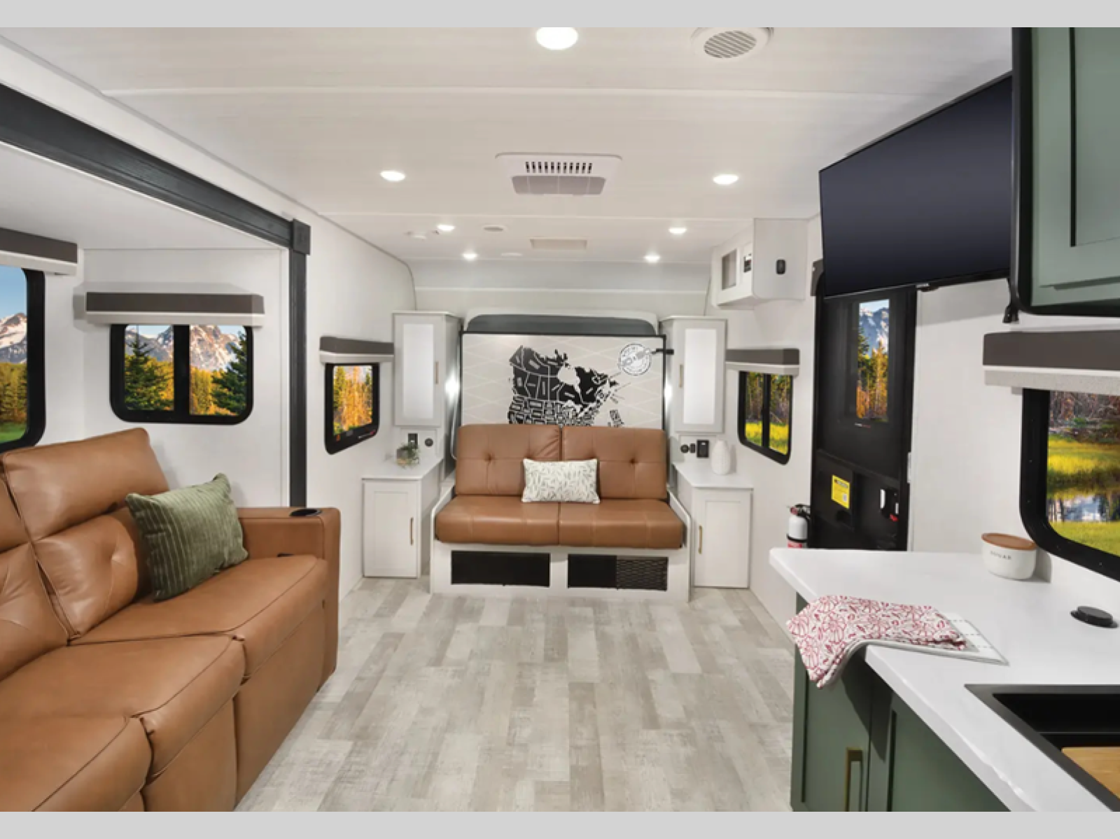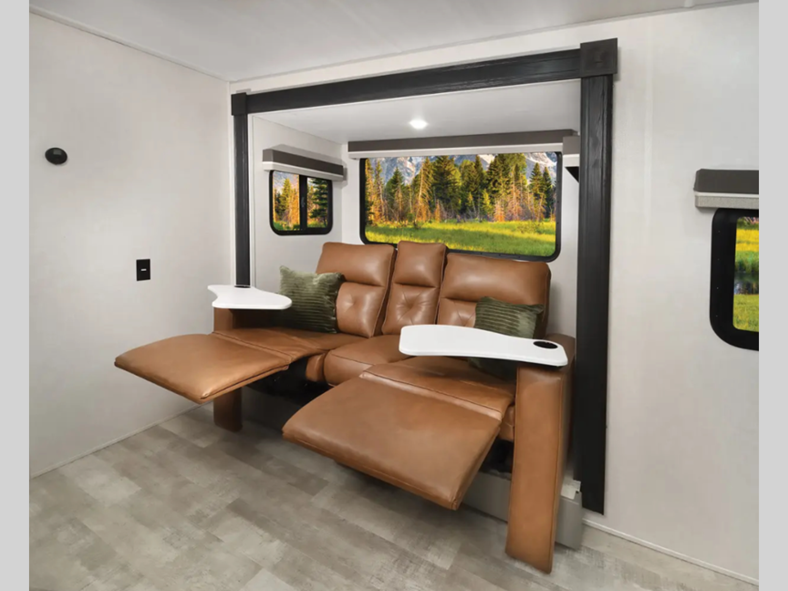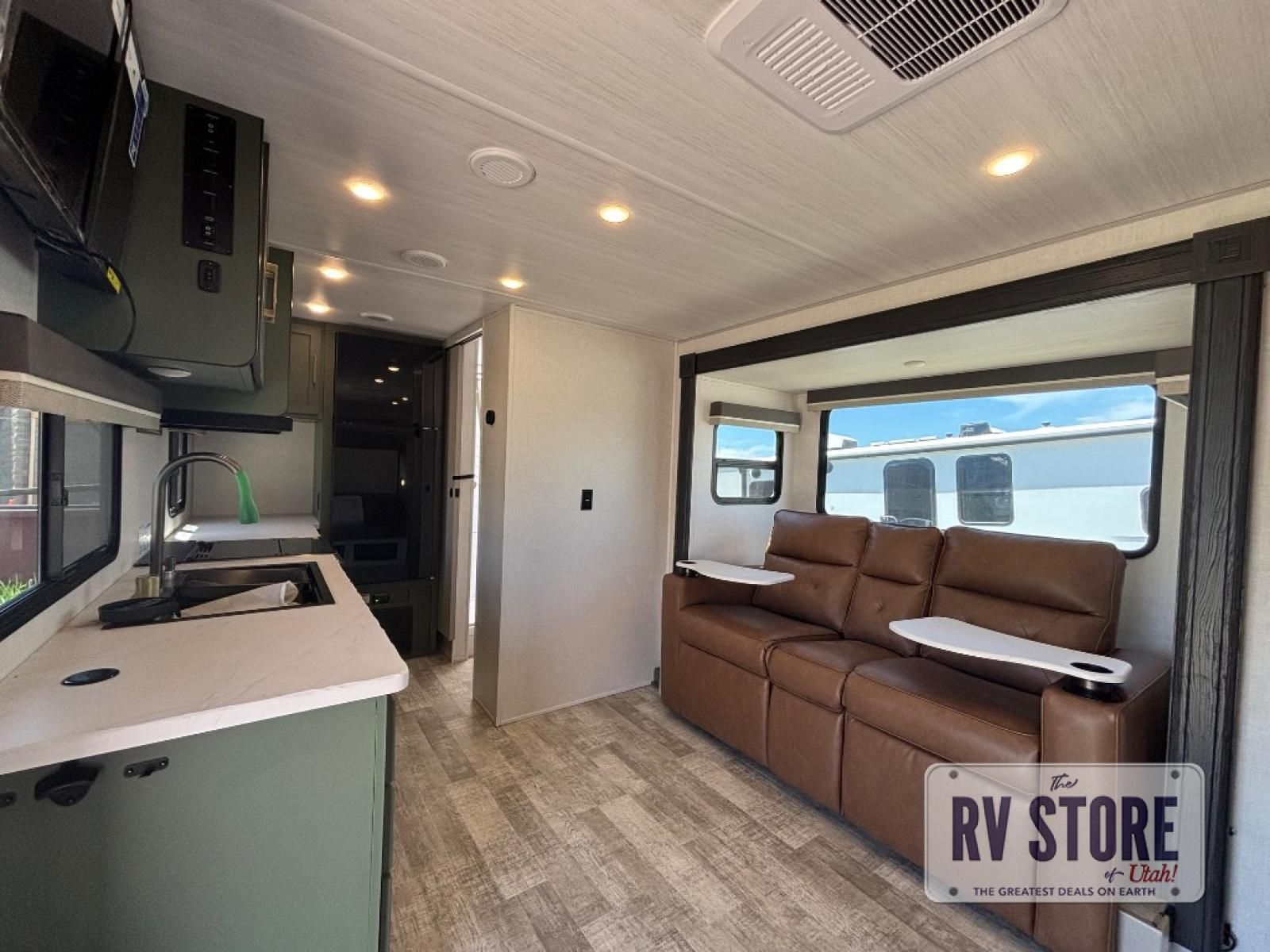 You'll love the versatility and space you'll have in this couple's trailer! The front Murphy bed provides seating and sleeping space, and the wardrobes will help keep your items organized. There is theater seating across from the TV so you can relax each evening, or you may just find yourselves outdoors under the patio awning. A full kitchen lets you cook and store meals while at the campground, and the full bath on board means you won't have to use the camp's facilities! The Beast Mode Package on this model comes with an additional 200W solar panel, a 2,000W inverter, and an independent suspension for better clearance and handling!