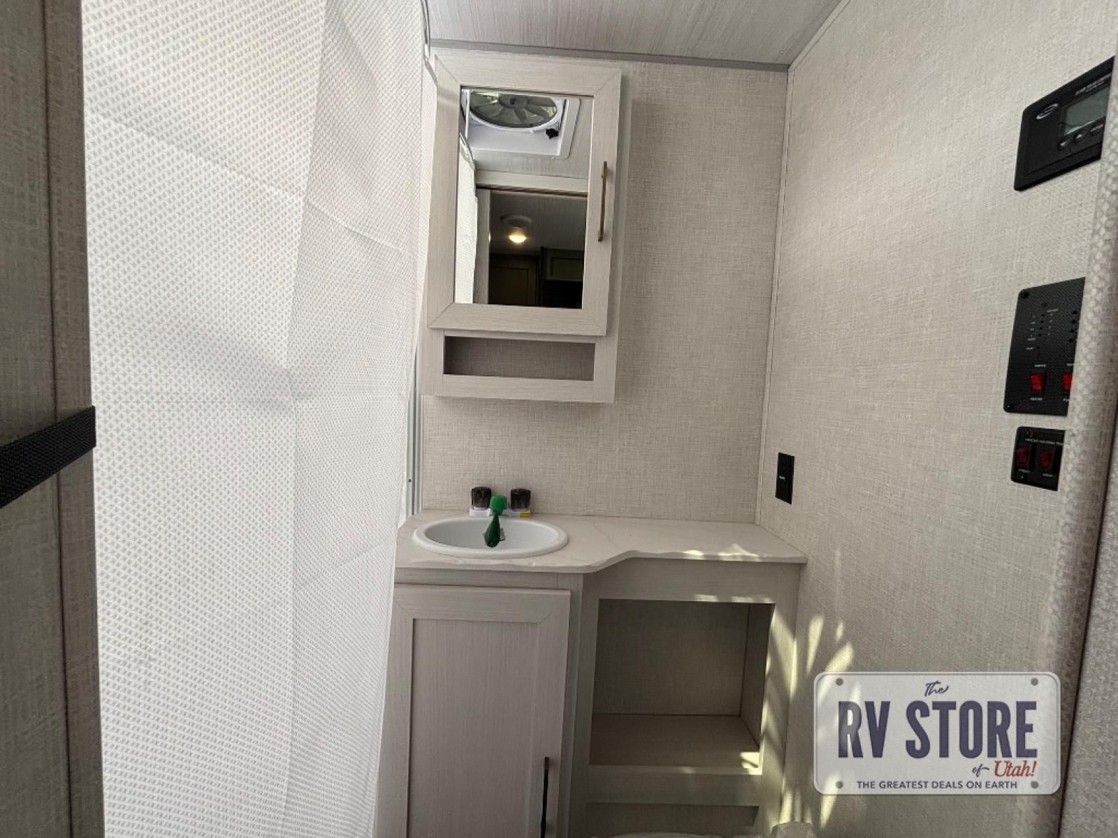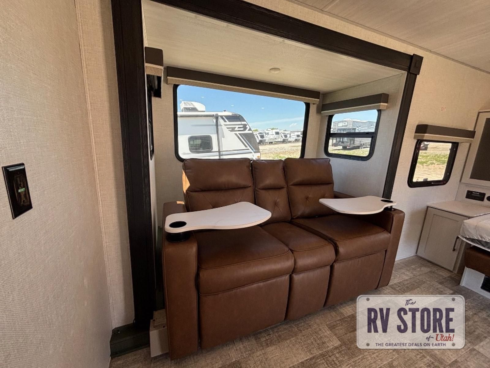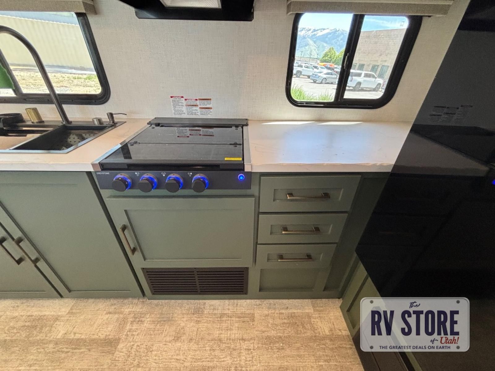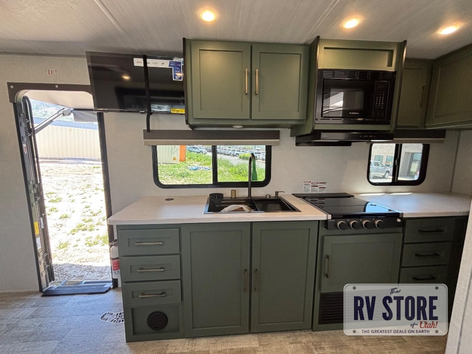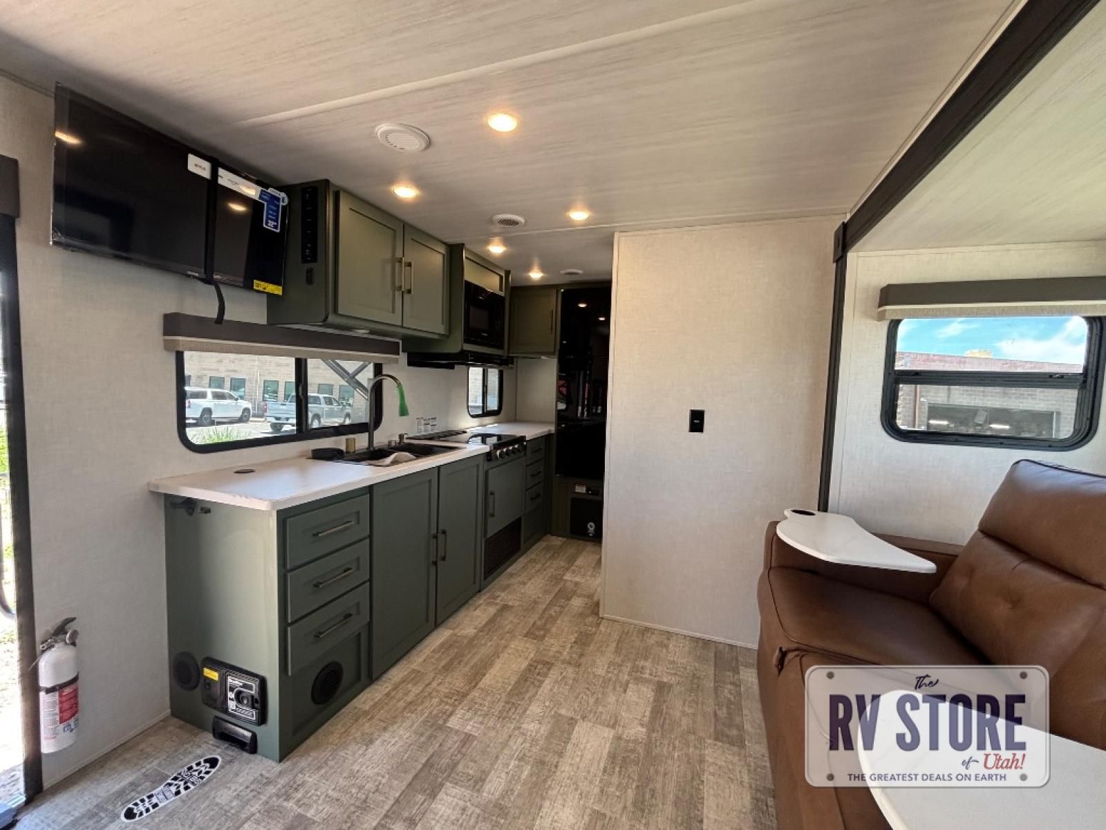 You'll love the versatility and space you'll have in this couple's trailer! The front Murphy bed provides seating and sleeping space, and the wardrobes will help keep your items organized. There is theater seating across from the TV so you can relax each evening, or you may just find yourselves outdoors under the patio awning. A full kitchen lets you cook and store meals while at the campground, and the full bath on board means you won't have to use the camp's facilities! The Beast Mode Package on this model comes with an additional 200W solar panel, a 2,000W inverter, and an independent suspension for better clearance and handling!