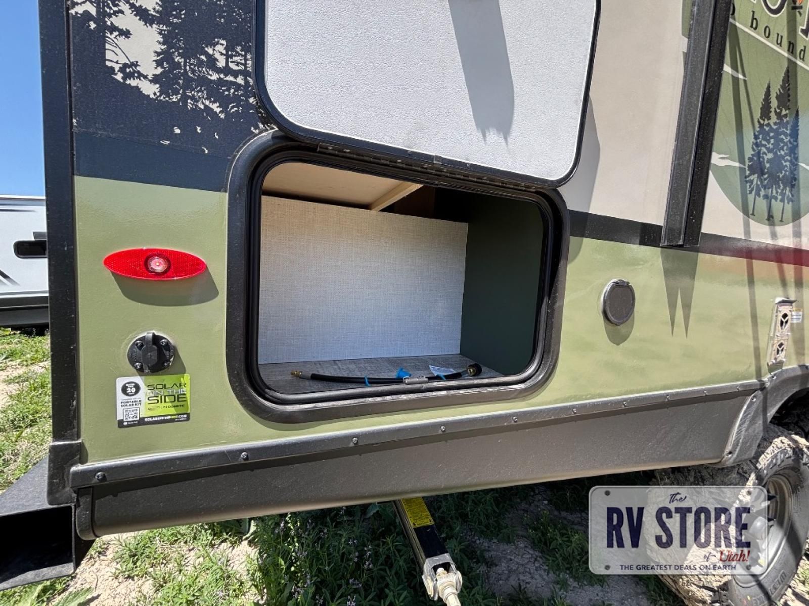If you want to break free from the travel constraints of standard trailers, then you must choose the Forest River No Boundaries travel trailer because they are rugged and ready for adventure! These 18, 19, and 20 Series trailers are built with a laminated wall with aluminum construction and Azdel composite substrate for added durability. There is also a rugged tire and wheel package with a spare tire included, a fully enclosed underbelly, and a Cold Weather Package with 12V heated tank pads and forced air to help extend your camping season. A 15K A/C will provide comfort during the summer, and a Bluetooth speaker will let you listen to your favorite tunes while you're at the campground.