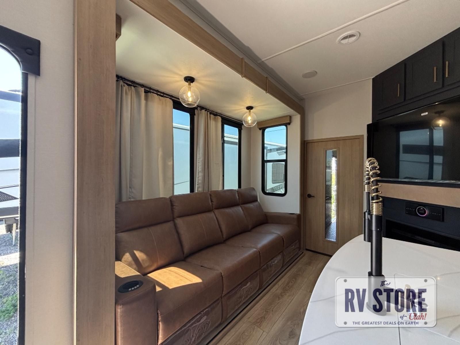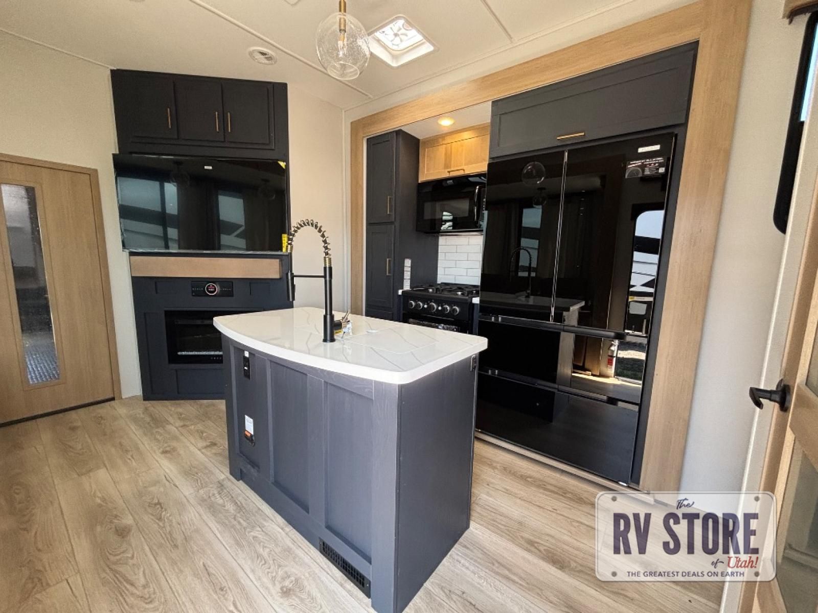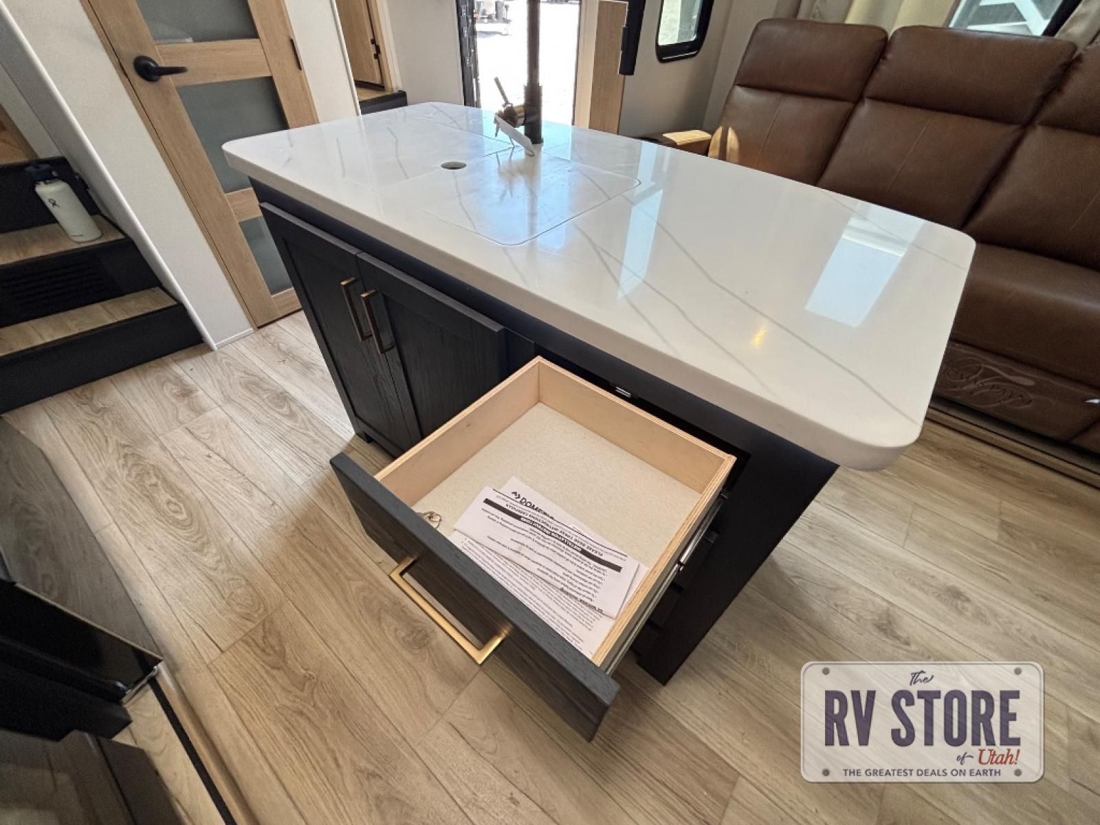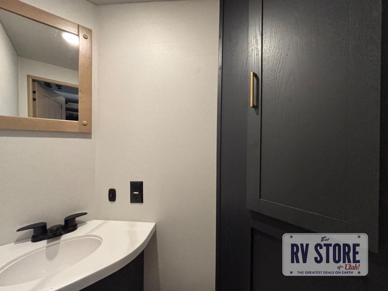 You're going to love every minute spent in this spacious toy hauler. The 17' 9" garage includes a its own exterior entry door, a half bath, and sleeping space for five to six with the included loft. There is even washer and dryer prep here that will come in handy after trail riding. Everyone can meet in the main living/kitchen area that includes a kitchen island, a large sofa, and a 50" LCD HDTV for movie night. The front of this model is shared with the unique master bedroom and bathroom that includes a tilting king bed slide out, a spacious full bath with dual bath sinks, and tons of storage space for all your belongings!