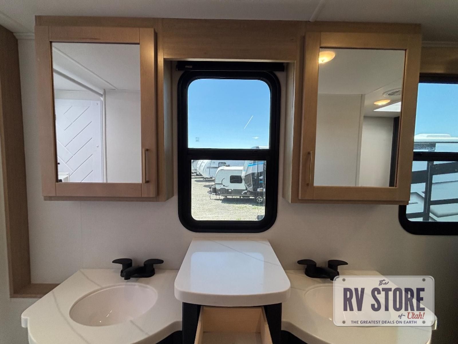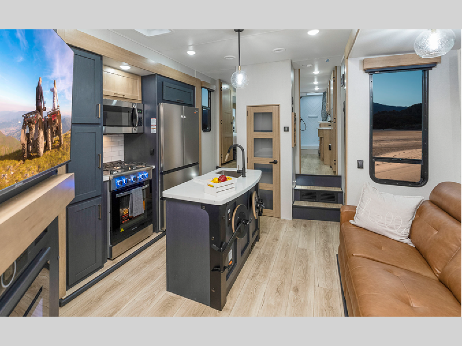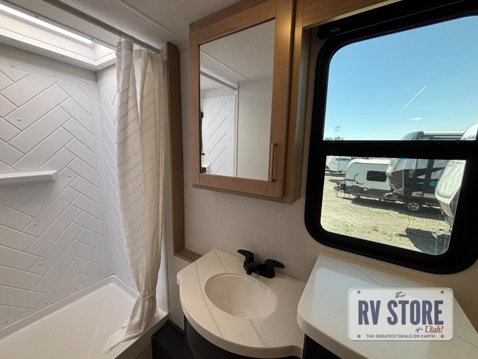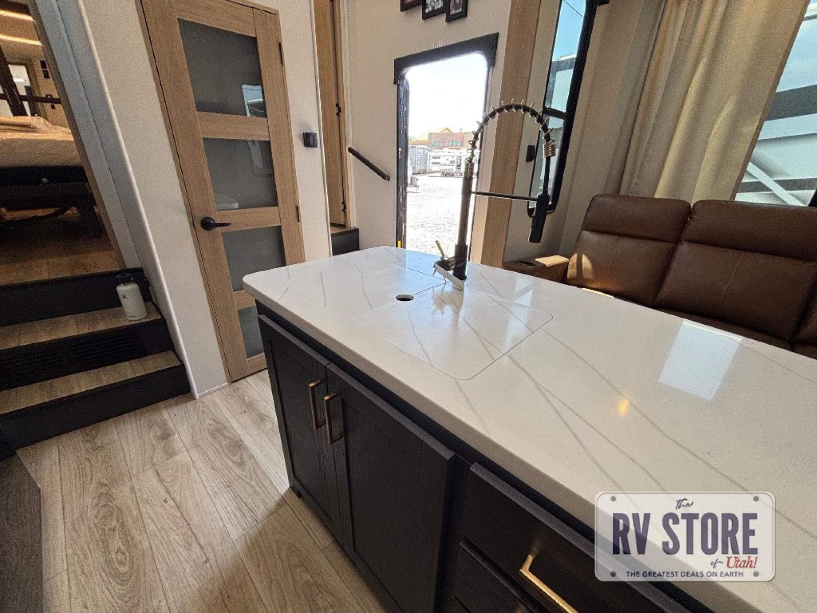 You're going to love every minute spent in this spacious toy hauler. The 17' 9" garage includes a its own exterior entry door, a half bath, and sleeping space for five to six with the included loft. There is even washer and dryer prep here that will come in handy after trail riding. Everyone can meet in the main living/kitchen area that includes a kitchen island, a large sofa, and a 50" LCD HDTV for movie night. The front of this model is shared with the unique master bedroom and bathroom that includes a tilting king bed slide out, a spacious full bath with dual bath sinks, and tons of storage space for all your belongings!