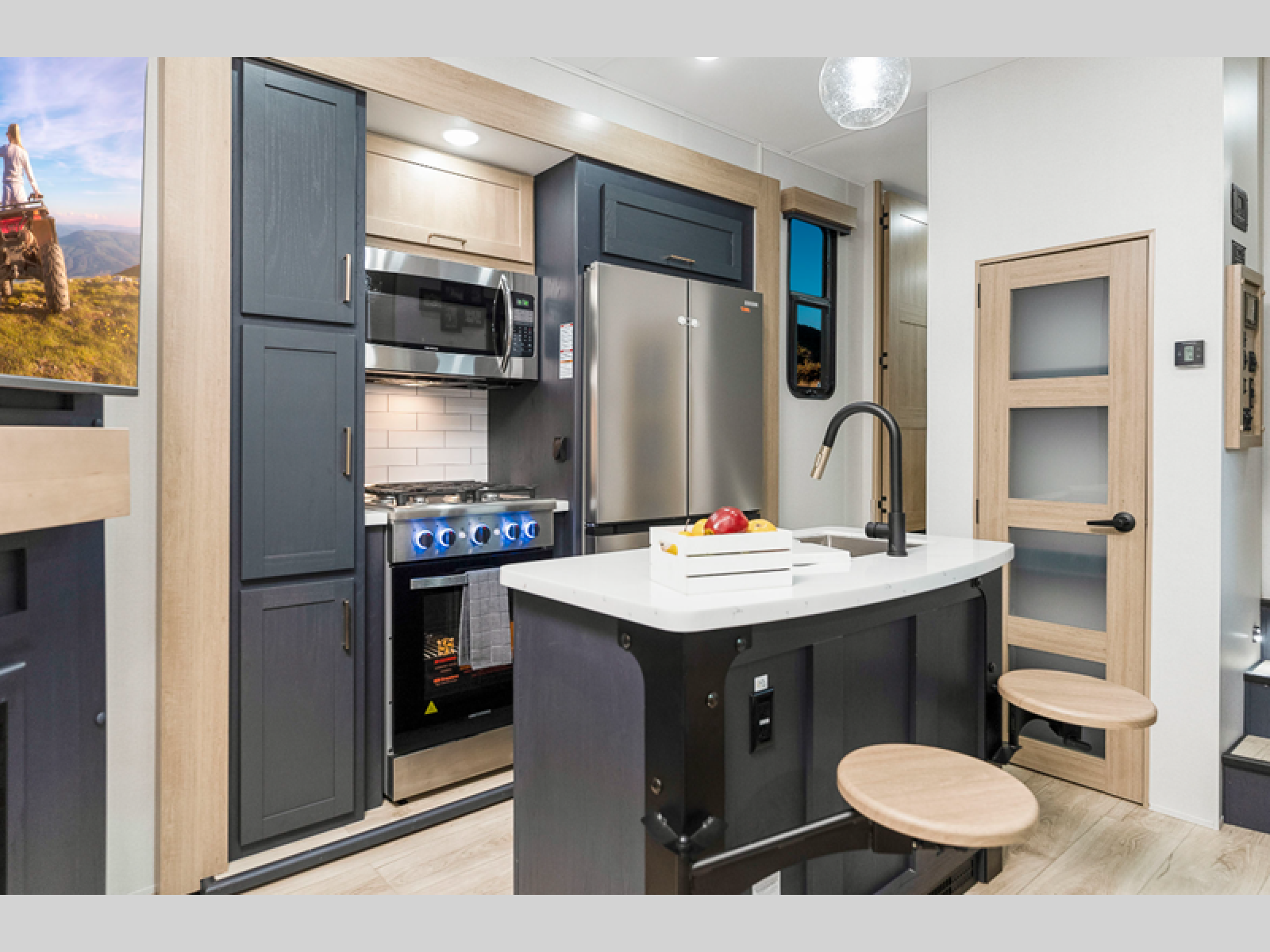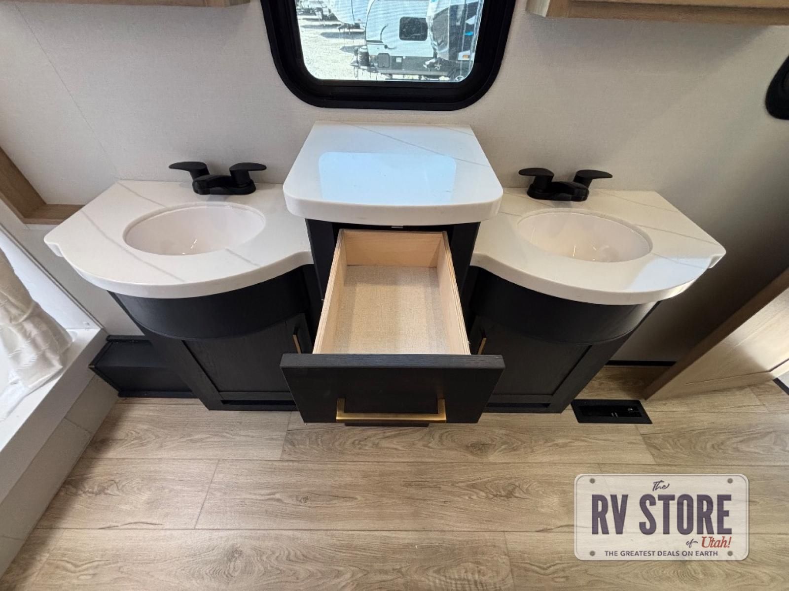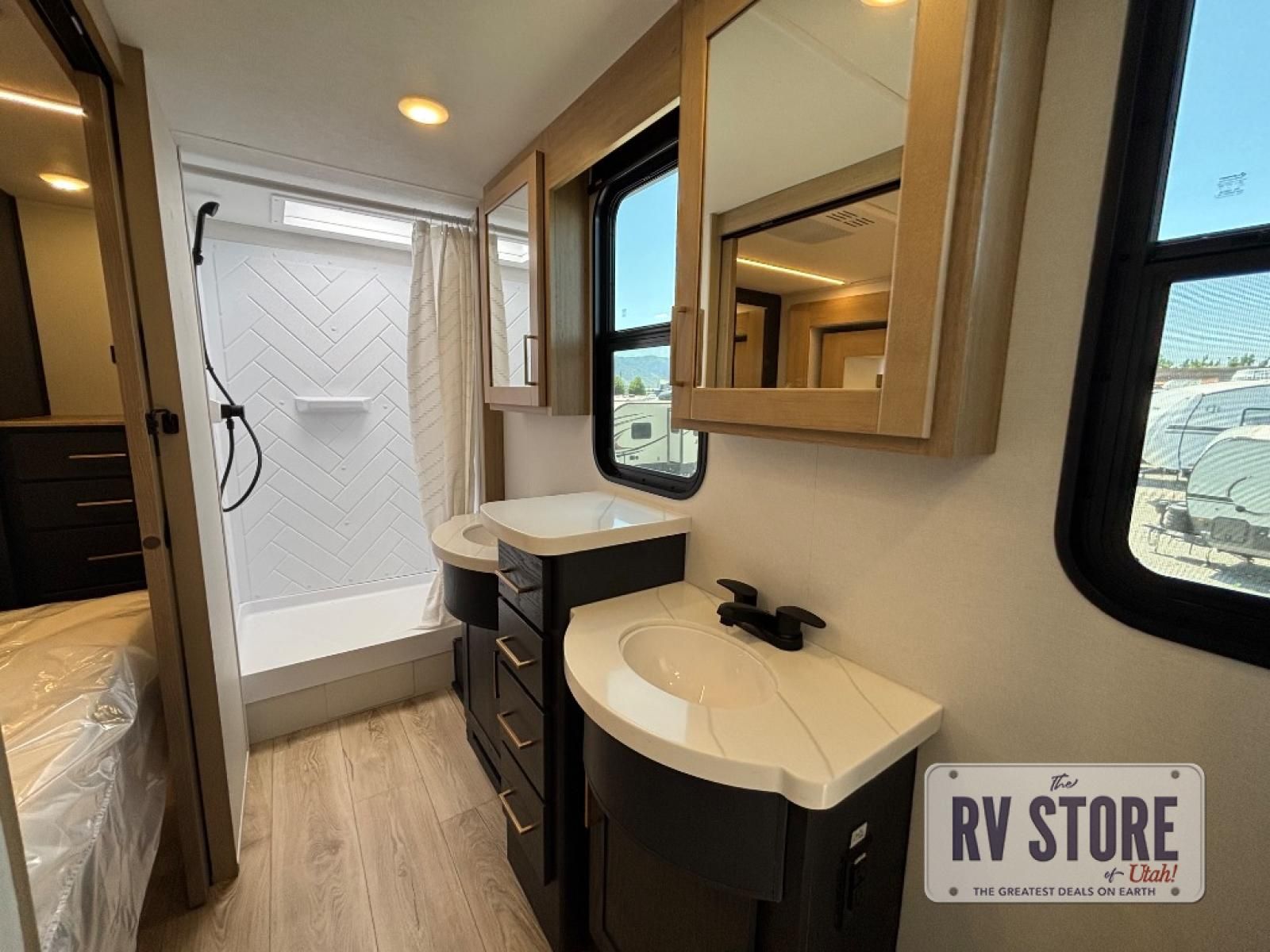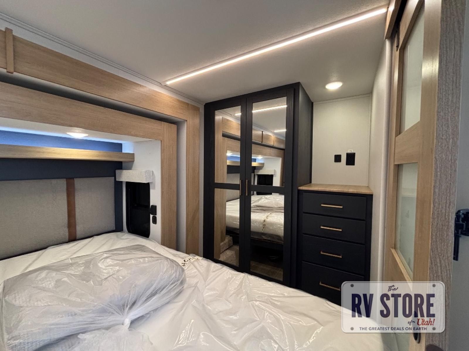 You're going to love every minute spent in this spacious toy hauler. The 17' 9" garage includes a its own exterior entry door, a half bath, and sleeping space for five to six with the included loft. There is even washer and dryer prep here that will come in handy after trail riding. Everyone can meet in the main living/kitchen area that includes a kitchen island, a large sofa, and a 50" LCD HDTV for movie night. The front of this model is shared with the unique master bedroom and bathroom that includes a tilting king bed slide out, a spacious full bath with dual bath sinks, and tons of storage space for all your belongings!