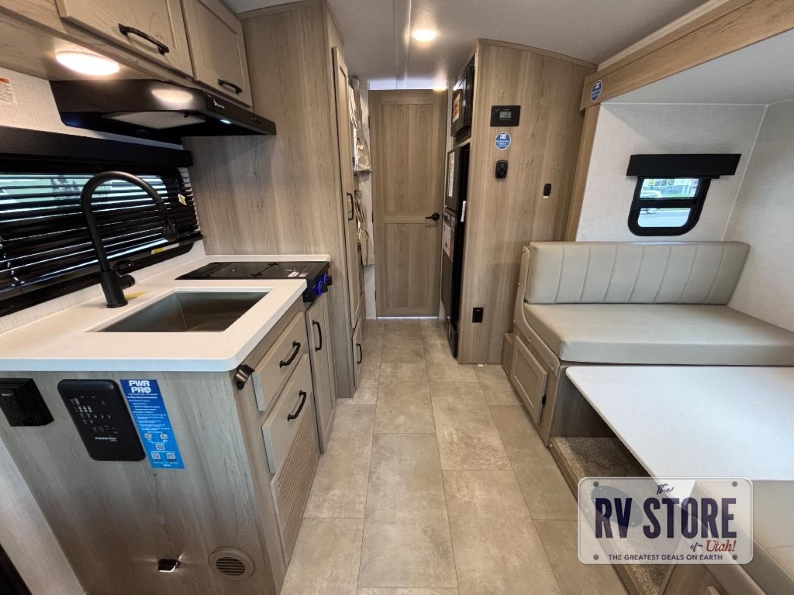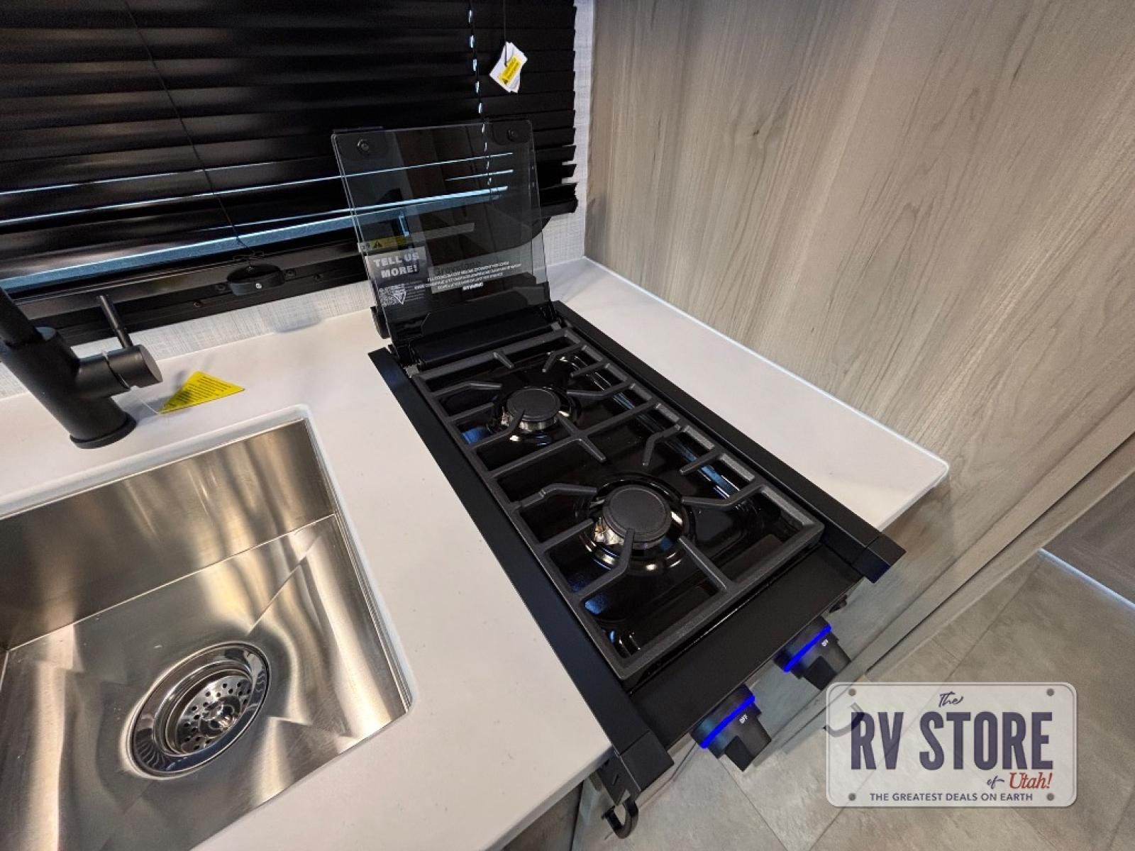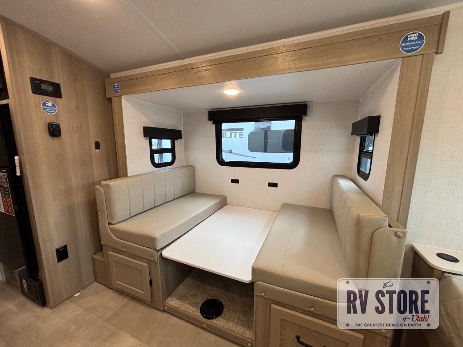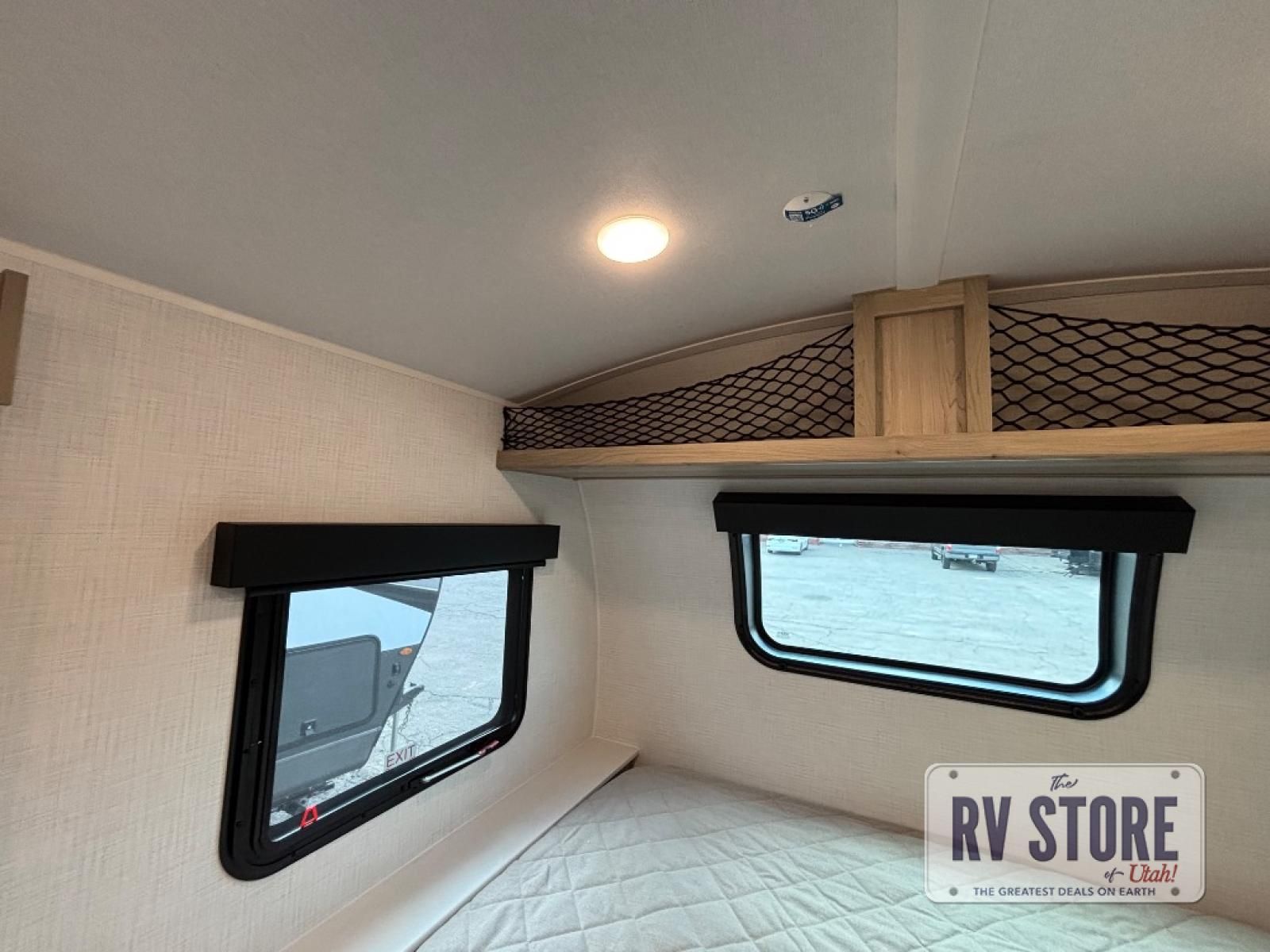 You're going to love camping with your family or friends in this spacious bunk model! The bunk beds will be perfect for little ones, while you take the front full-size bed. There is also a 44" booth dinette within the slide out for additional sleeping and seating space. The kitchen includes everything the chef will need to prepare meals each day, including a recessed cooktop, microwave oven, and a 12V refrigerator for perishables. If the weather is nice, you may just find the chef outdoors cooking on the outside griddle under the 14' power awning. And check out the exterior bike door that will be perfect for bikes, luggage, or extra camp gear. The optional Power Package available on this model includes three 200W solar panels, a 460 Ah Mastervolt MLI lithium-ion battery, two smart remotes, and more off-grid features!