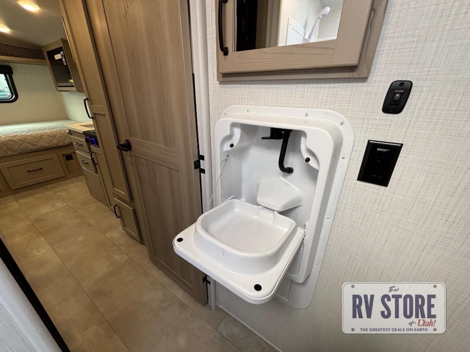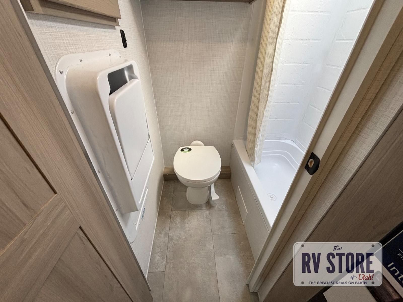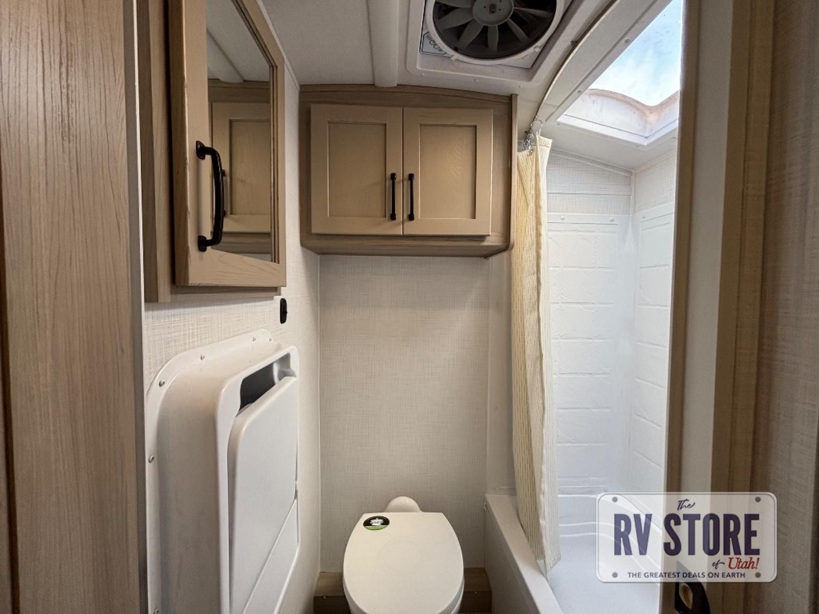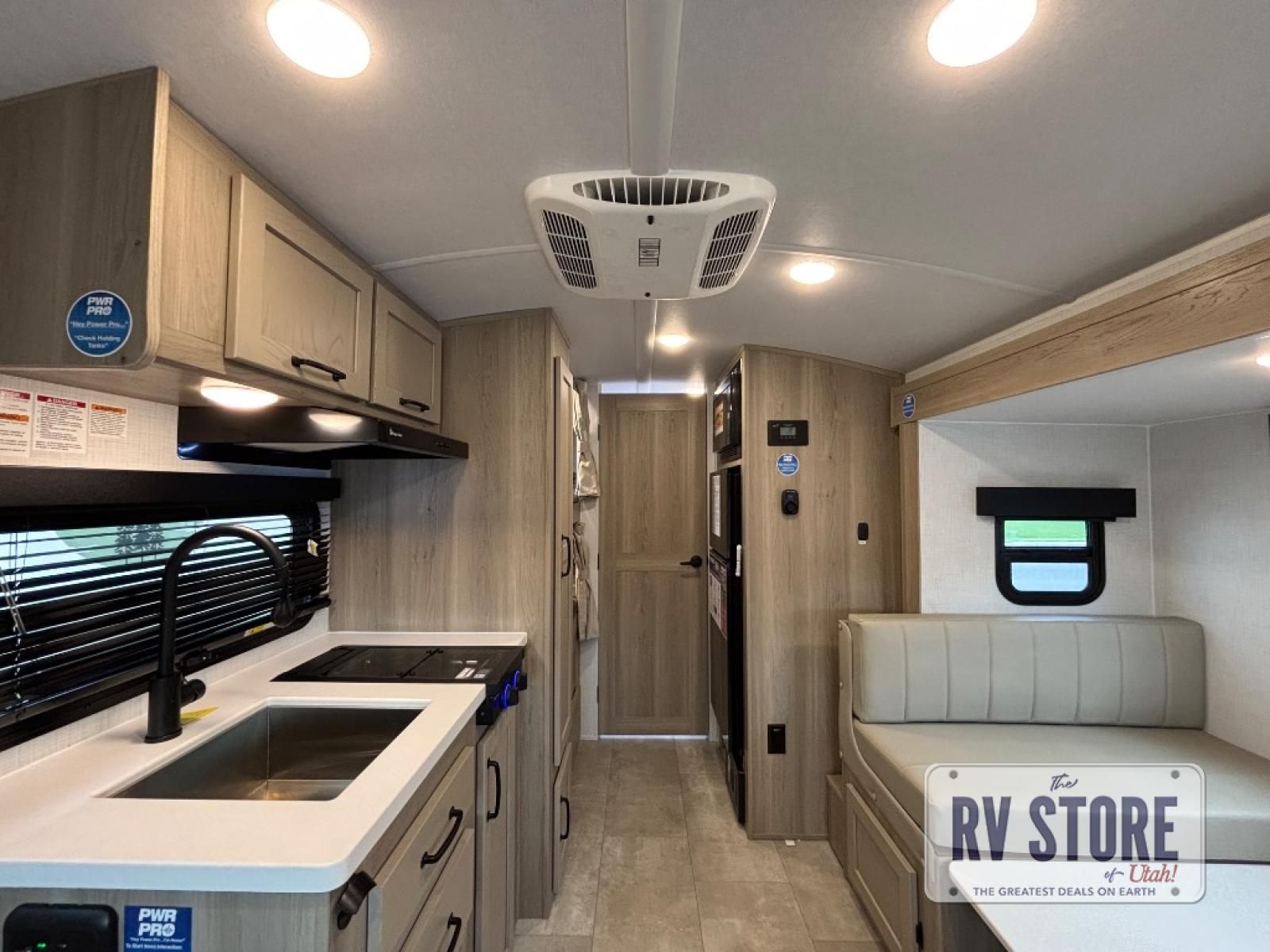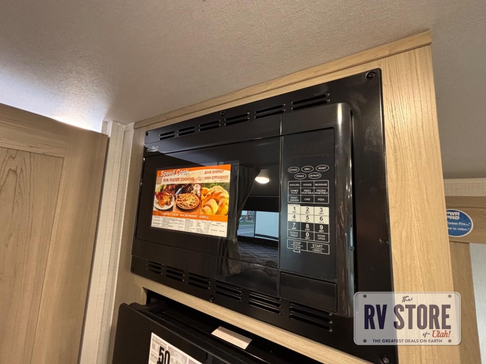 You're going to love camping with your family or friends in this spacious bunk model! The bunk beds will be perfect for little ones, while you take the front full-size bed. There is also a 44" booth dinette within the slide out for additional sleeping and seating space. The kitchen includes everything the chef will need to prepare meals each day, including a recessed cooktop, microwave oven, and a 12V refrigerator for perishables. If the weather is nice, you may just find the chef outdoors cooking on the outside griddle under the 14' power awning. And check out the exterior bike door that will be perfect for bikes, luggage, or extra camp gear. The optional Power Package available on this model includes three 200W solar panels, a 460 Ah Mastervolt MLI lithium-ion battery, two smart remotes, and more off-grid features!