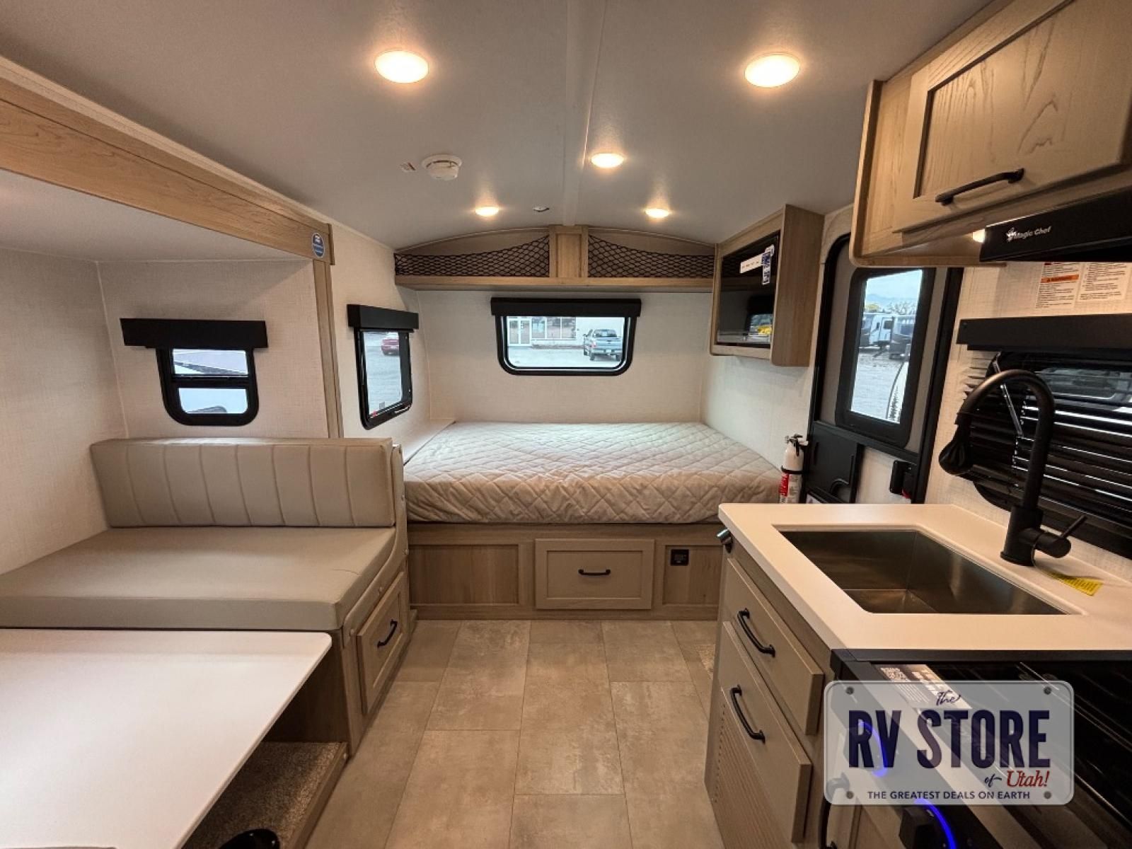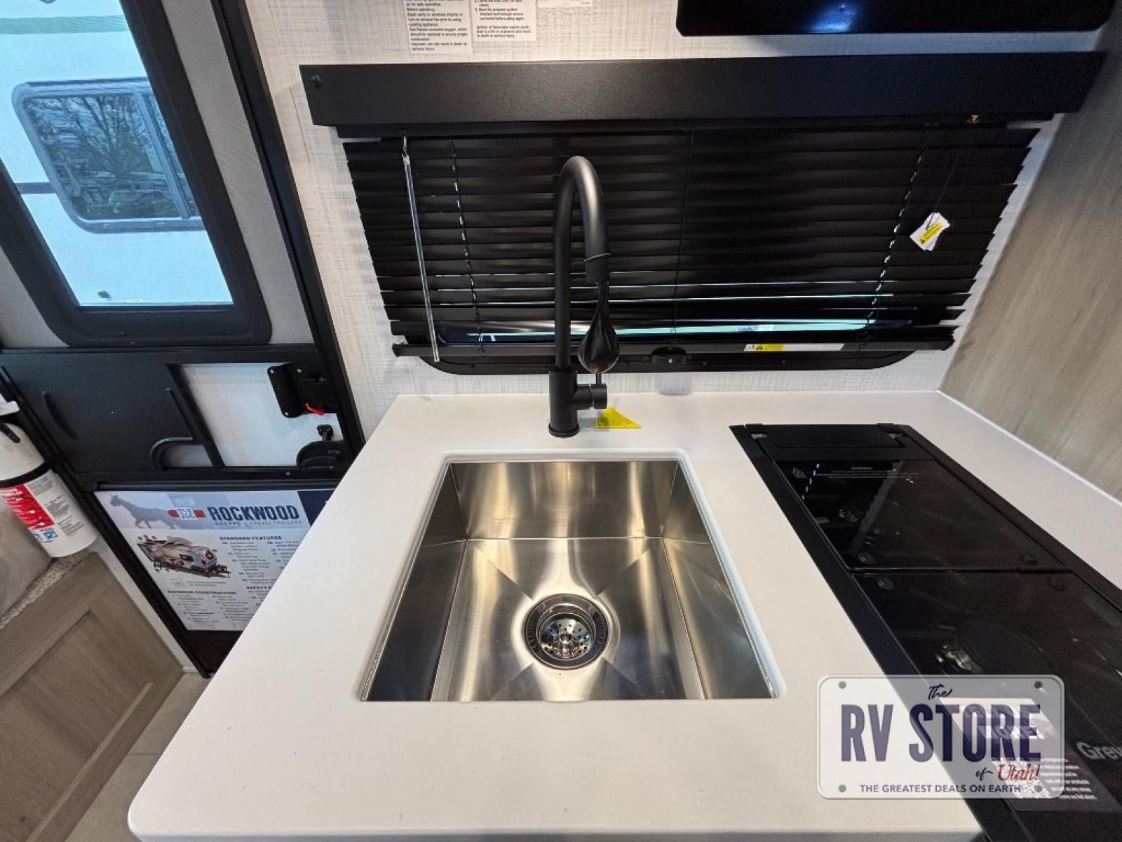 With any Rockwood GEO Pro travel trailer by Forest River you will enjoy easy towing, durable construction, and off-road capabilities with larger 15" tires and a lift kit! Each model is constructed with complete composite wall construction for added strength and durability, and the torsion axle, Rubber-Ryde suspension will make towing easier than ever. Inside, you'll find sleek roller shades for added privacy, a 12V refrigerator and a microwave, plus a 20,000 BTU furnace to keep you warm during the colder camping months.