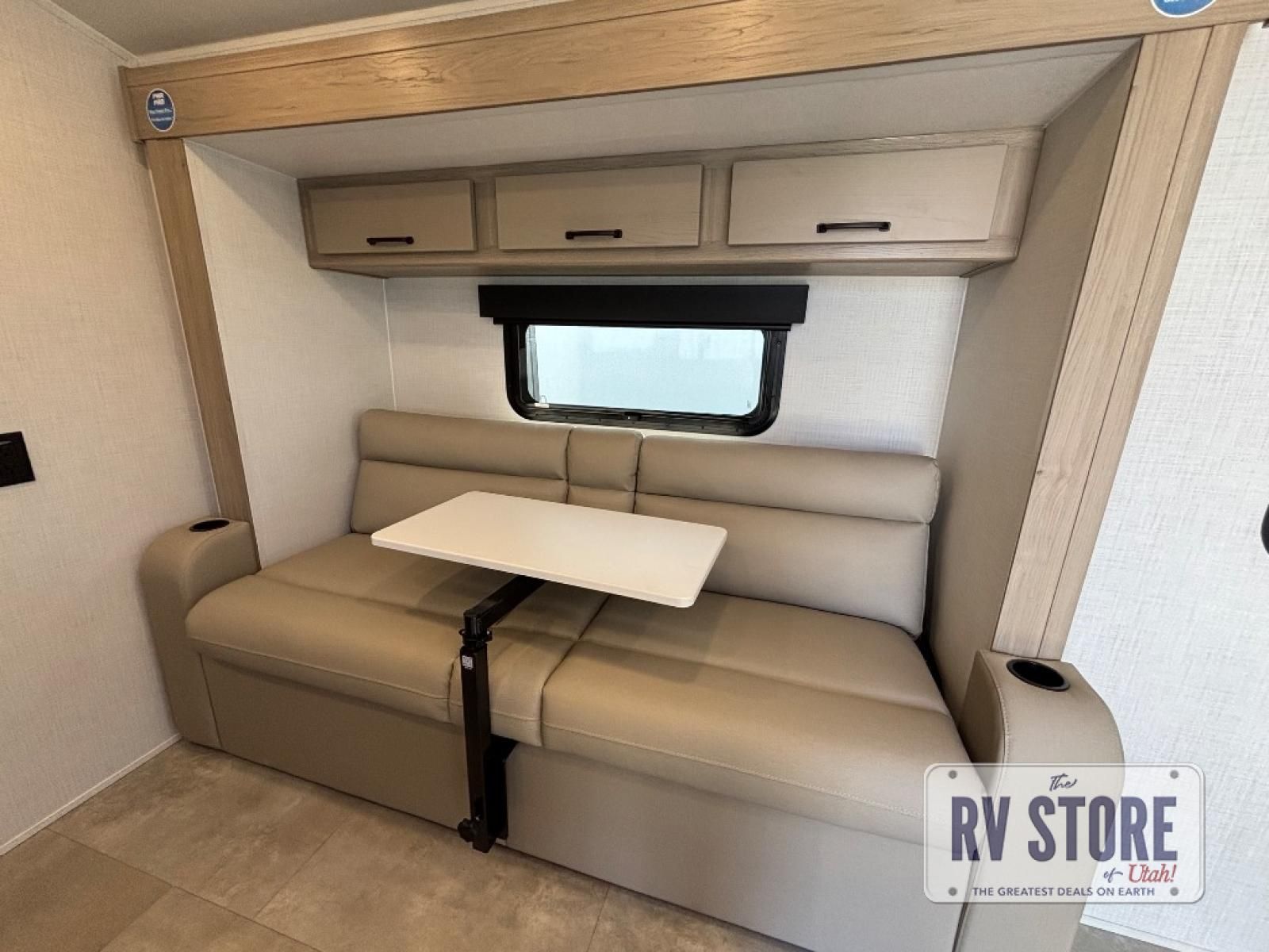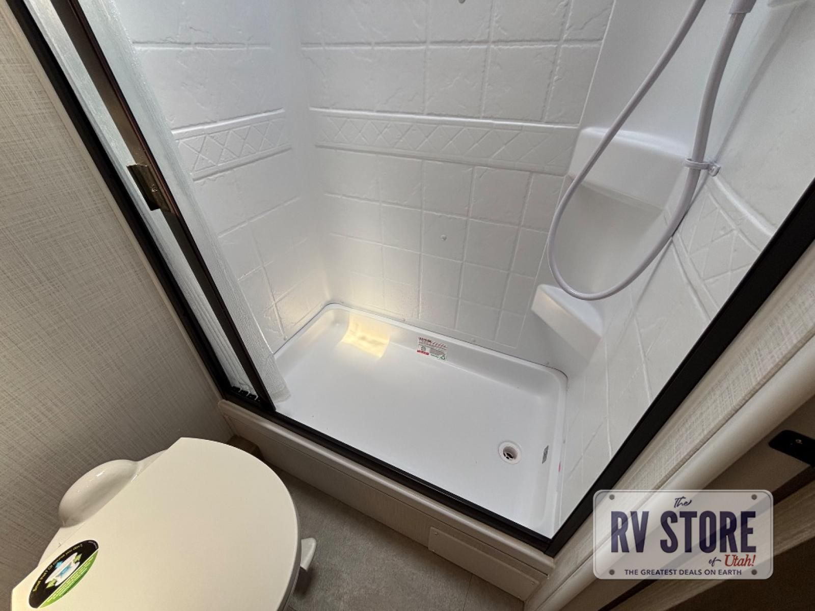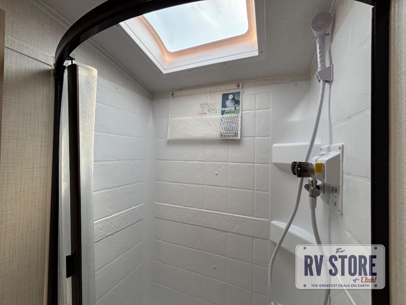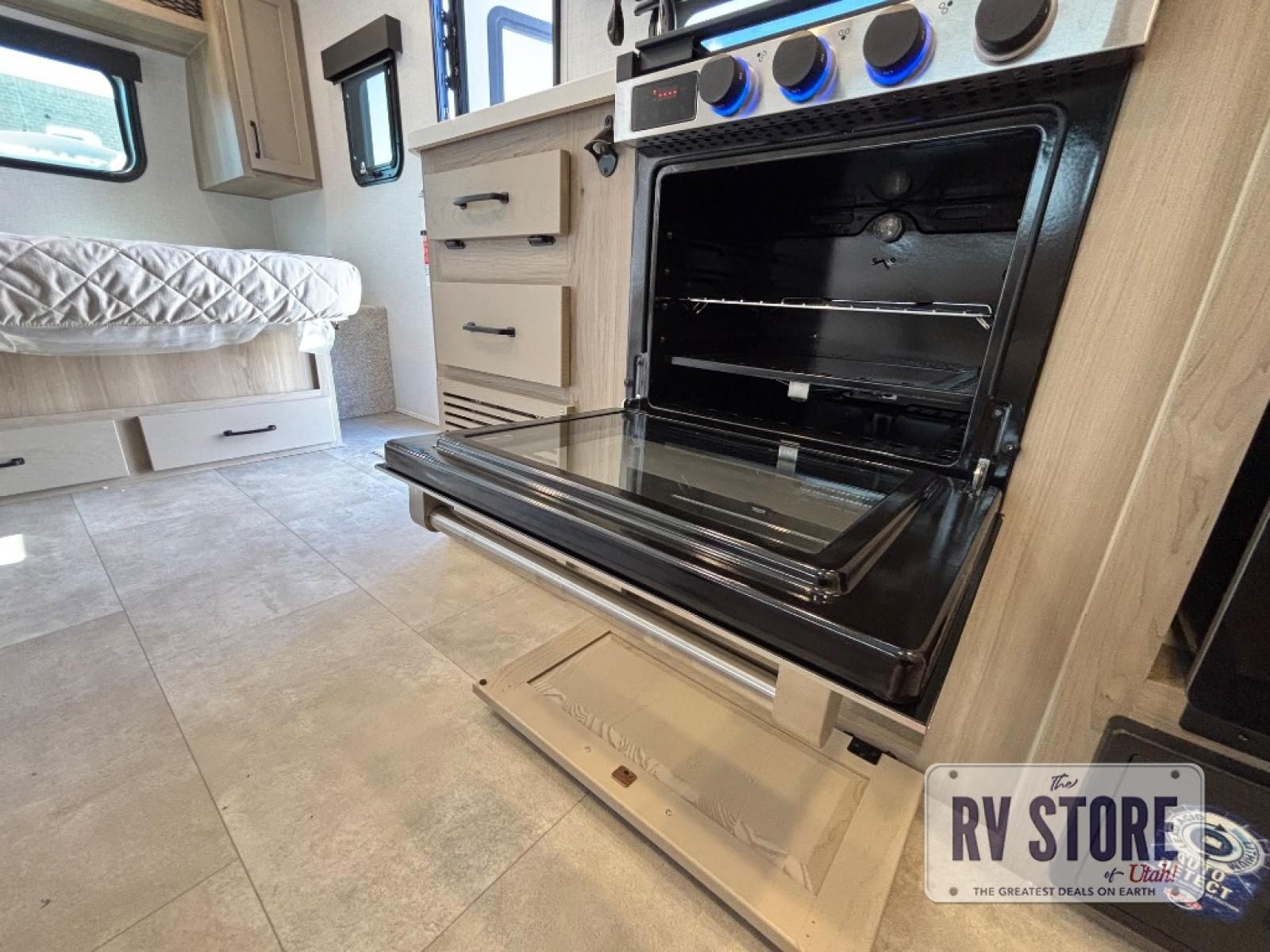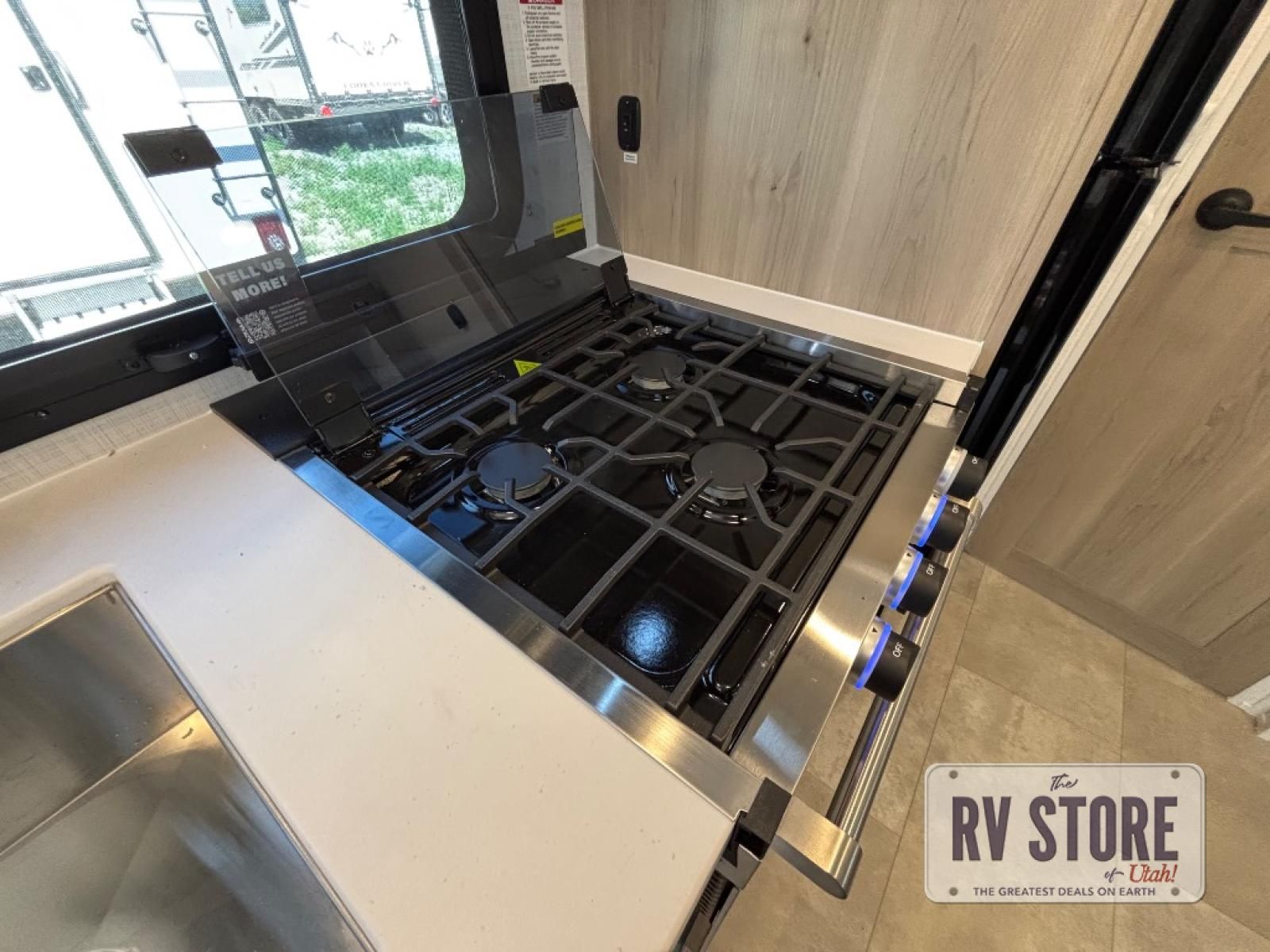 This travel trailer will feel more like home with its front bedroom and walk-around full-size bed. You'll enjoy the 32" 12V TV as you relax on the 72" sofa with a table and cupholders. The full rear bath includes a spacious shower to clean up in each day and there is a linen closet for clean towels. When you're ready to prepare dinner you'll have a three burner cooktop and microwave oven indoors, and a griddle outdoors! And don't forget the exterior storage allows you to bring along beach toys and tackle boxes. The optional Power Package available on this model includes three 200W solar panels, a side solar plug-in, a 3kW 160A inverter, and more off-grid features!