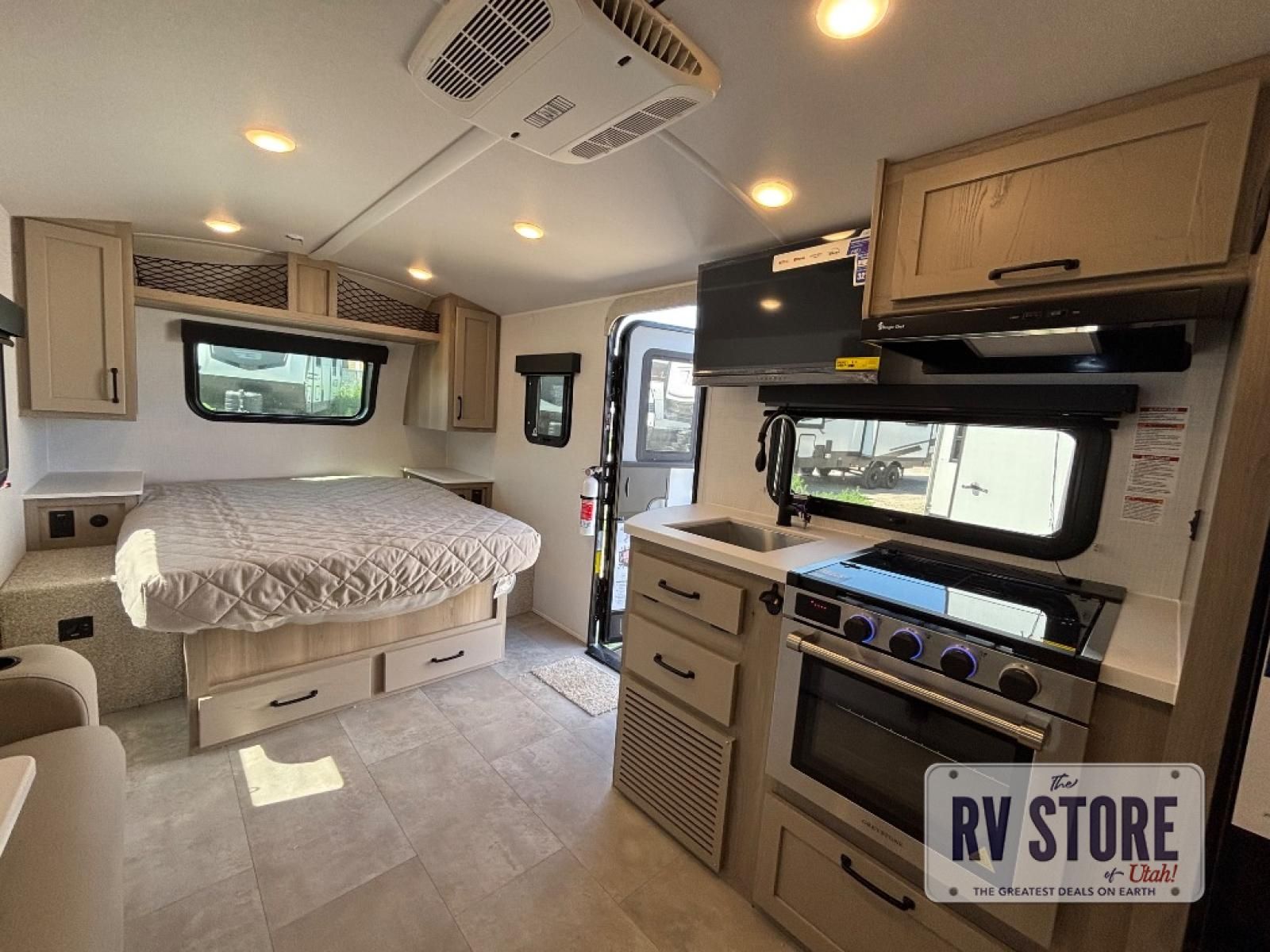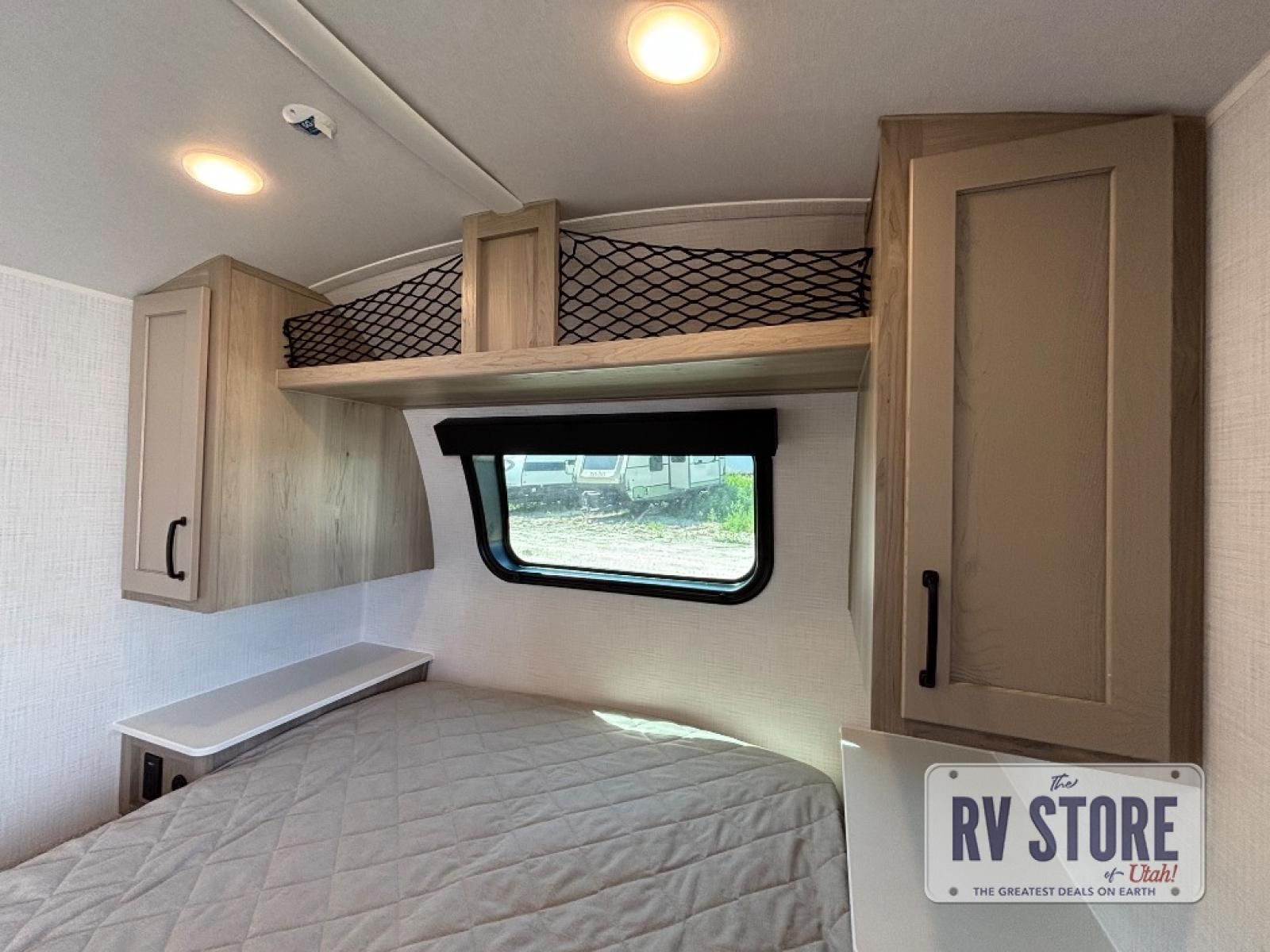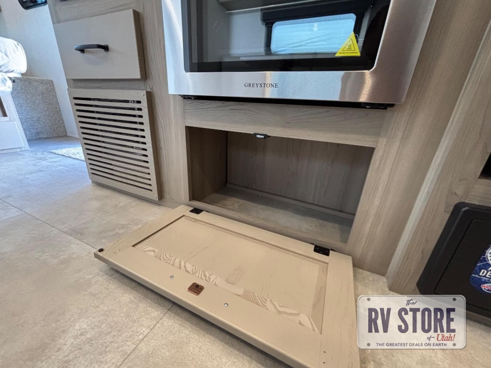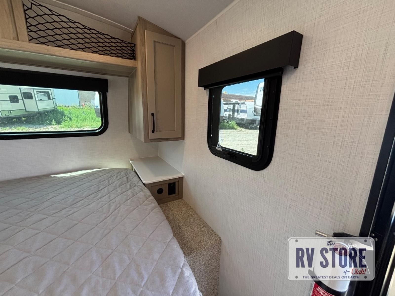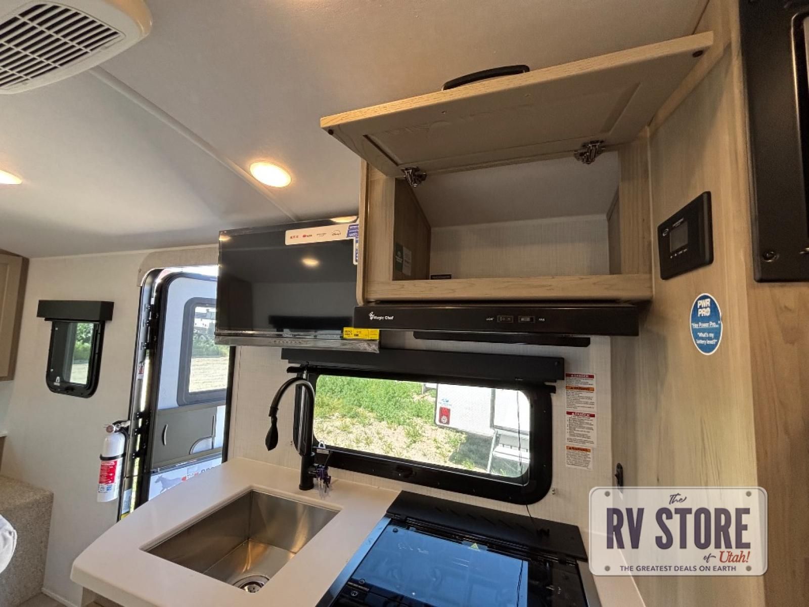 This travel trailer will feel more like home with its front bedroom and walk-around full-size bed. You'll enjoy the 32" 12V TV as you relax on the 72" sofa with a table and cupholders. The full rear bath includes a spacious shower to clean up in each day and there is a linen closet for clean towels. When you're ready to prepare dinner you'll have a three burner cooktop and microwave oven indoors, and a griddle outdoors! And don't forget the exterior storage allows you to bring along beach toys and tackle boxes. The optional Power Package available on this model includes three 200W solar panels, a side solar plug-in, a 3kW 160A inverter, and more off-grid features!