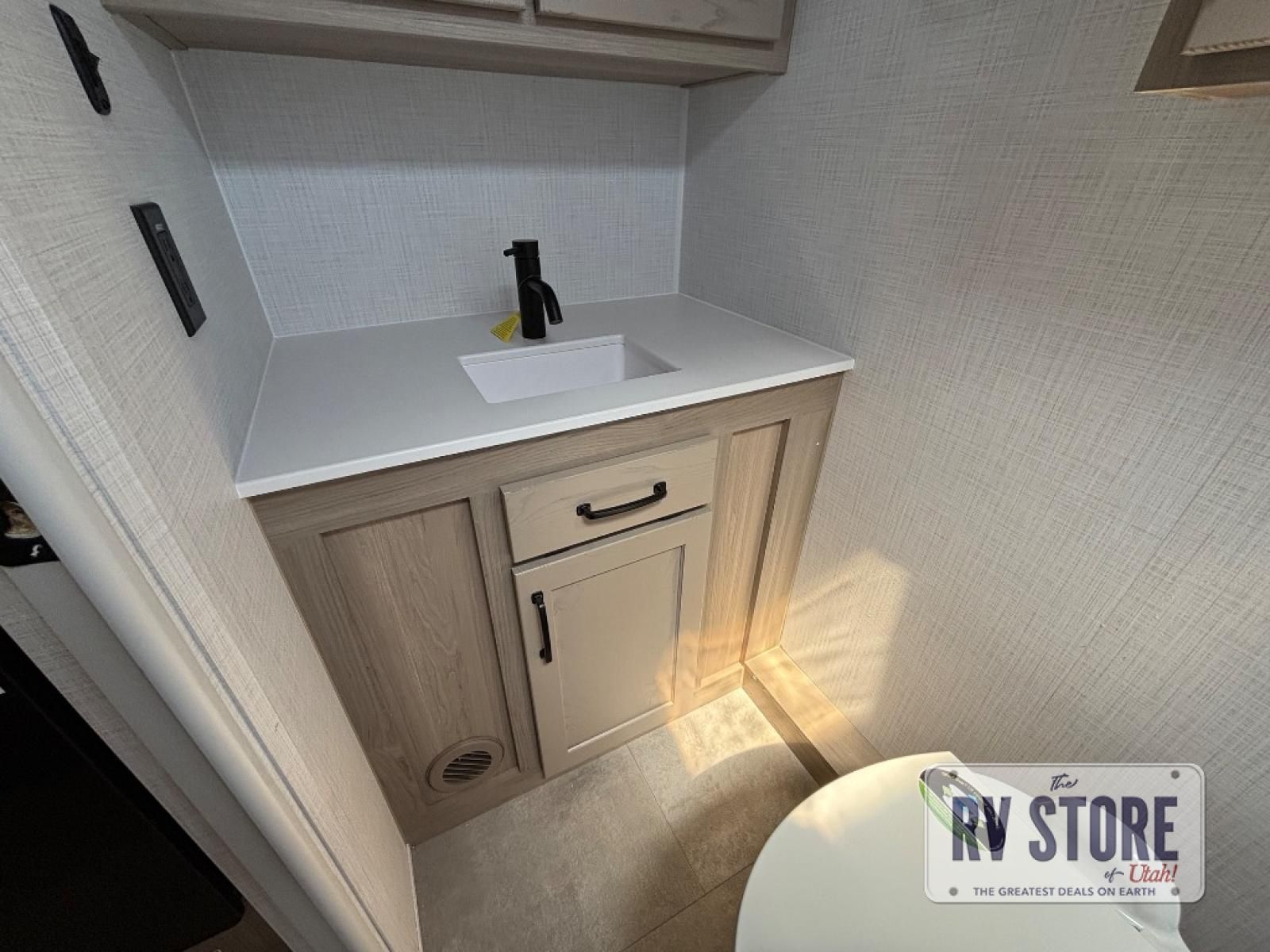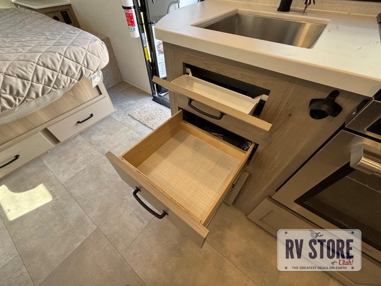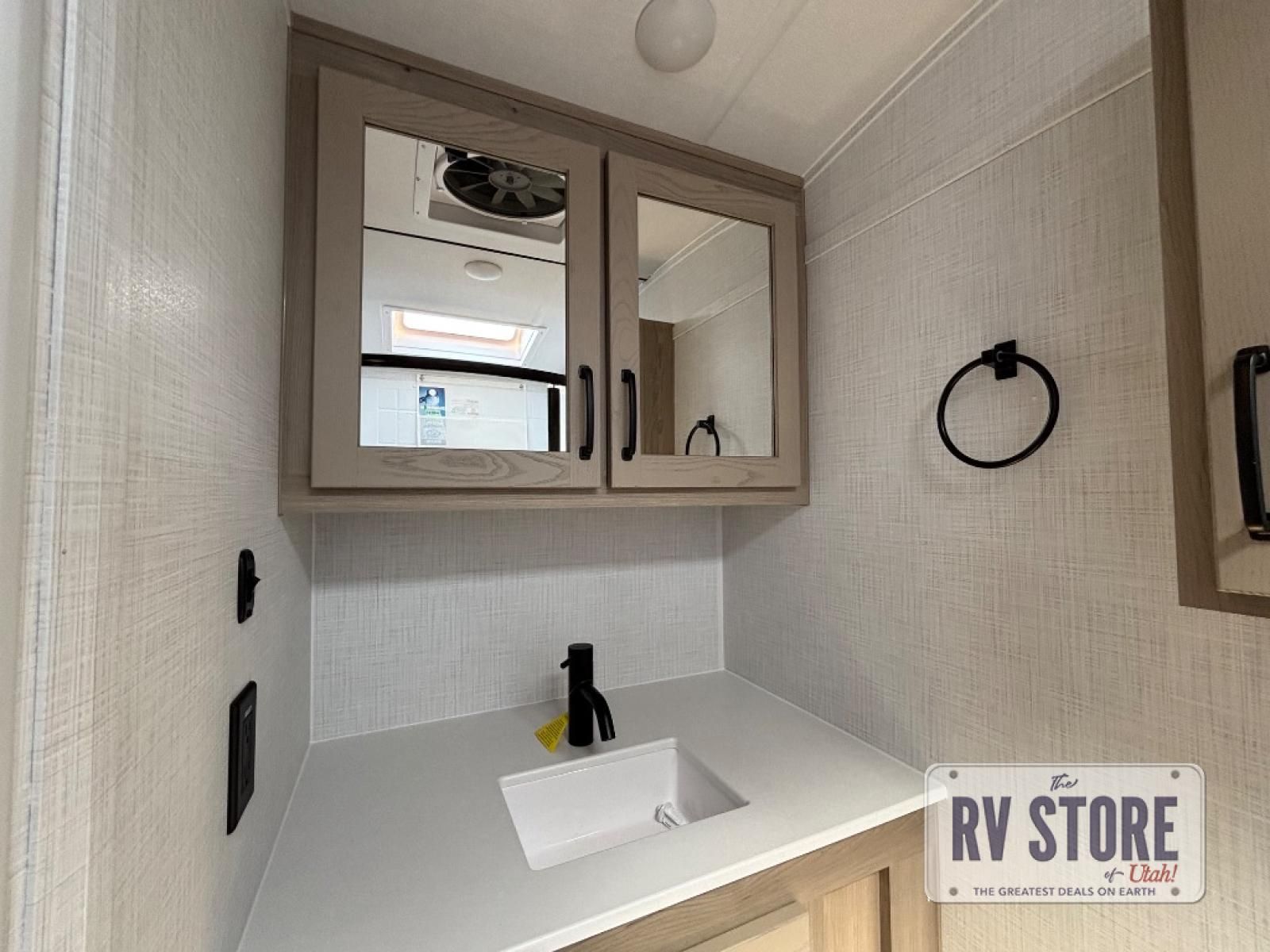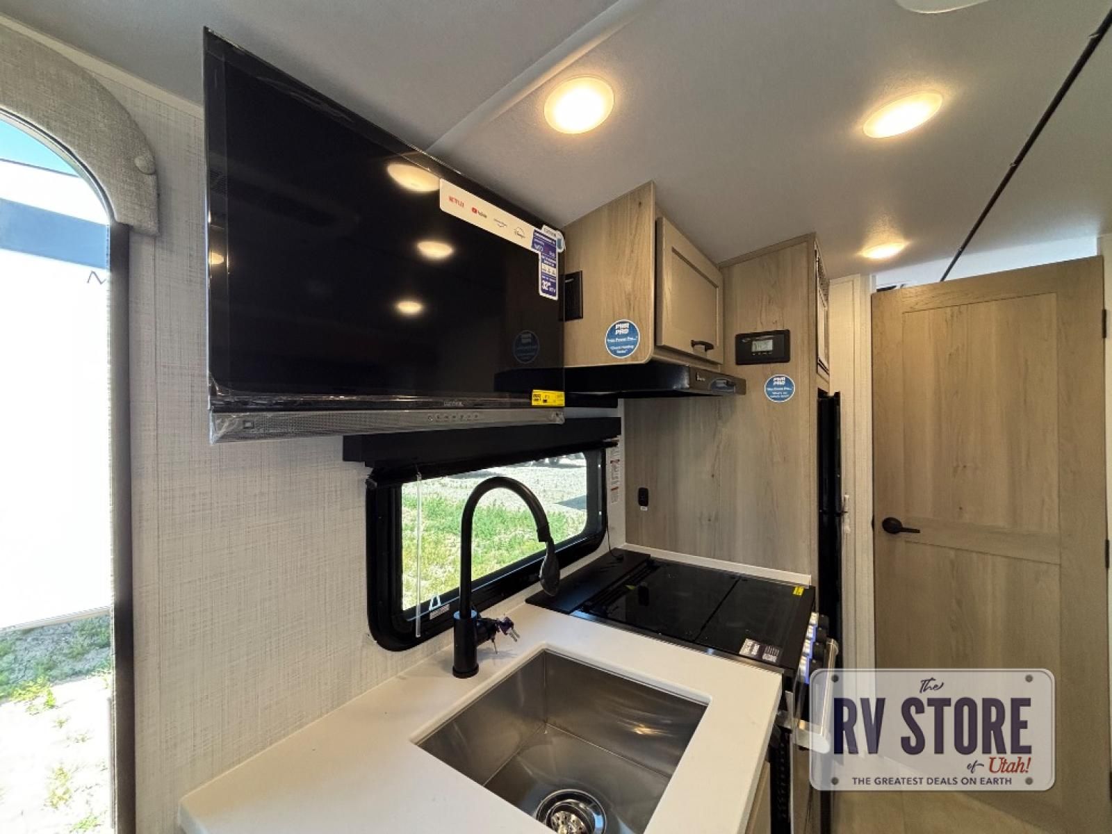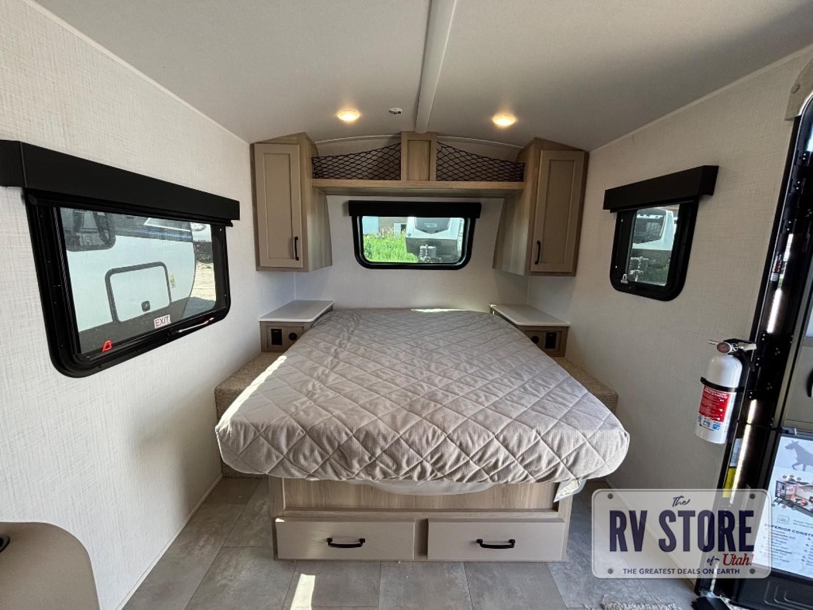 This travel trailer will feel more like home with its front bedroom and walk-around full-size bed. You'll enjoy the 32" 12V TV as you relax on the 72" sofa with a table and cupholders. The full rear bath includes a spacious shower to clean up in each day and there is a linen closet for clean towels. When you're ready to prepare dinner you'll have a three burner cooktop and microwave oven indoors, and a griddle outdoors! And don't forget the exterior storage allows you to bring along beach toys and tackle boxes. The optional Power Package available on this model includes three 200W solar panels, a side solar plug-in, a 3kW 160A inverter, and more off-grid features!