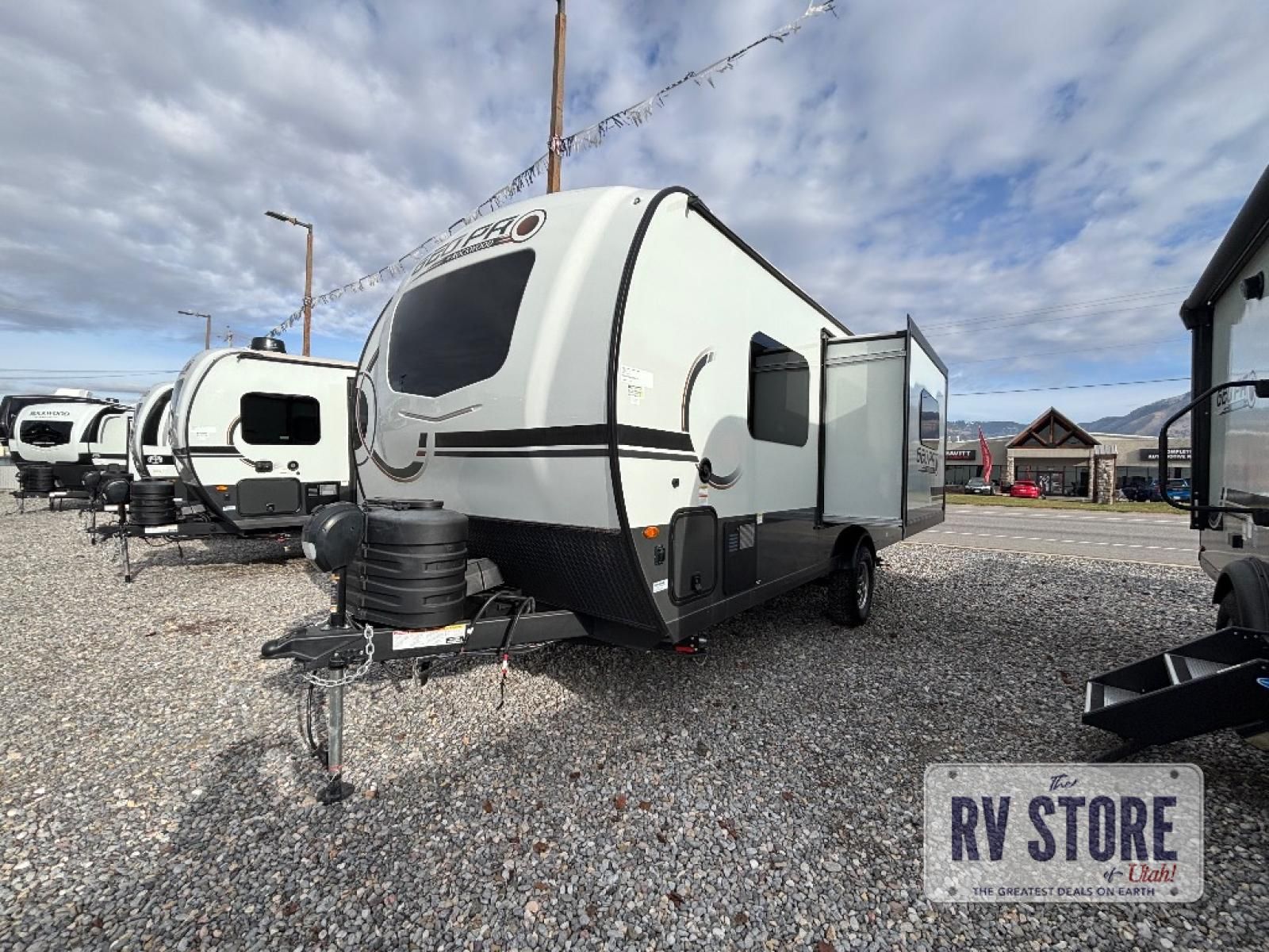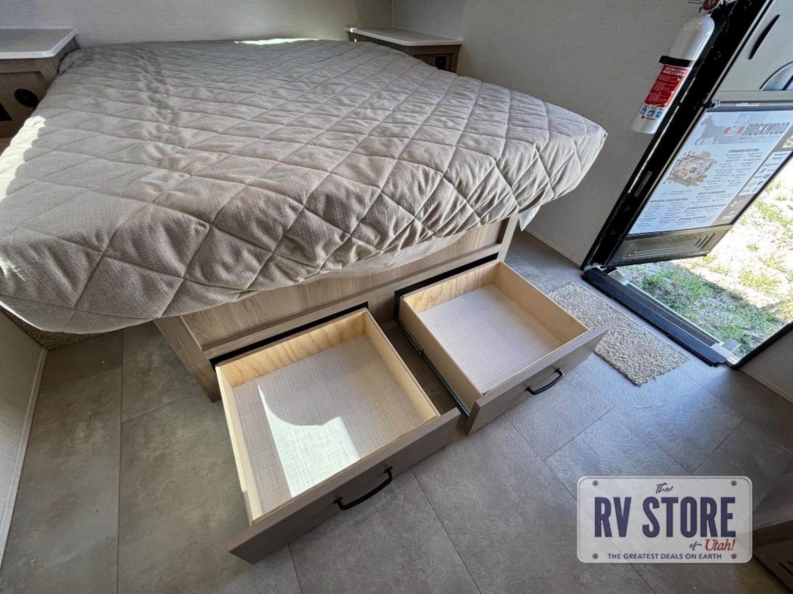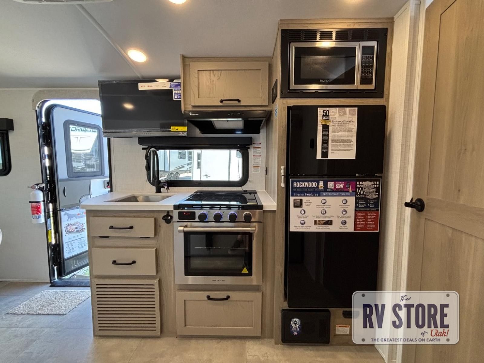 With any Rockwood GEO Pro travel trailer by Forest River you will enjoy easy towing, durable construction, and off-road capabilities with larger 15" tires and a lift kit! Each model is constructed with complete composite wall construction for added strength and durability, and the torsion axle, Rubber-Ryde suspension will make towing easier than ever. Inside, you'll find sleek roller shades for added privacy, a 12V refrigerator and a microwave, plus a 20,000 BTU furnace to keep you warm during the colder camping months.