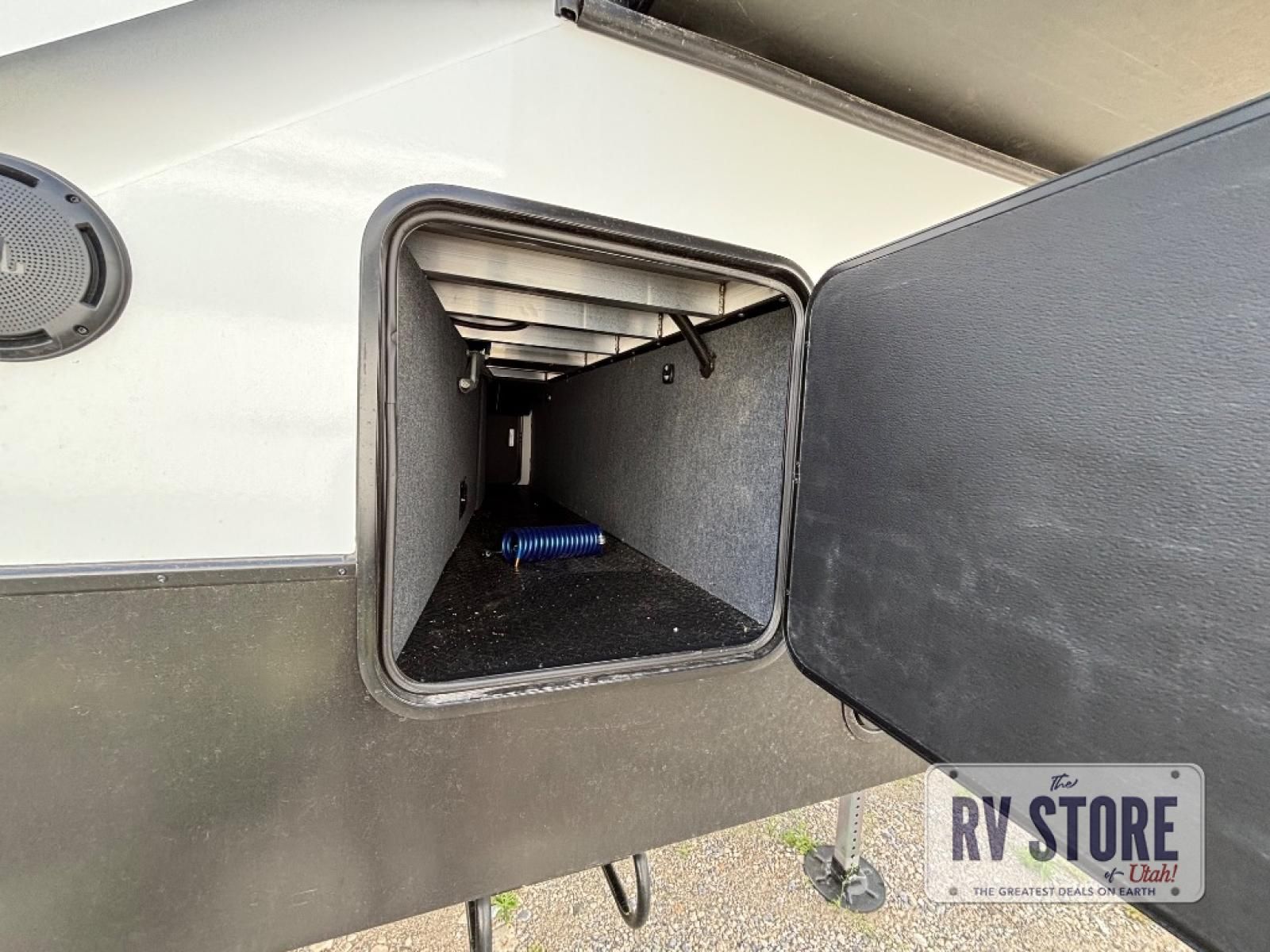 The 16-foot garage offers room for ATVs, UTVs, motorcycles, or other gear and easily converts into an extra living and sleeping area with power beds, convertible sofas, and access to the rear patio deck. Whether hauling toys or entertaining guests, the Torque 316 delivers flexible space.