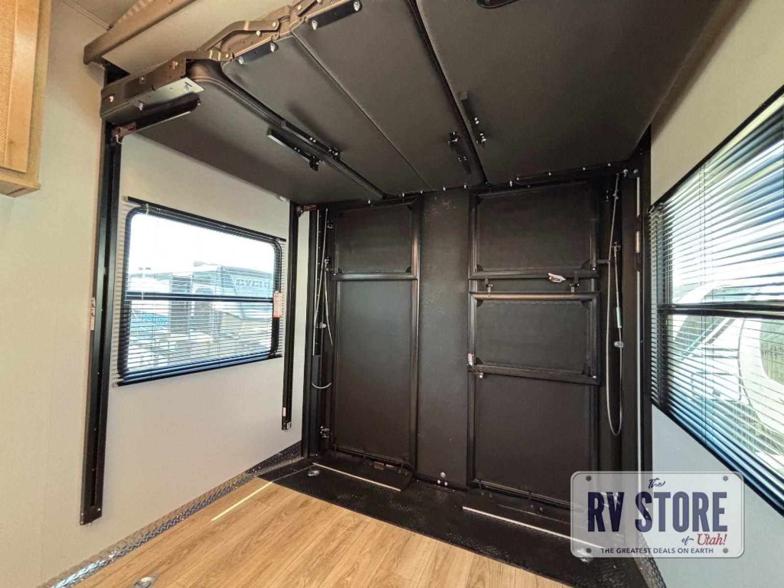 The 16-foot garage offers room for ATVs, UTVs, motorcycles, or other gear and easily converts into an extra living and sleeping area with power beds, convertible sofas, and access to the rear patio deck. Whether hauling toys or entertaining guests, the Torque 316 delivers flexible space.