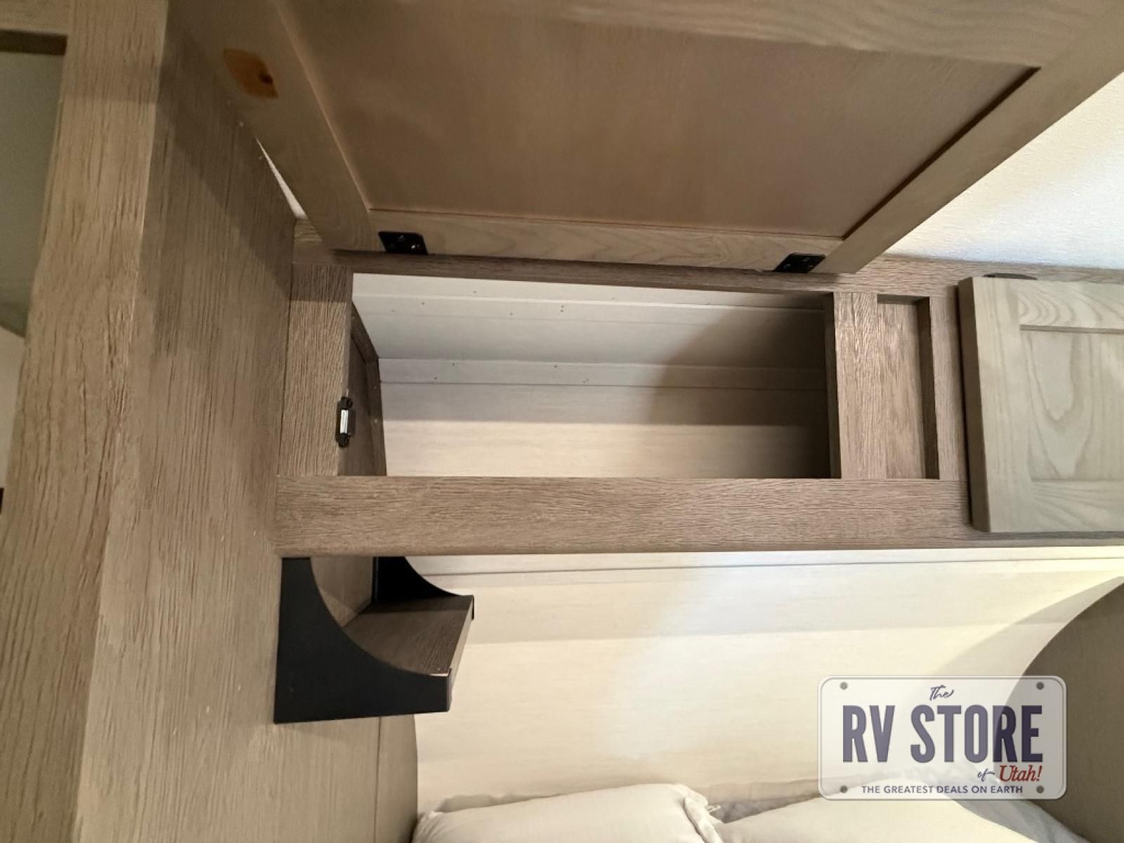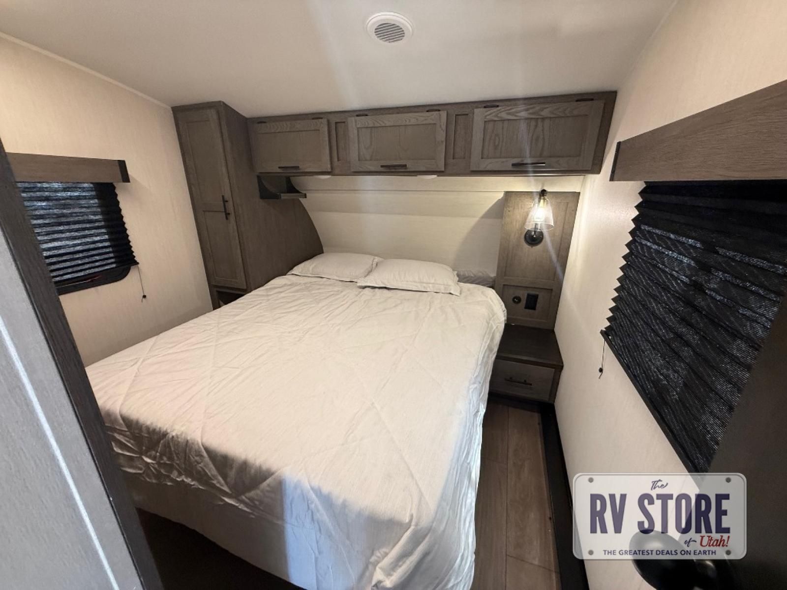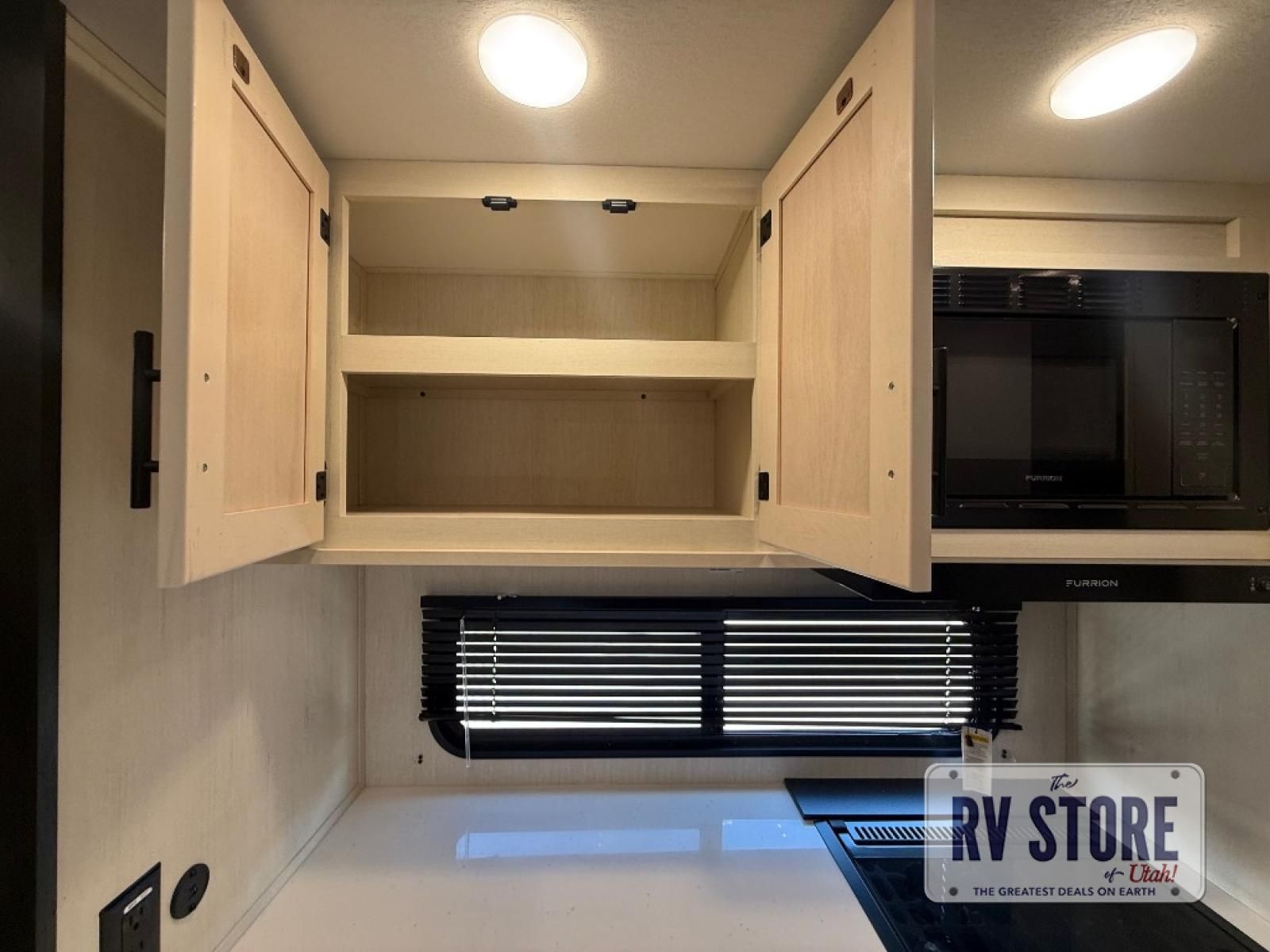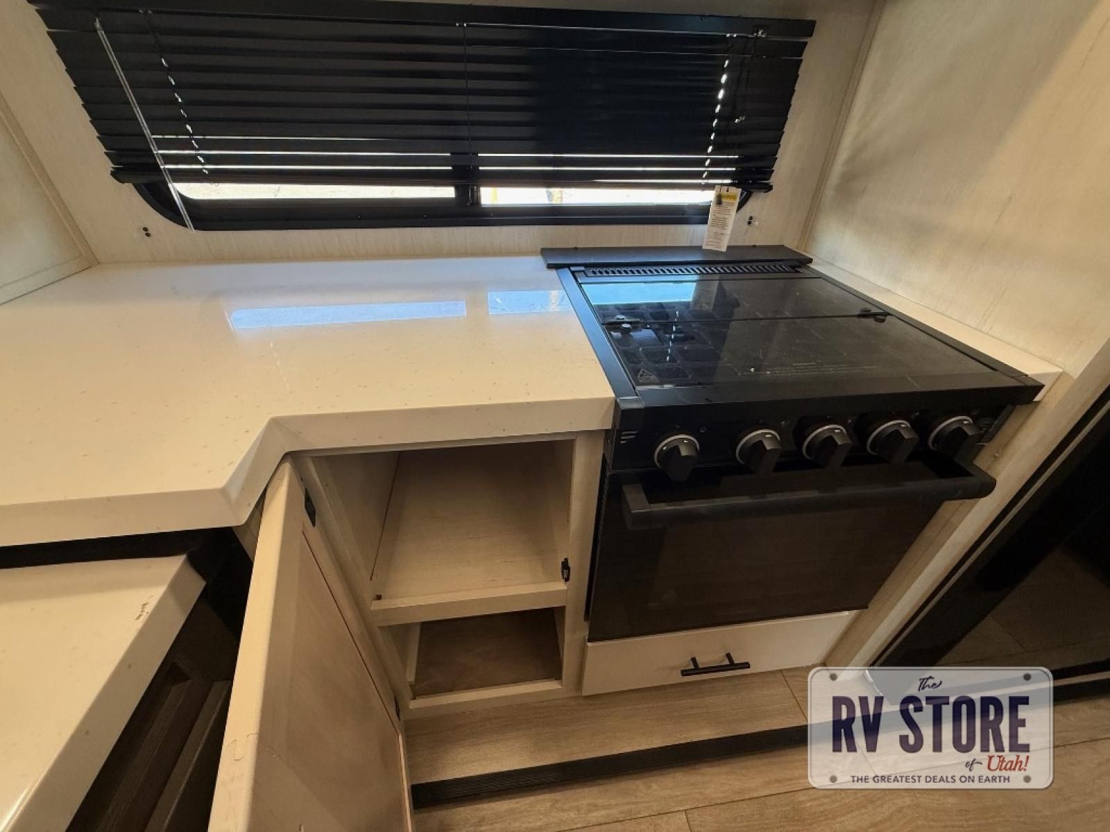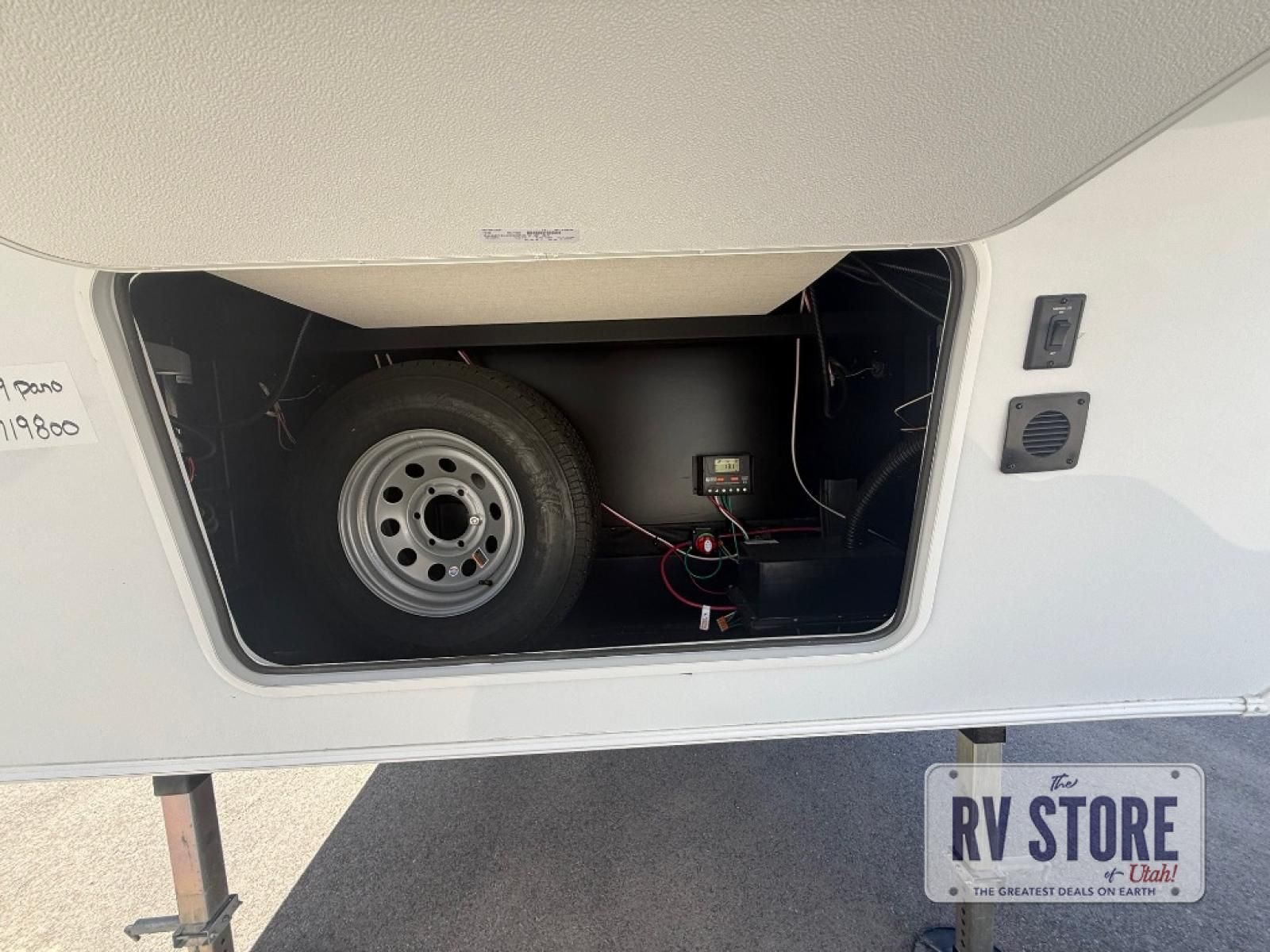 Enjoy time at the campground in this spacious fifth wheel! Once you arrive at the campground, you can unload the outside storage, put out the 15' awning, then head inside to make lunch on the three burner cooktop. Your crew can dine at the free-standing table and chairs, then relax on the dual tri-fold sofas. There is also theater seating, all in great view of the rear televator TV and fireplace. A full bath with a spacious shower will let you freshen up before bed, and the queen bed in the front bedroom is sure to bring a great night's rest!