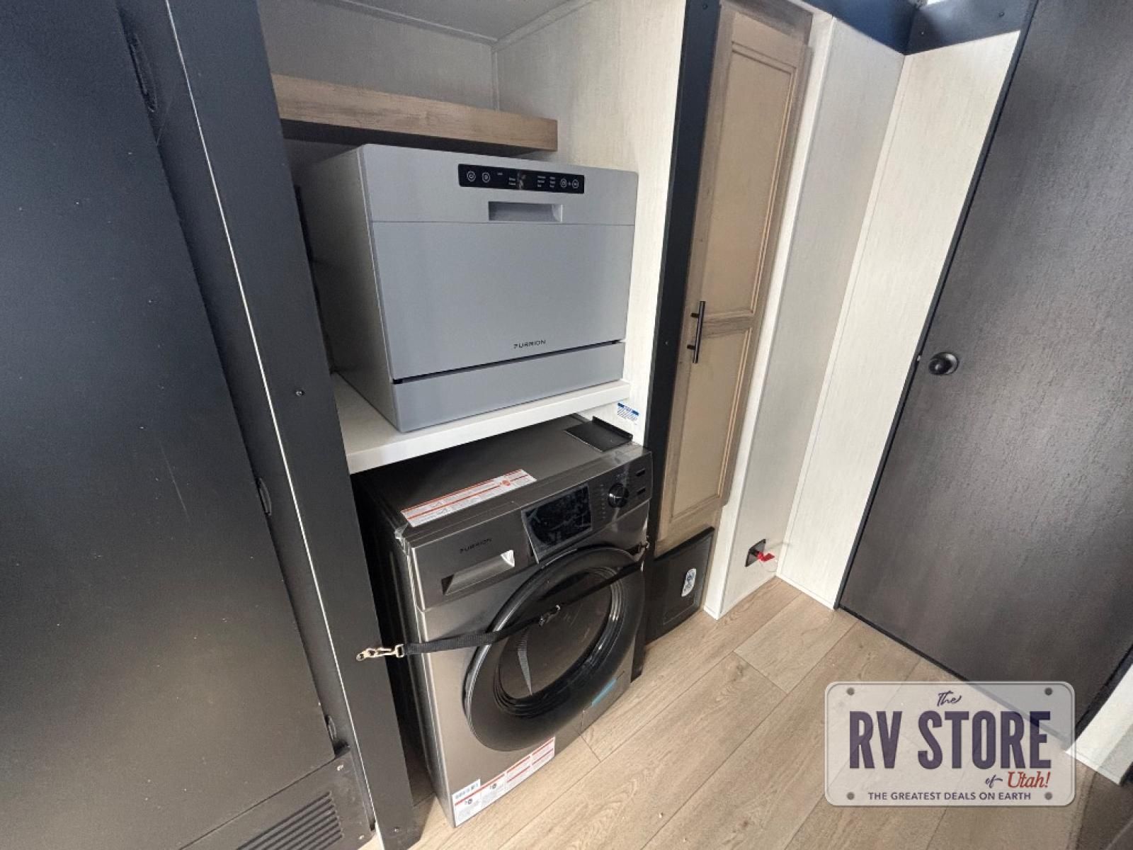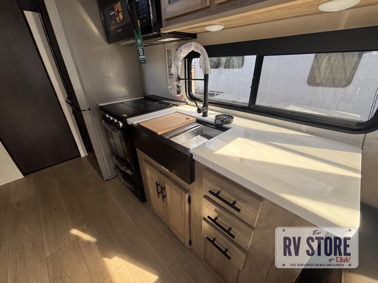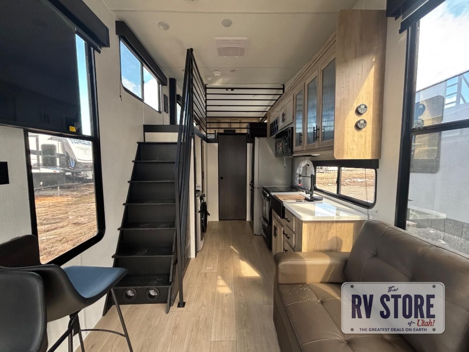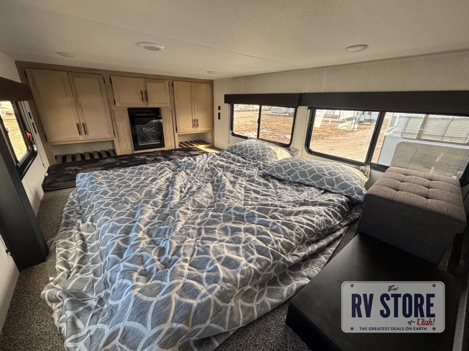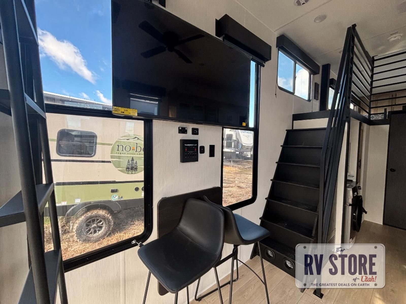 This model is similar to 16ML but larger! A bigger bathroom, RVÂ king bed in the lower master, and a queen bed plus a twin bunk mat in the front loft. And the second loft can be utilized as extra sleeping space or storage space! There is an 18 cu. ft. refrigerator so you can stock up for a week long vacation, a hide-a-bed sofa that can transform into added sleeping for guests, and a high top table with two stools to dine at. The bathroom below is split with a shower on one side, and a private toilet area and sink opposite. And the view is amazing from just about anywhere inside.