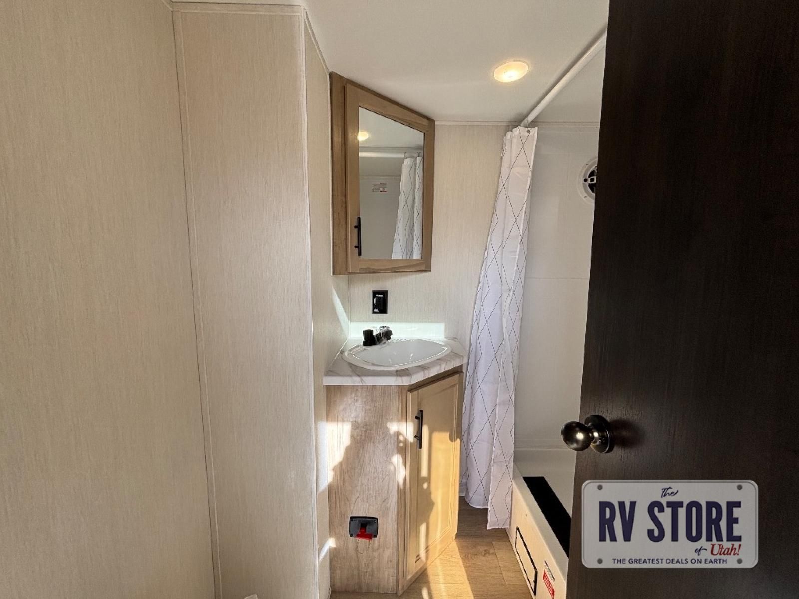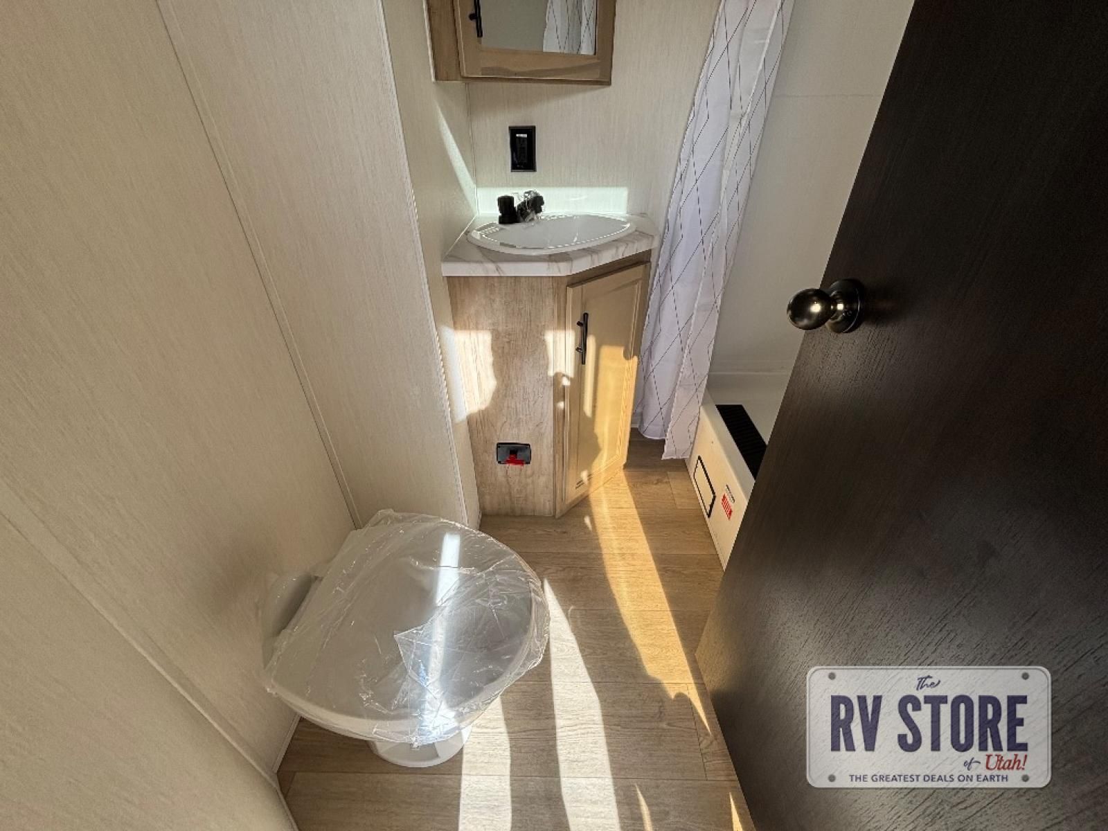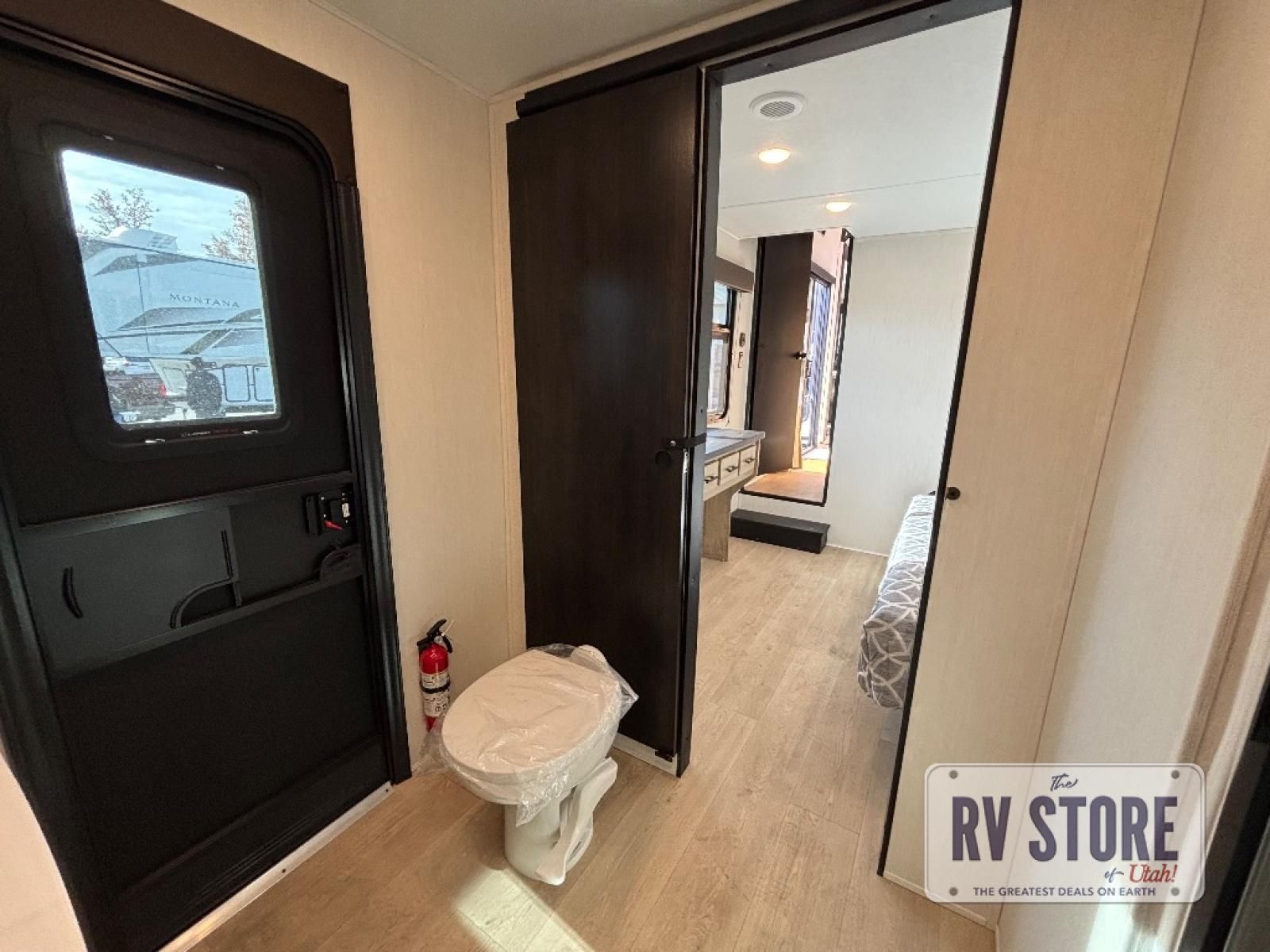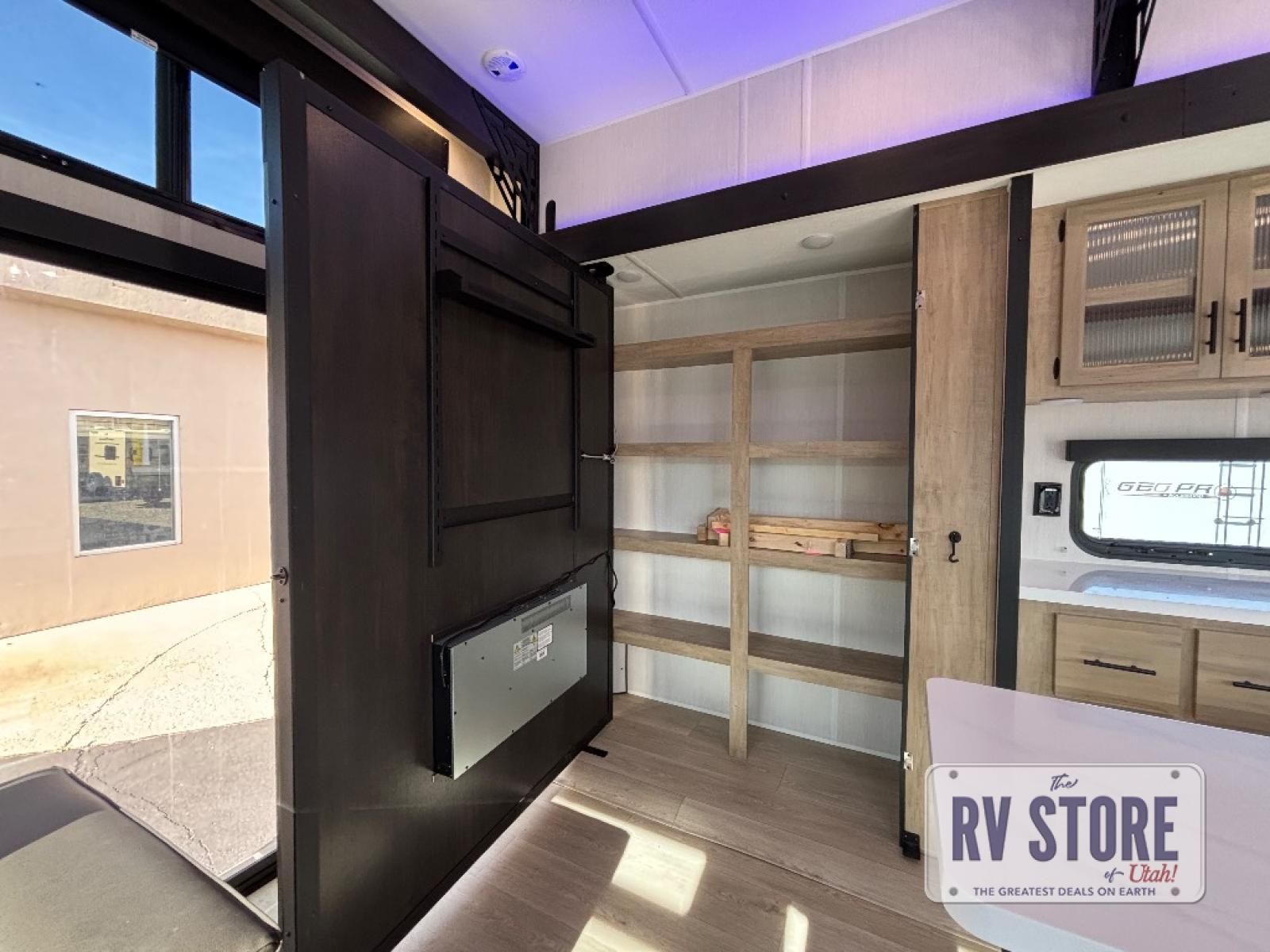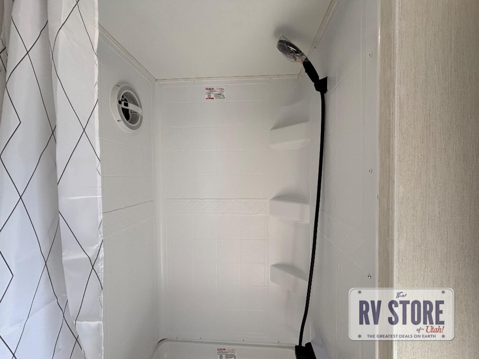 Choosing this destination trailer as your next RV won't be a hard decision! You can enter in through the front bath that includes dual bath sinks, a shower with a seat, and a medicine cabinet for your necessities. The master bedroom is connected to this bath for added convenience, and you're sure to enjoy the bedroom fireplace and king bed slide out. Just outside this room are the stairs that lead to the loft where you'll find two queen-size beds on one side and an open area where the kids can play or to use as storage. A second full bath is found next the stairs on the lower level, and there is a wardrobe with washer/dryer prep if you want to add these appliances. Everyone will love to join together and visit in the combined kitchen and living room. Here, you'll find a free-standing dinette, an L-shaped sofa, a kitchen island with two chairs, plus an entertainment center with a fireplace! The hidden pantry behind the fireplace will let you keep food stocked, and the rear patio doors will let natural light in!
