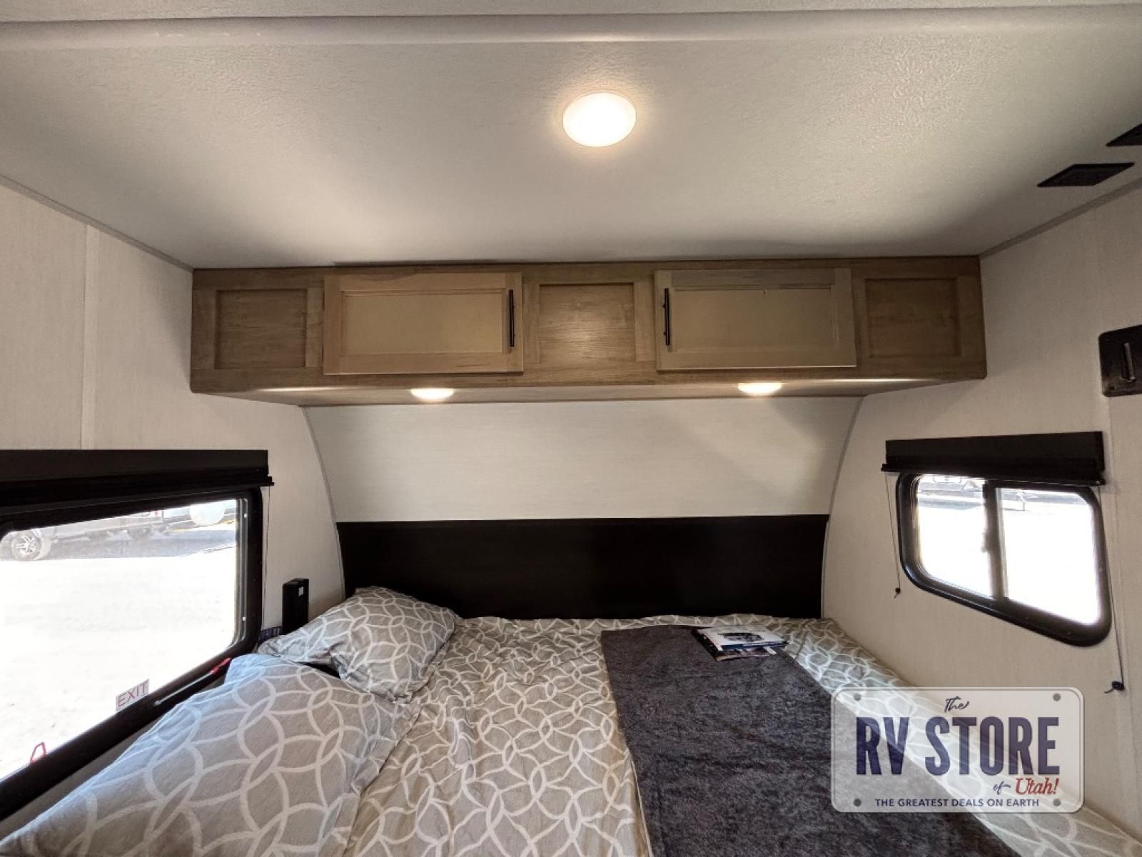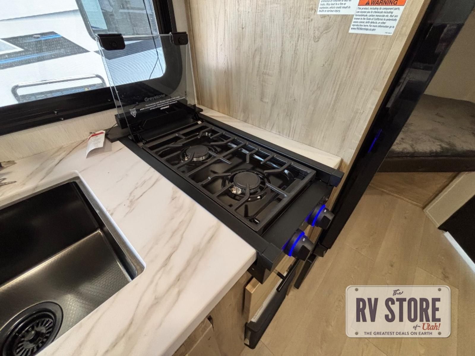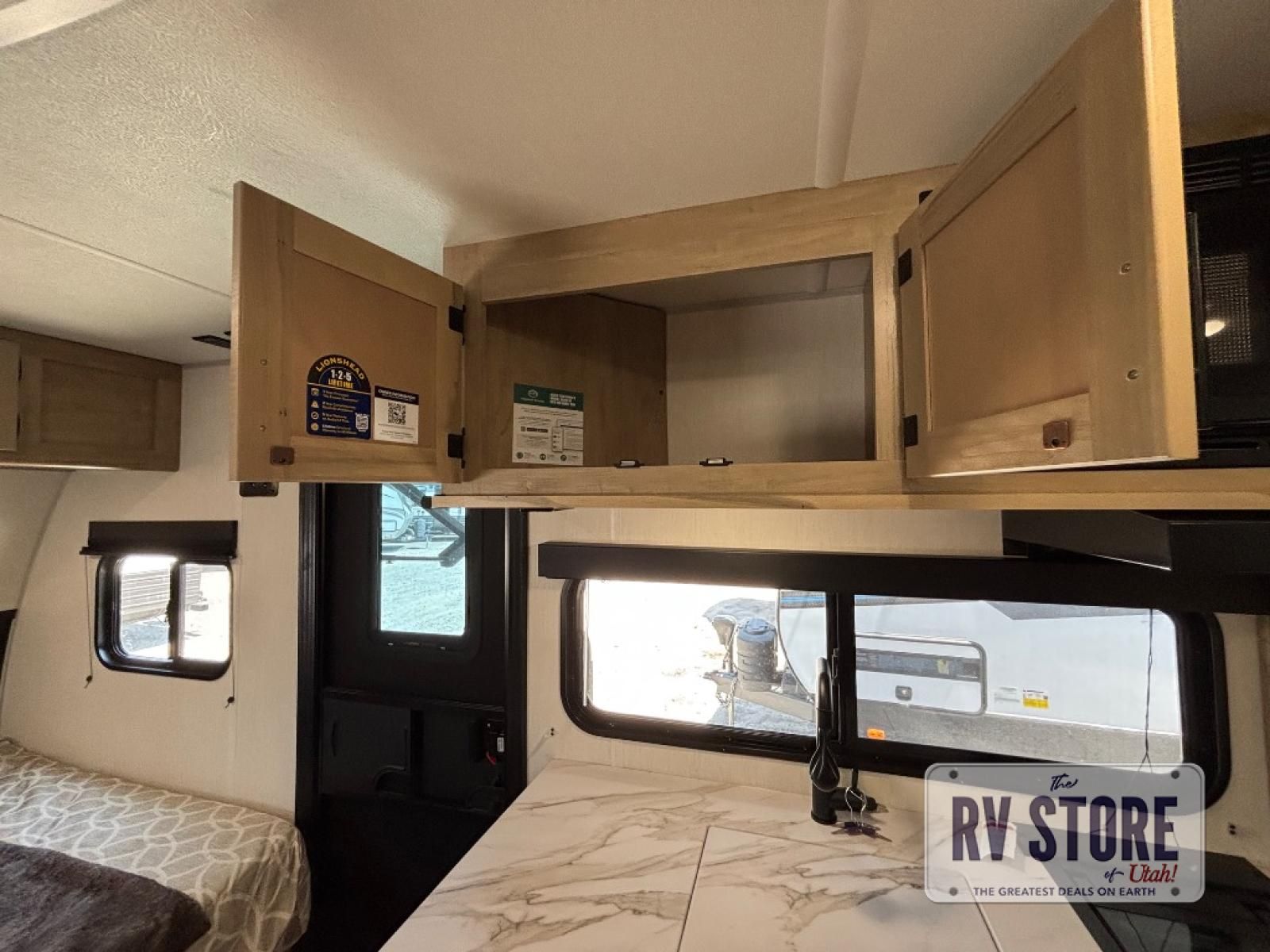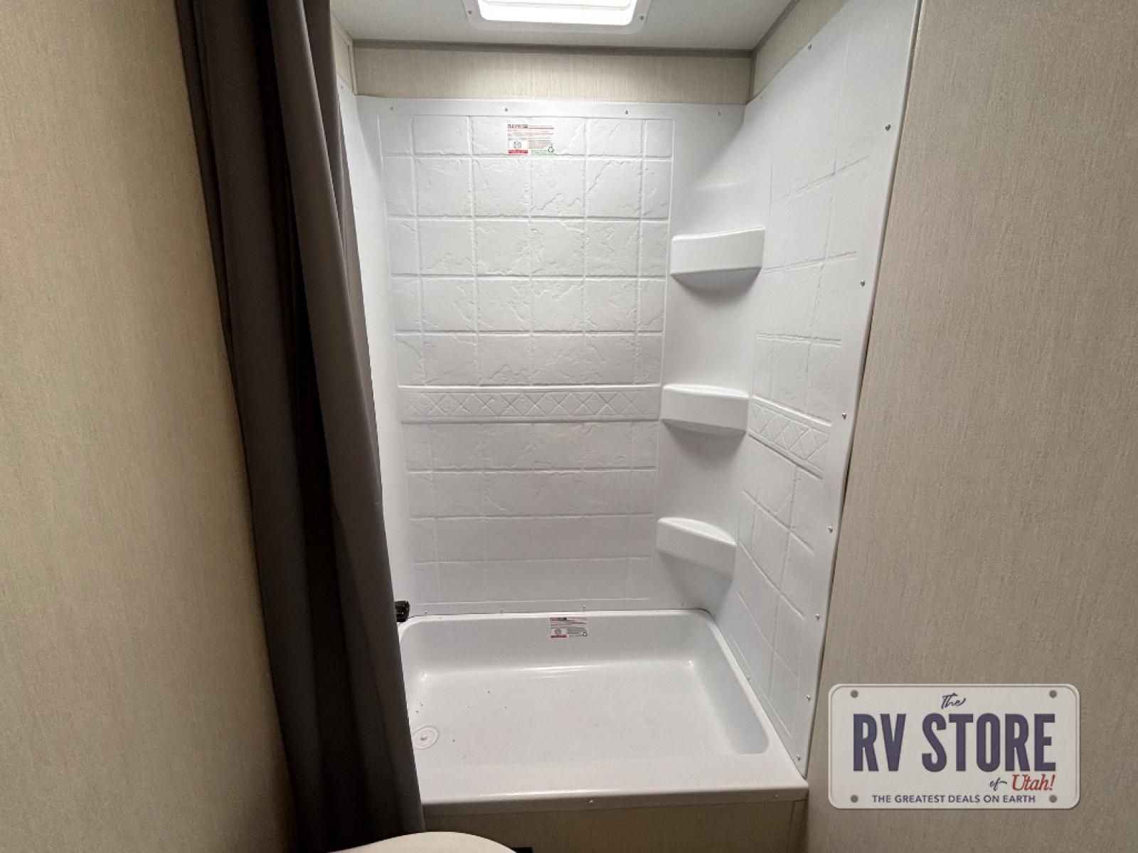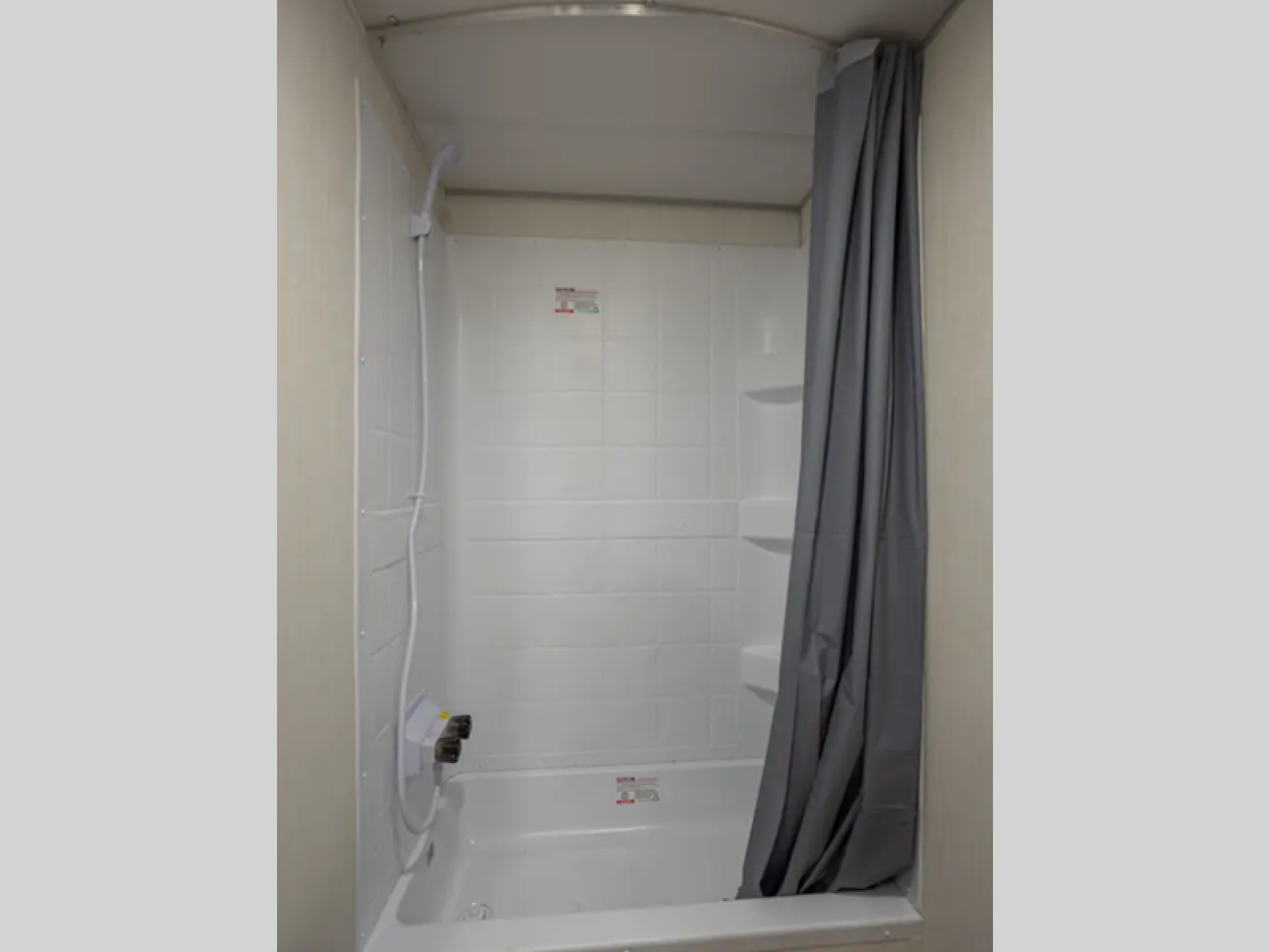 This family travel trailer is ready to head to the campground whenever you are! The kiddos can sleep on the set of double-size bed bunks and you can sleep on the front queen bed, plus the U-shaped dinette slide can also transform into an extra sleeping space when you aren't using it to enjoy a meal prepared with the high output cooktop. You can also prepare your delicious meals at the outside mini kitchen and stay protected by the power awning. The exterior not only has outside storage and an outside TV mount, but also features an outside storage plus door for access to the storage space underneath the bottom bunk bed. The rear corner bath allows everyone to stay clean and refreshed while you camp.