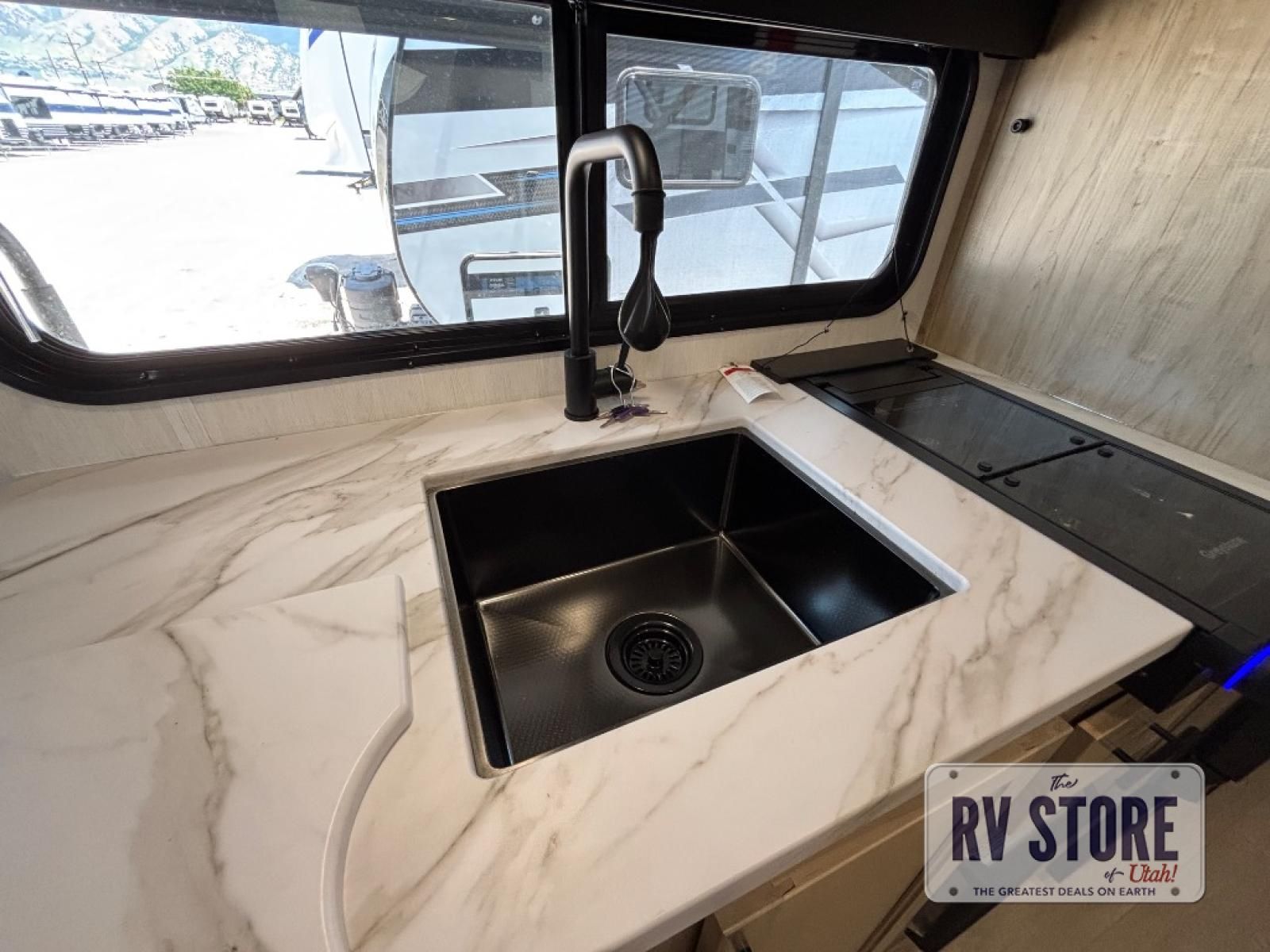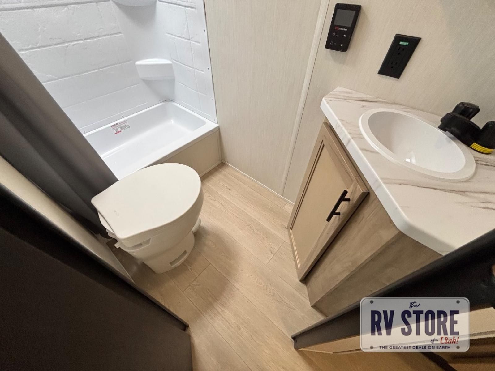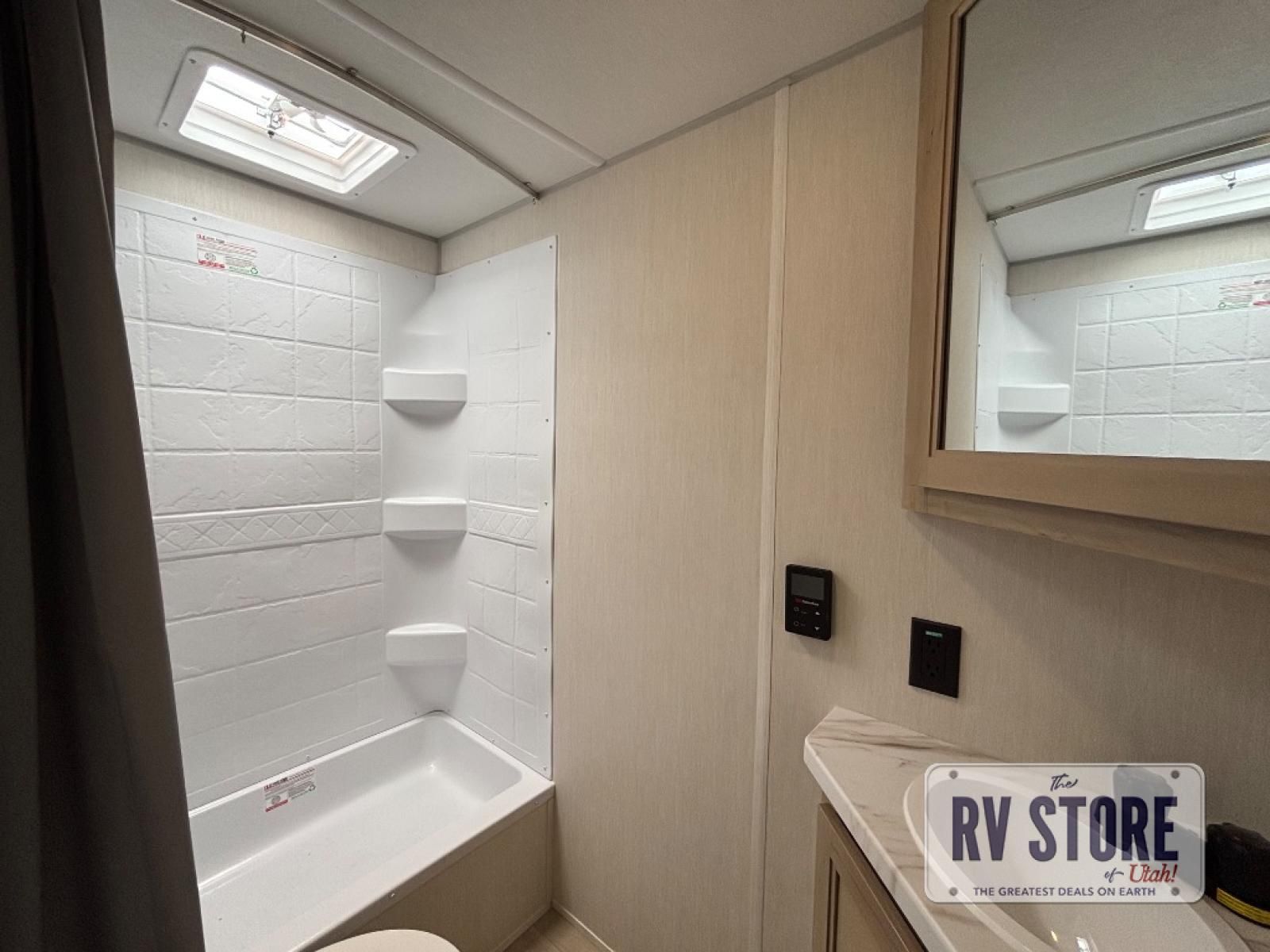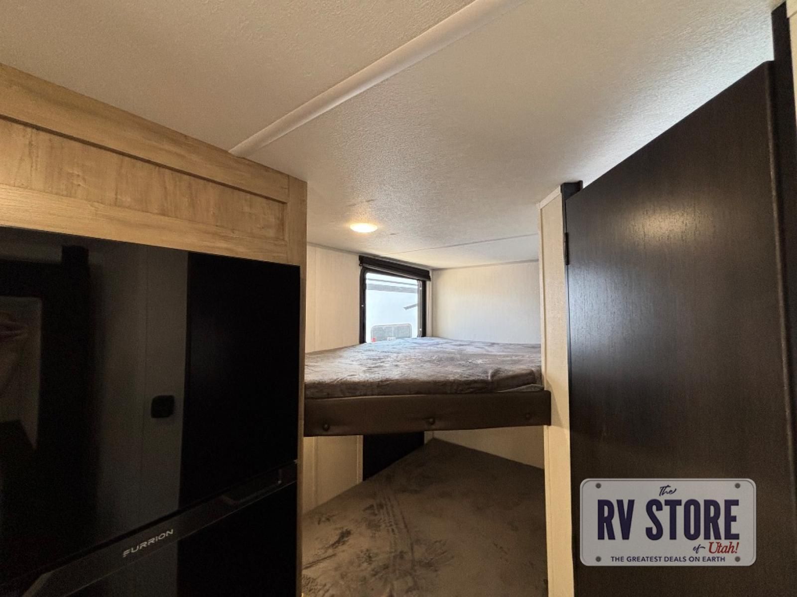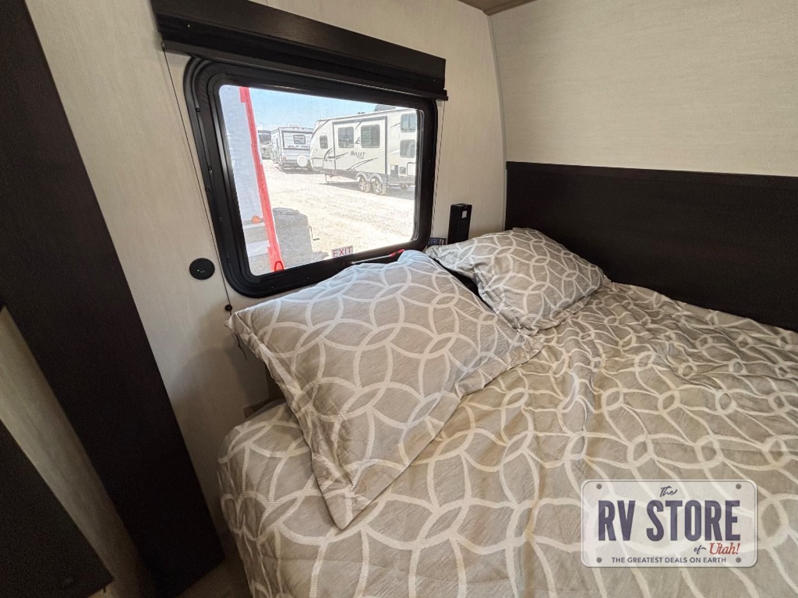 This family travel trailer is ready to head to the campground whenever you are! The kiddos can sleep on the set of double-size bed bunks and you can sleep on the front queen bed, plus the U-shaped dinette slide can also transform into an extra sleeping space when you aren't using it to enjoy a meal prepared with the high output cooktop. You can also prepare your delicious meals at the outside mini kitchen and stay protected by the power awning. The exterior not only has outside storage and an outside TV mount, but also features an outside storage plus door for access to the storage space underneath the bottom bunk bed. The rear corner bath allows everyone to stay clean and refreshed while you camp.