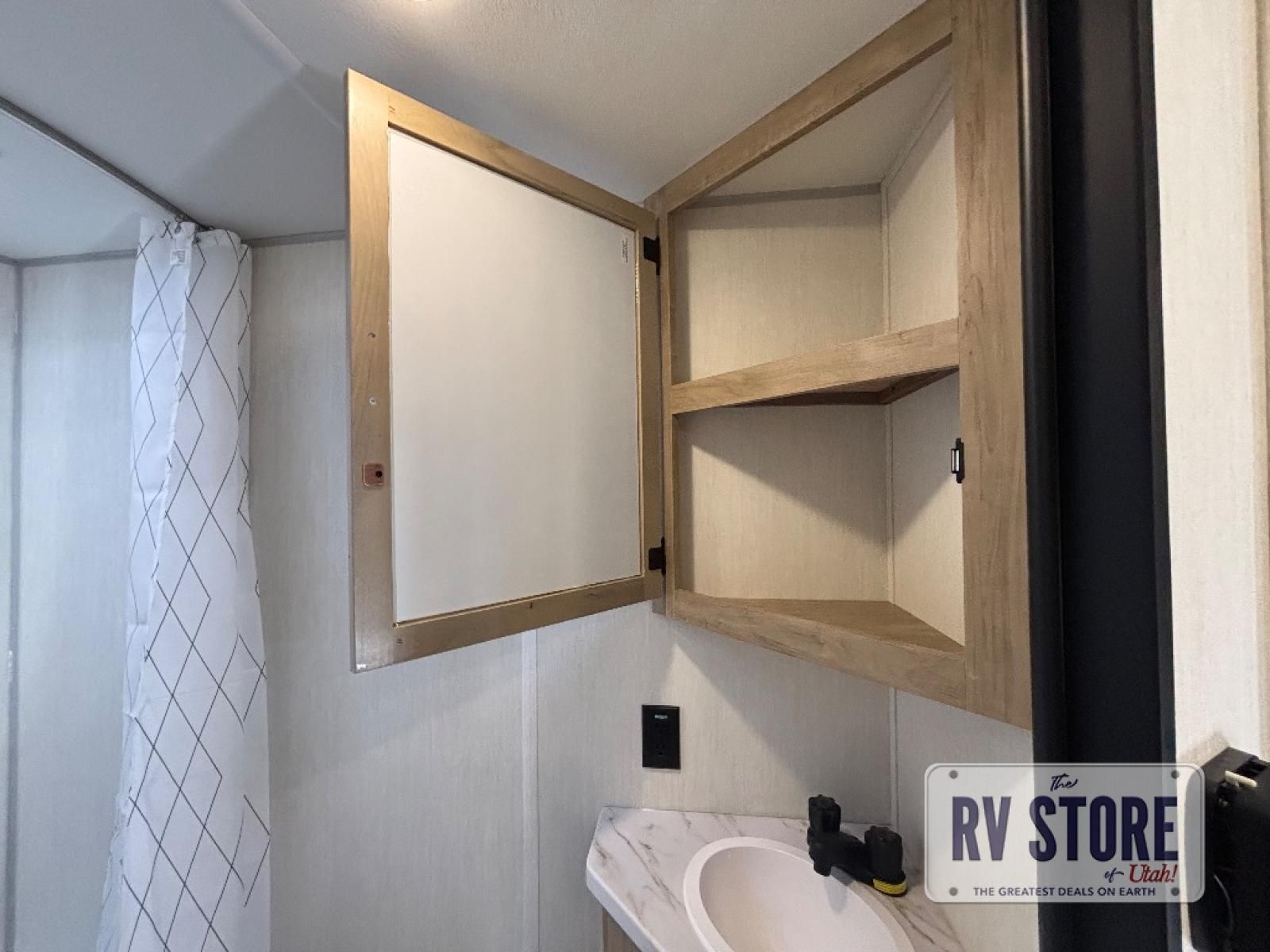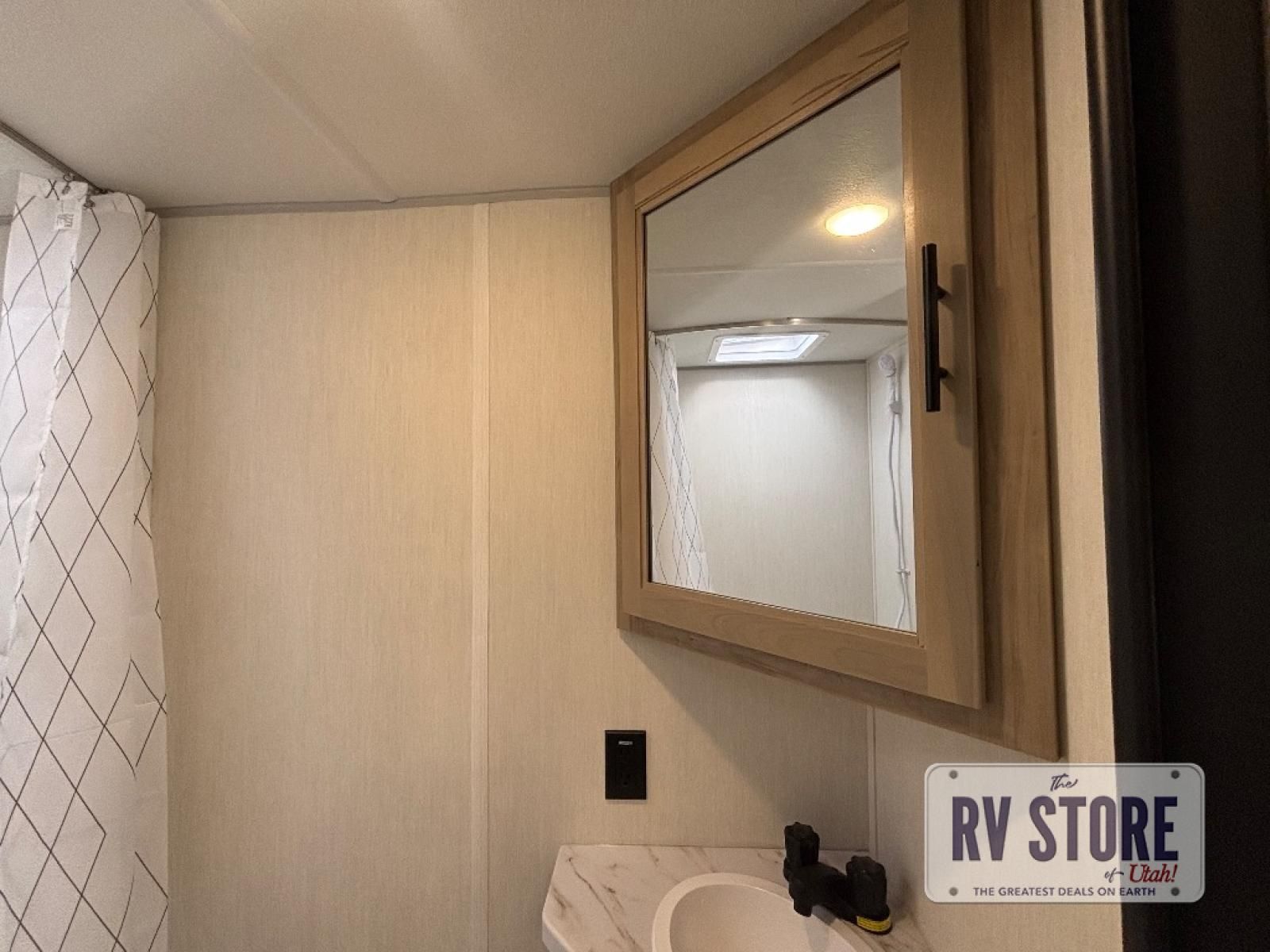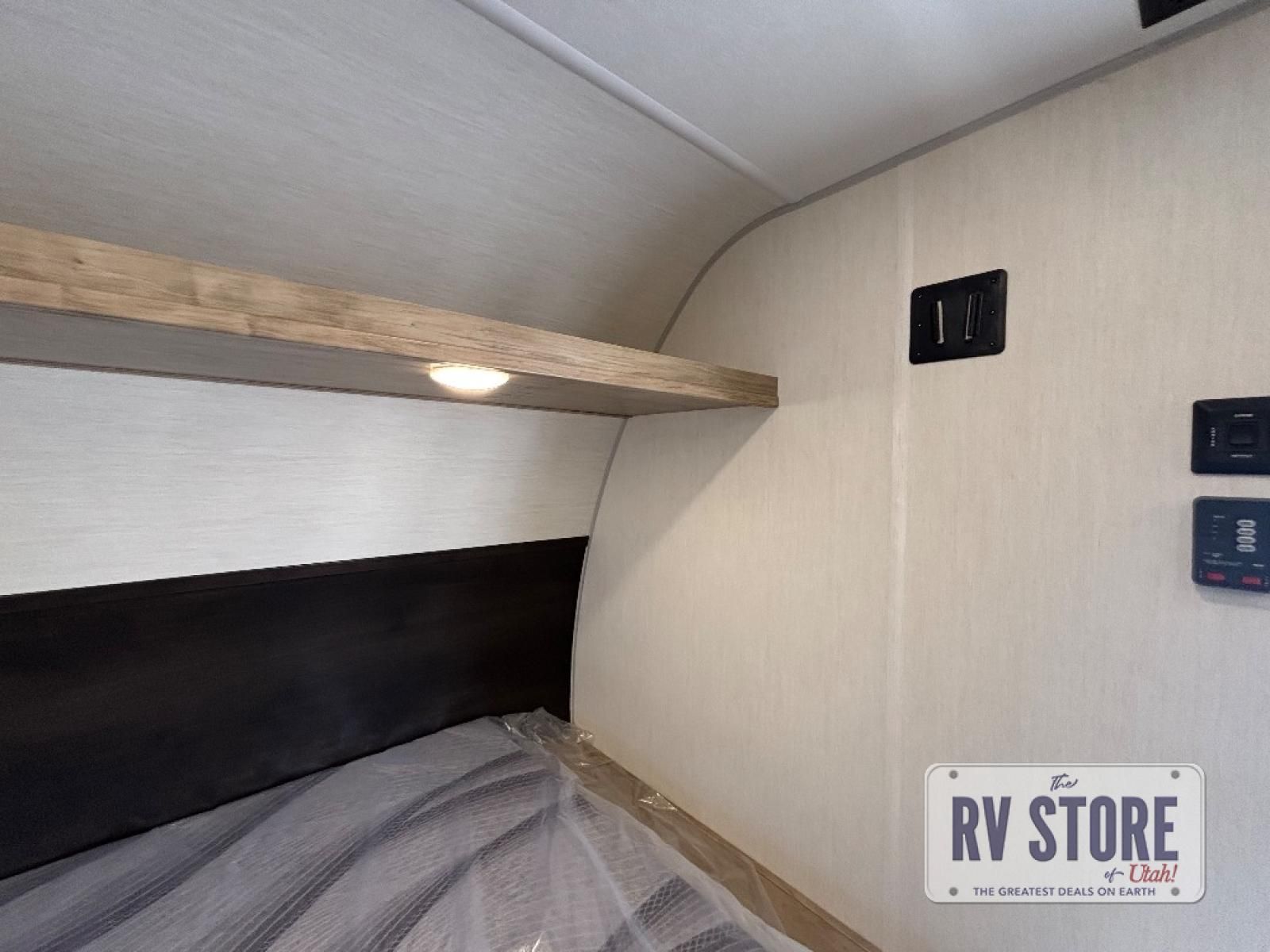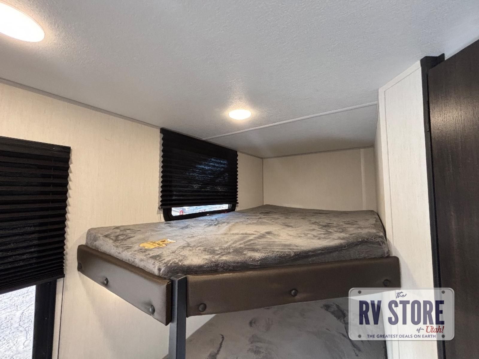 Create amazing memories in this stunning travel trailer! It is perfect for at least six people, thanks to its multiple sleeping spaces. The spacious double-sized bunk beds are ideal for kids or guests, while the plush queen-sized bed provides a restful retreat for adults. The full bathroom is equipped with everything you need for a comfortable stay, and the kitchen features a refrigerator and microwave for you to go wild in the kitchen. You can also gather around the dinette for meals and snacks, or relax in the evenings under the protection of the exterior awning. In addition, ample overhead cabinets provide storage for cookware, dishes, and essentials, keeping your trailer tidy and organized.