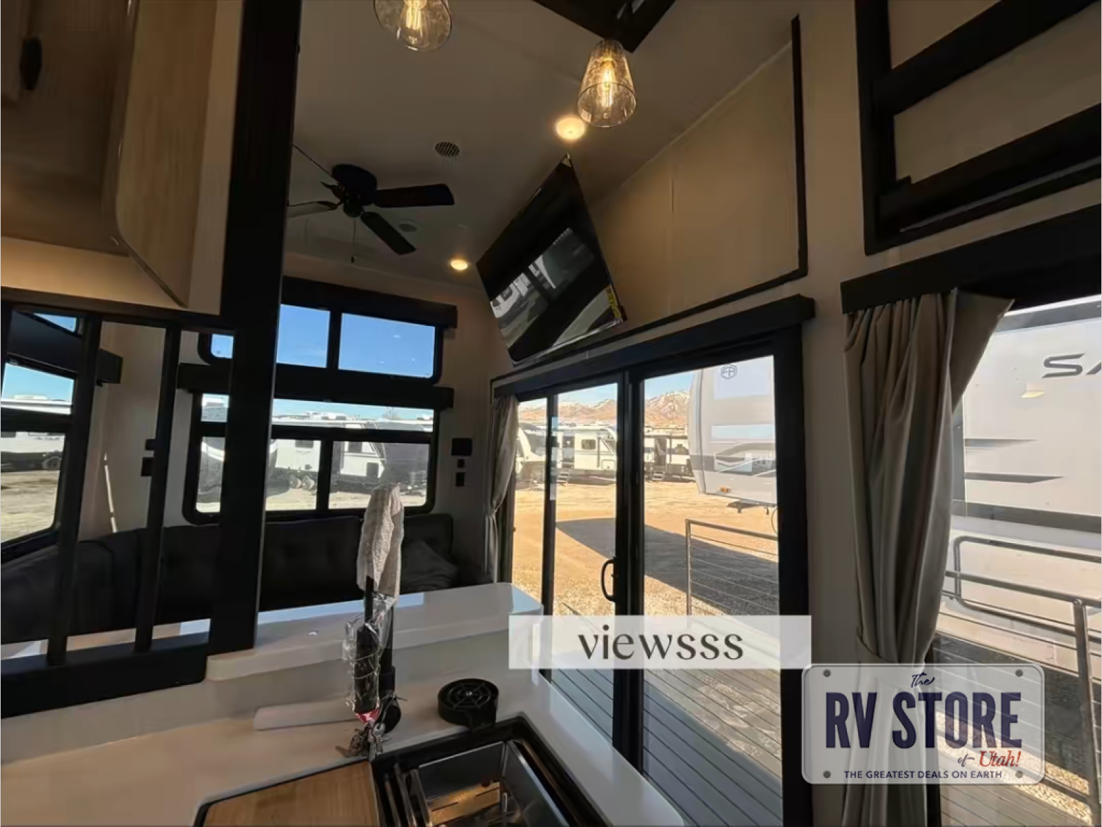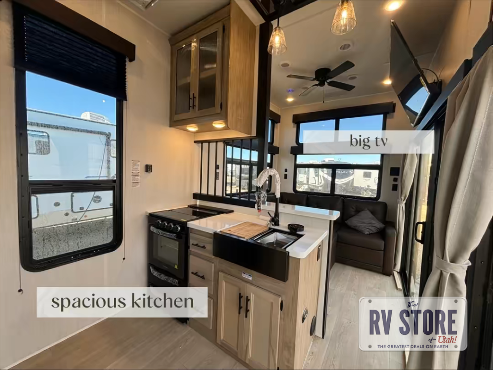 Nestled in a tranquil setting, this destination trailer offers the perfect blend of comfort and relaxation. The heart of the trailer is the main space, where you can chill on the L-shaped sofa or prep meals in the kitchen. The full bathroom is a refreshing oasis, and the kitchen is equipped with a fridge, microwave, pantry, and sink—everything you need to keep you fueled and happy. Furthermore, the rear king bed is a luxurious retreat, perfect for unwinding after a big day. Finally, up in the loft, the queen bed is a cozy nest with a unique view, making this RV great for reading, relaxing, or catching some Z's.