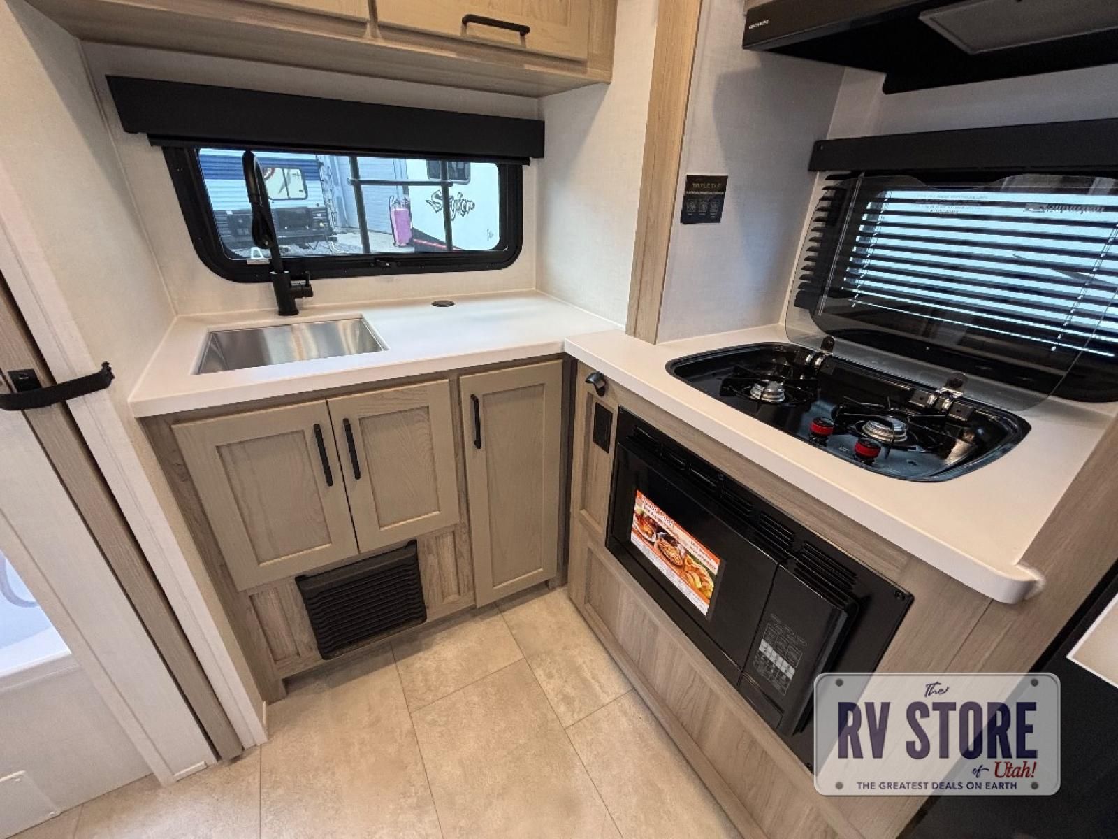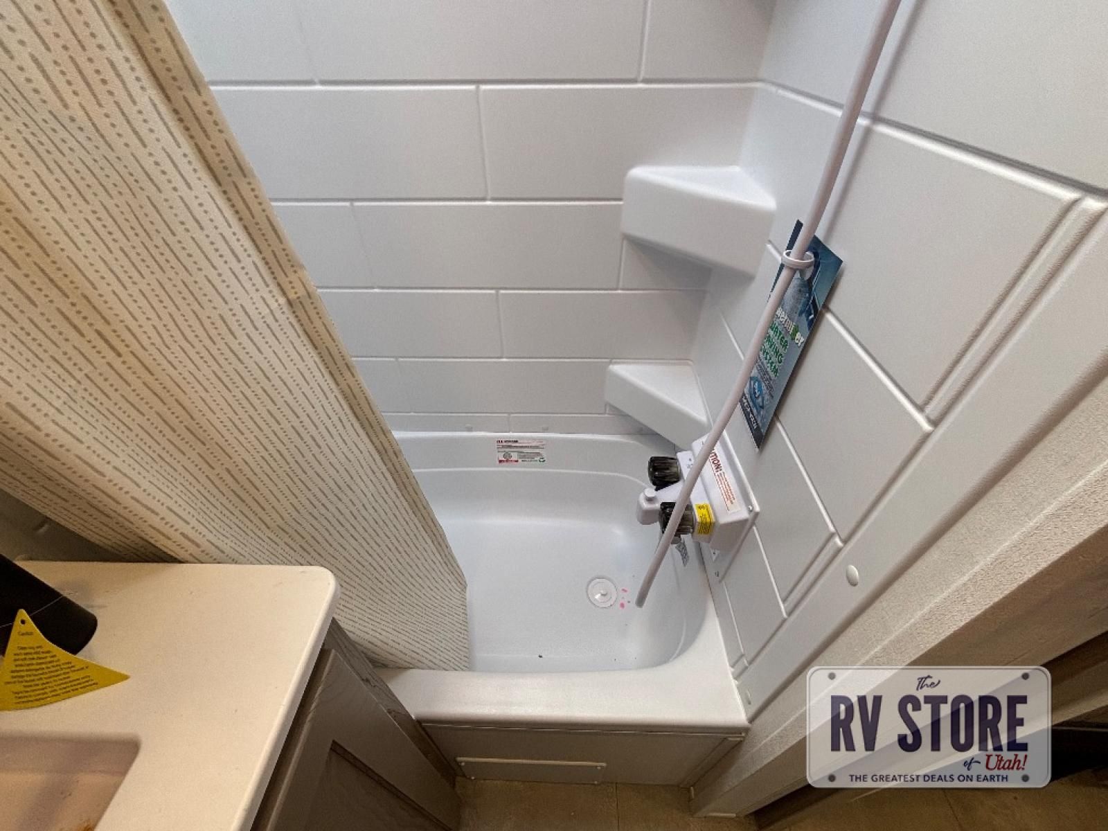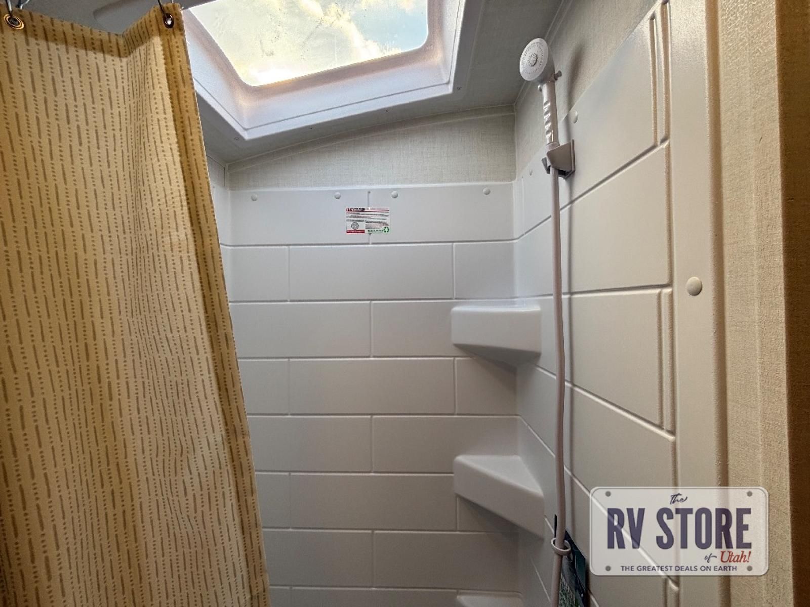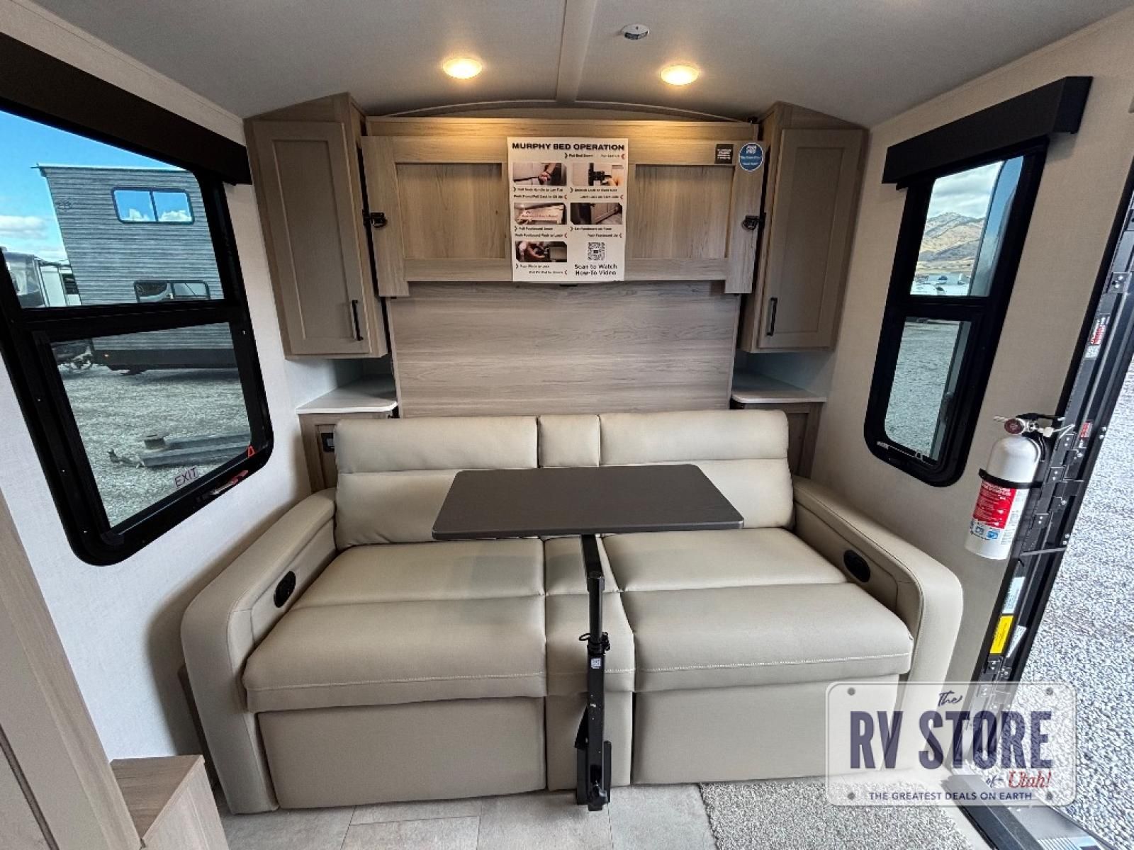 Pack your bags and head to your local state park in this travel trailer! You will love the extra space you have thanks to the kitchen slide out, and the jack knife sofa can fold away at night so you can sleep on the Murphy bed! This model includes a 12V TV to keep you entertained on those rainy days, and the full bath will let you get cleaned up if you decide to hike despite the weather. There will be plenty of storage space for your belongings and gear since there is a pass-through storage and additional exterior storage.