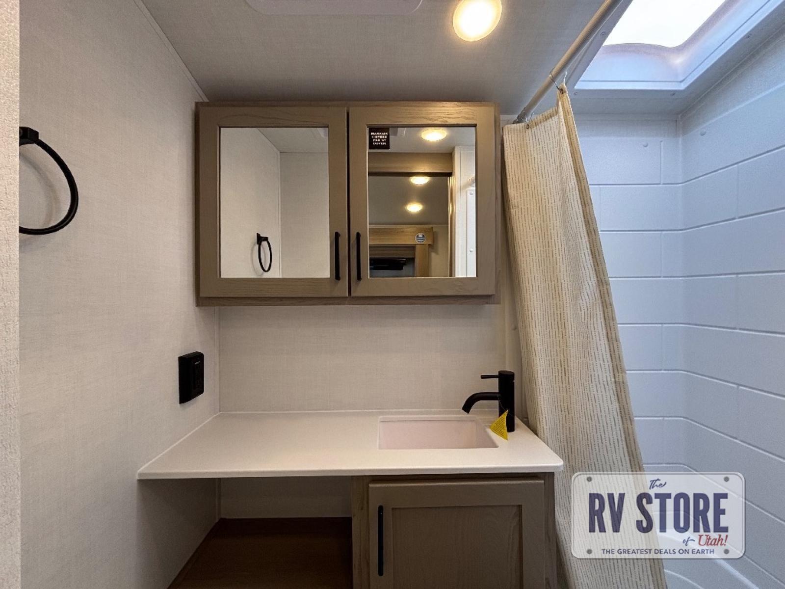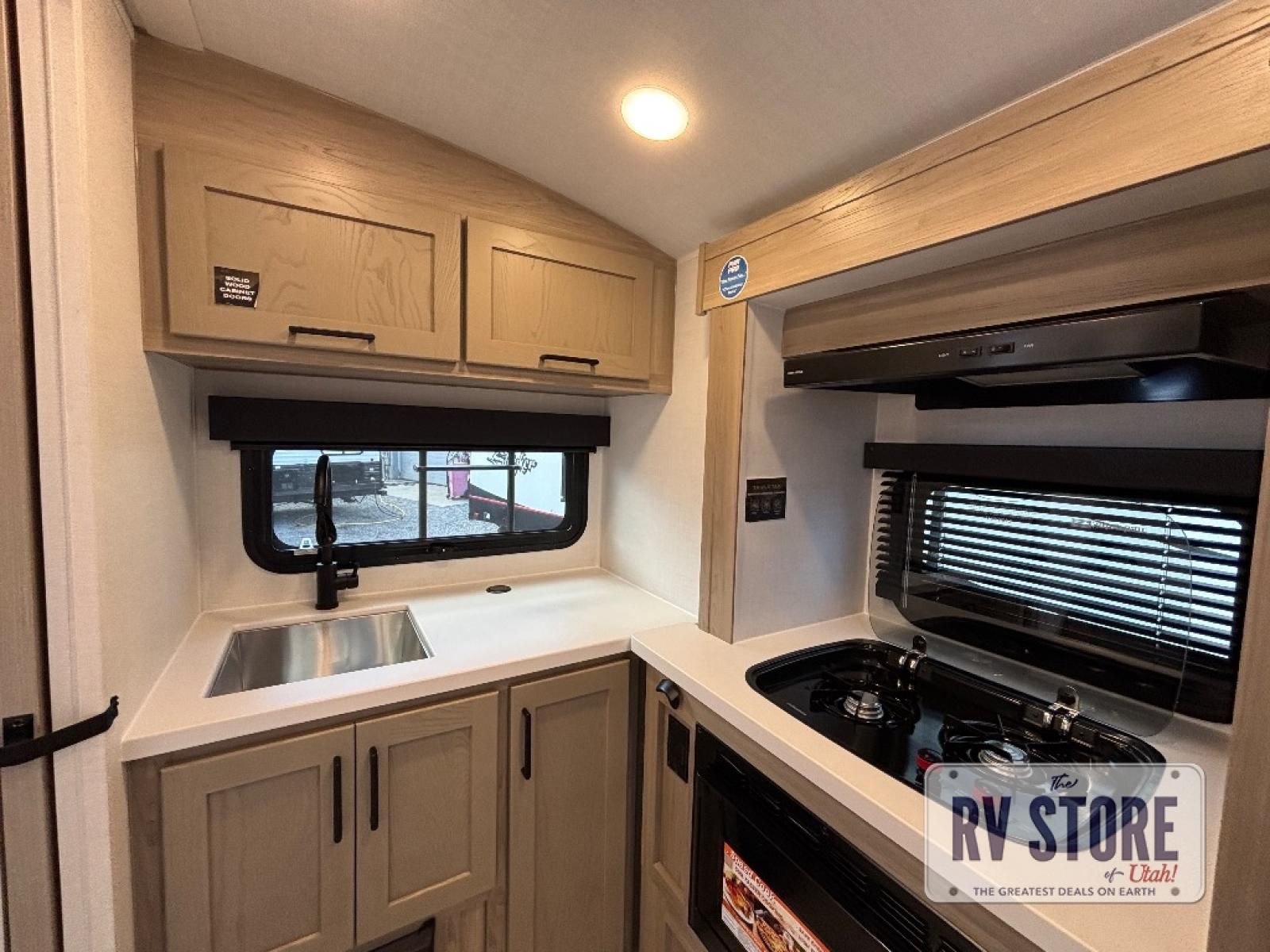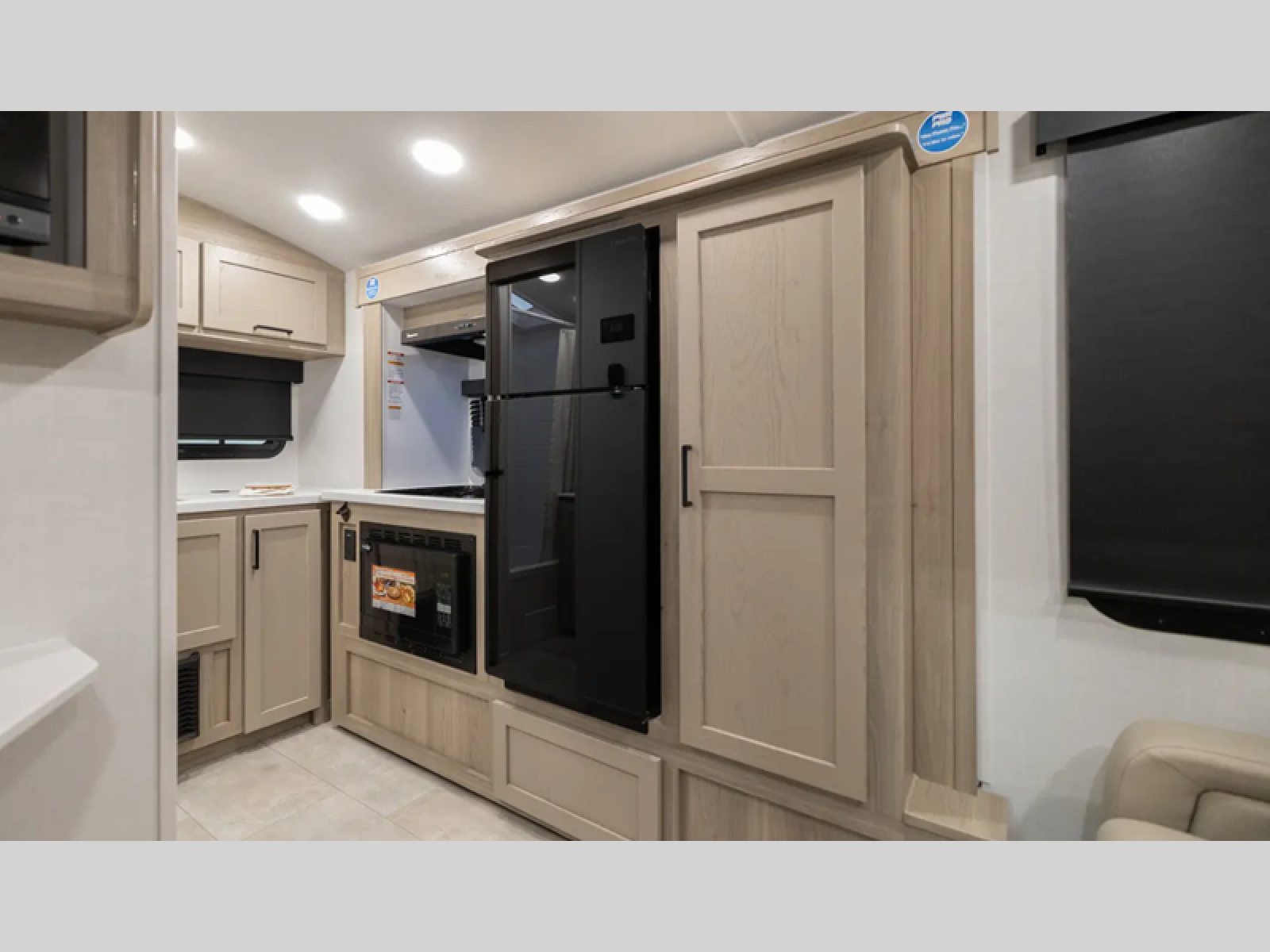 Pack your bags and head to your local state park in this travel trailer! You will love the extra space you have thanks to the kitchen slide out, and the jack knife sofa can fold away at night so you can sleep on the Murphy bed! This model includes a 12V TV to keep you entertained on those rainy days, and the full bath will let you get cleaned up if you decide to hike despite the weather. There will be plenty of storage space for your belongings and gear since there is a pass-through storage and additional exterior storage.