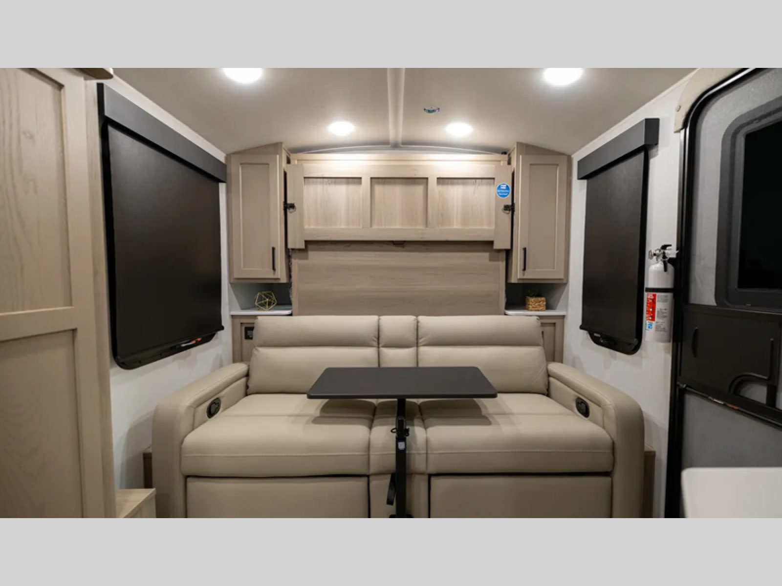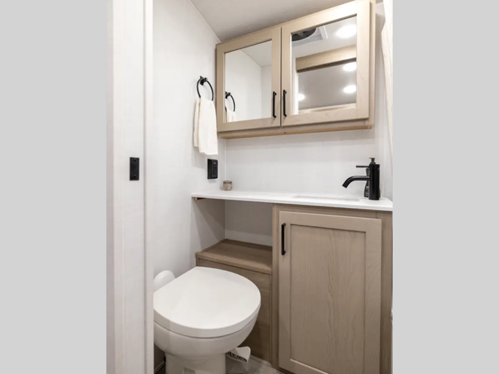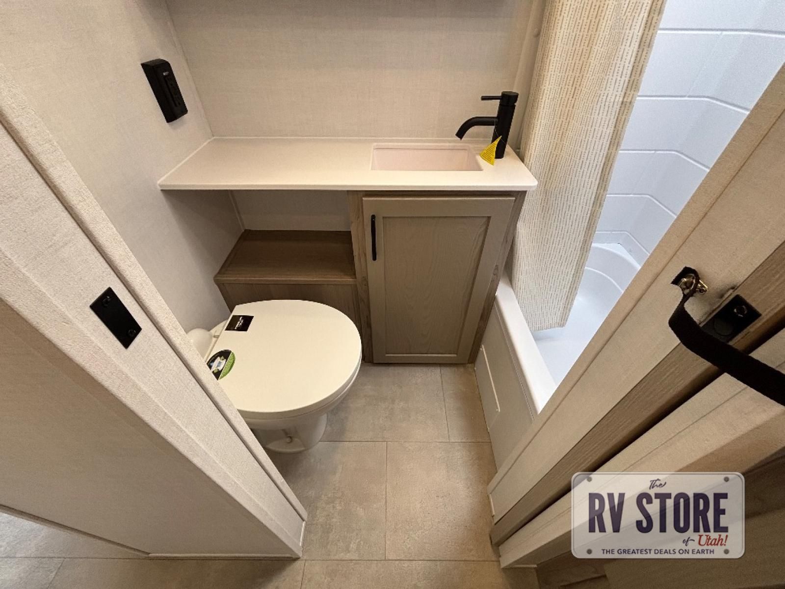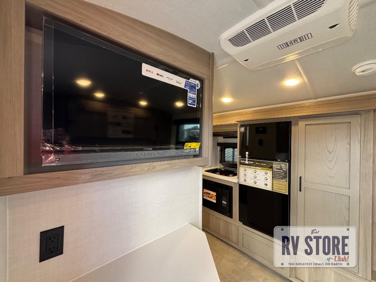Pack your bags and head to your local state park in this travel trailer! You will love the extra space you have thanks to the kitchen slide out, and the jack knife sofa can fold away at night so you can sleep on the Murphy bed! This model includes a 12V TV to keep you entertained on those rainy days, and the full bath will let you get cleaned up if you decide to hike despite the weather. There will be plenty of storage space for your belongings and gear since there is a pass-through storage and additional exterior storage.