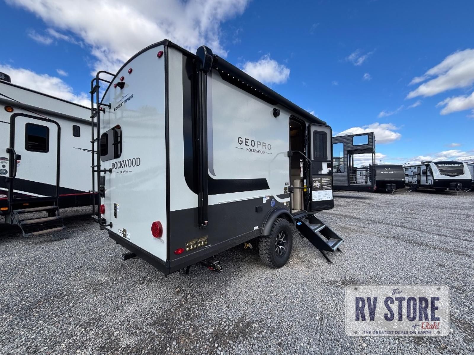 With any Rockwood GEO Pro travel trailer by Forest River you will enjoy easy towing, durable construction, and off-road capabilities with larger l****aminated roof! Each model is constructed with complete composite wall construction for added strength and durability, and Dexter® axles that will make towing easier than ever. Inside, you'll find sleek back up camera prep for added security, a refrigerator and a microwave, plus many other interior amenities that will make you feel at home on the road.
