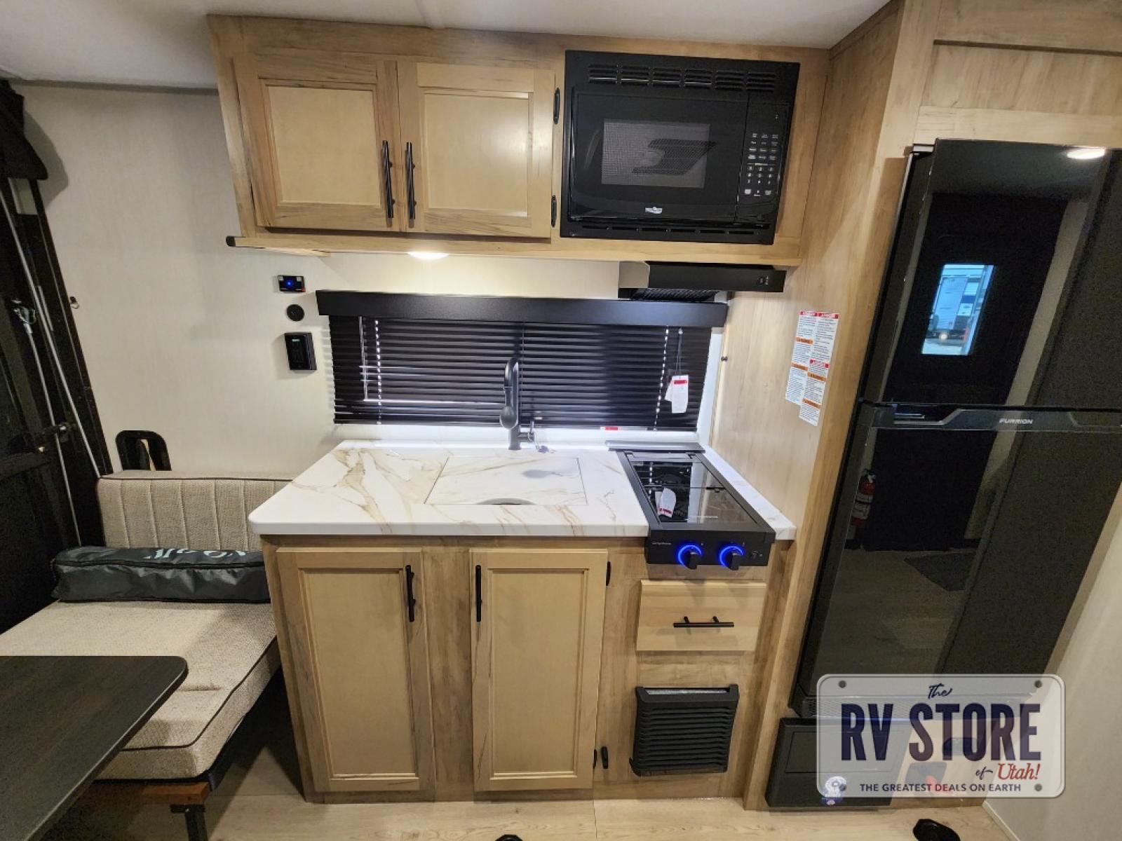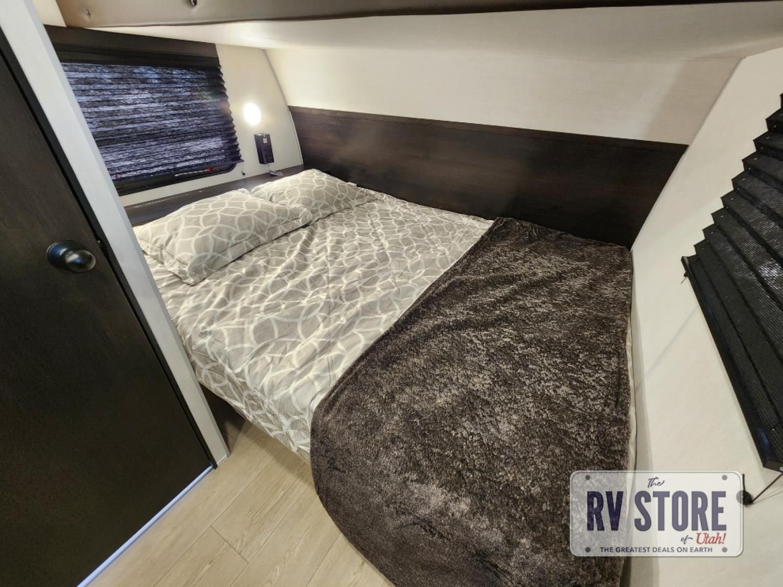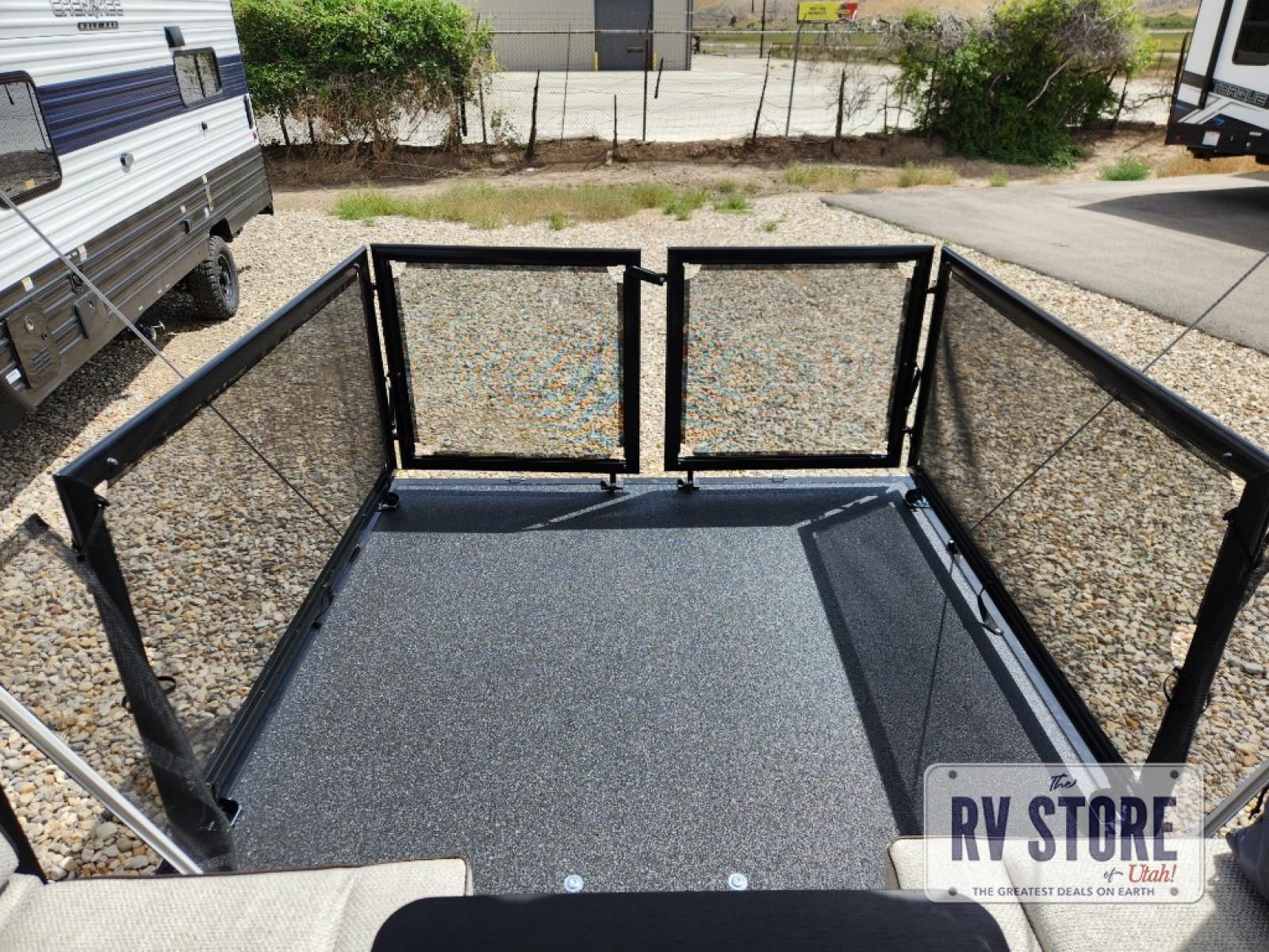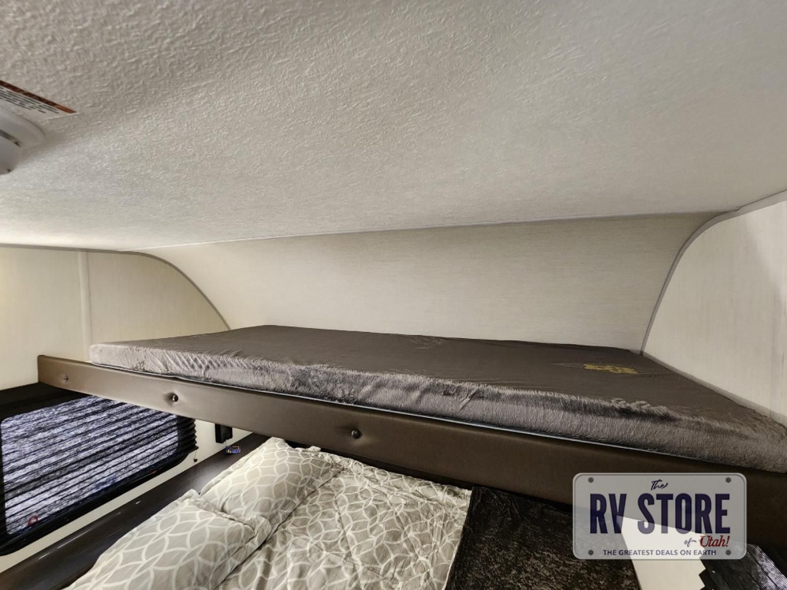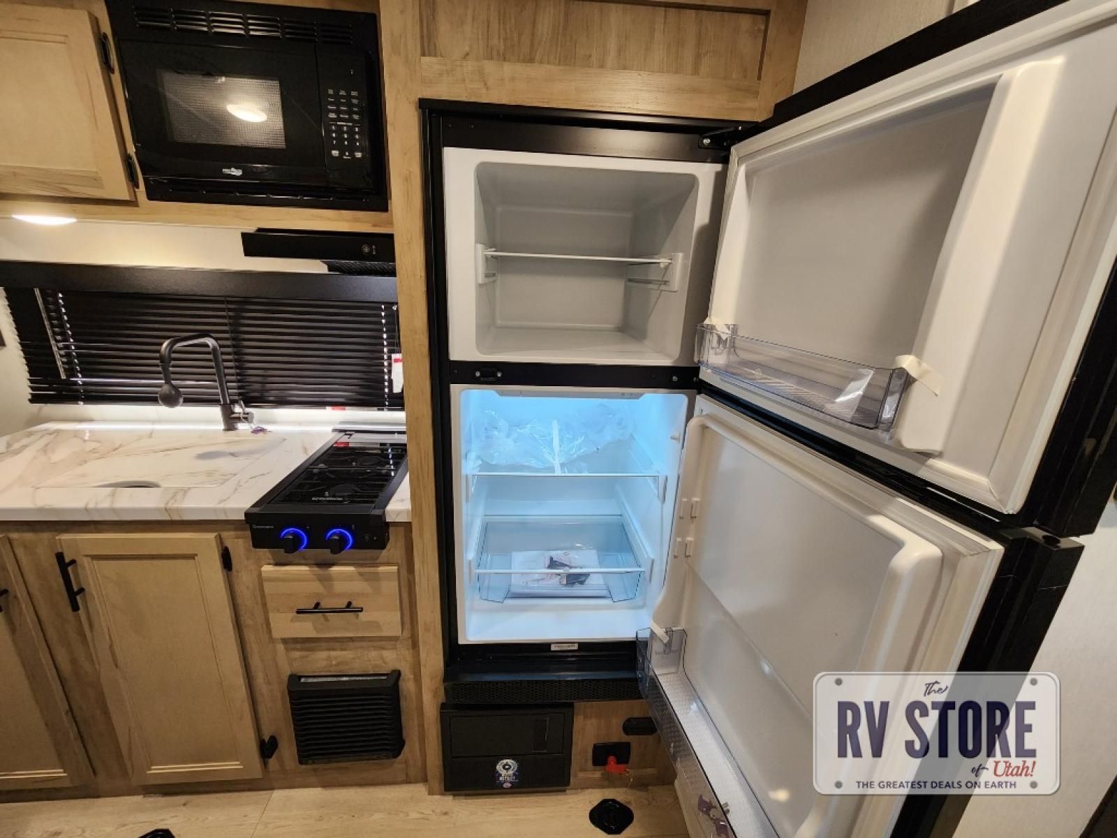 Sleeping for five and up to 13' 11" for your toys makes for an exciting adventure. The rear ramp door makes it easy to load and unload your toys, and once you are camped and the toys are removed, you can set up the dinette in back with removeable table. At night, this can double as sleeping space for two more tired campers. Up front, a queen bed with bunk above, plus storage. A tub/shower will keep everyone feeling their best, and the modern chef's kitchen will allow you to keep everyone fueled and ready for fun! There is a inside and outside TV mount so you can choose where to put a television if you add one. There is also outside storage up front and a 12' awning for added living space outside to enjoy. Â