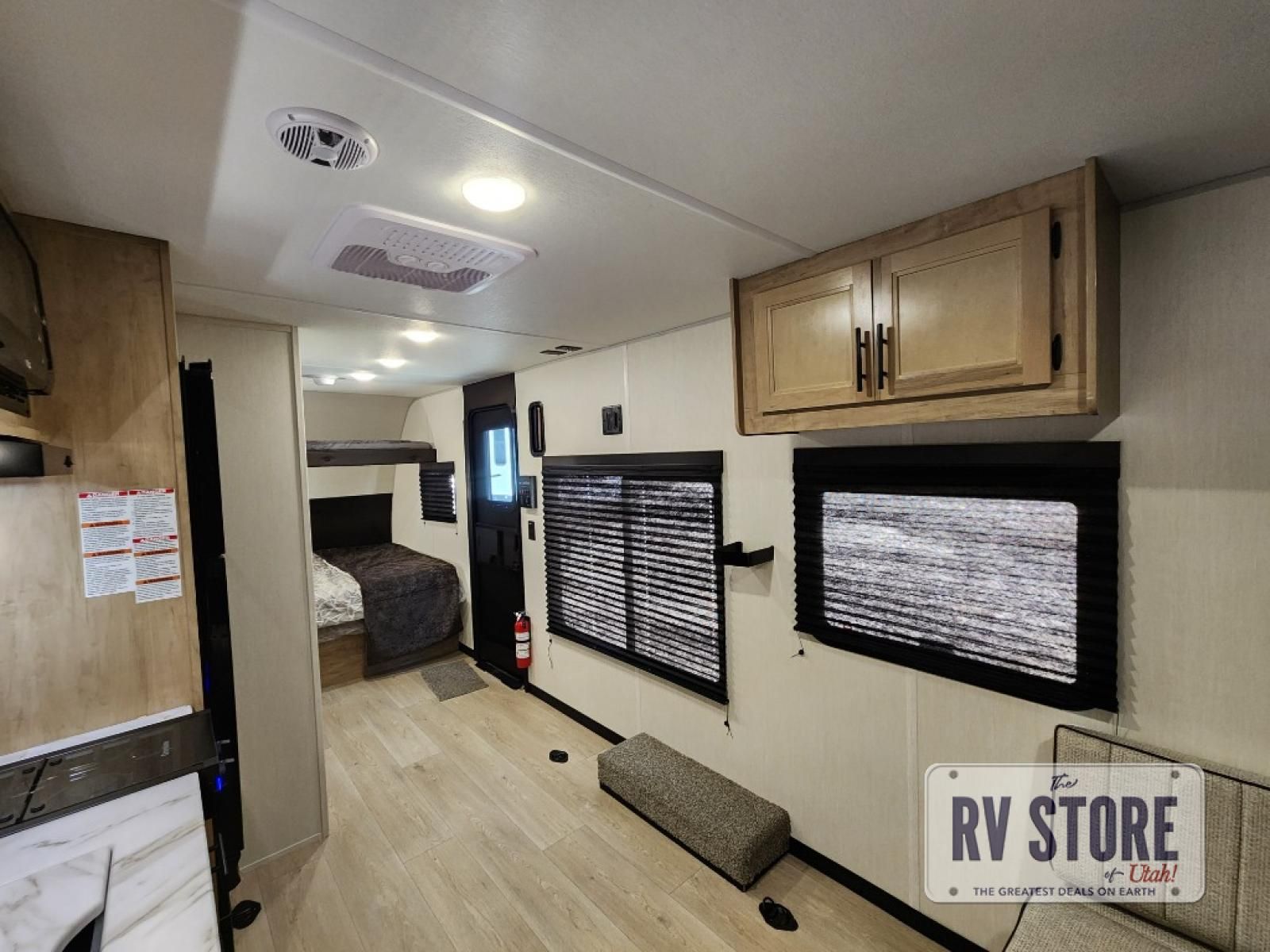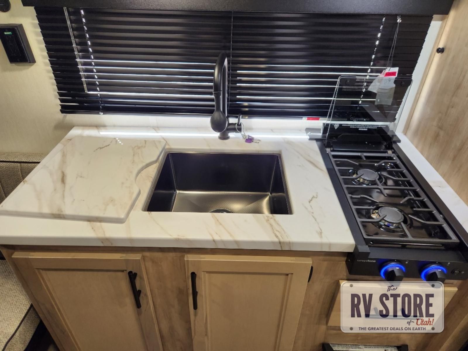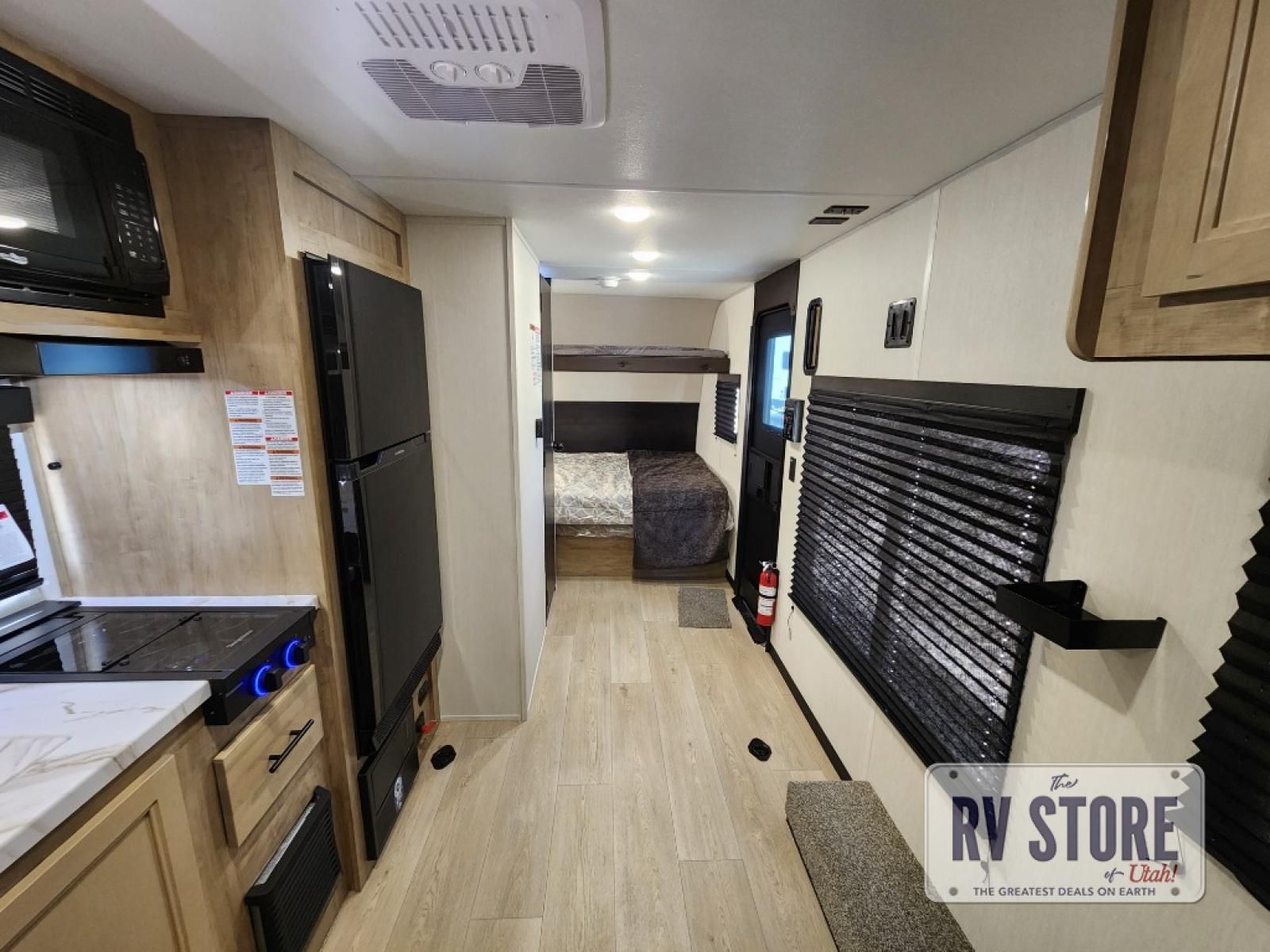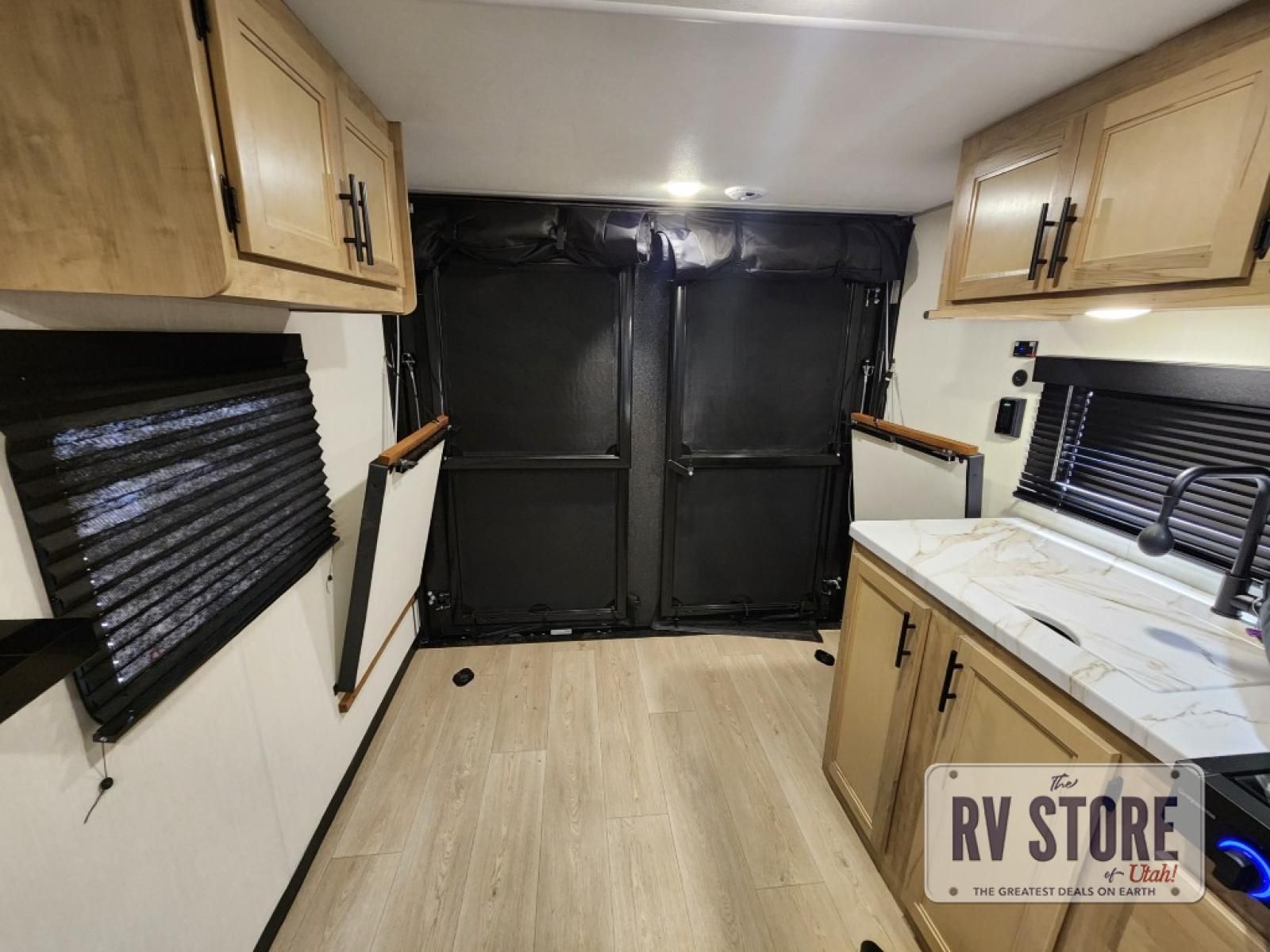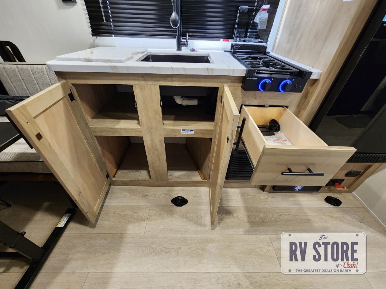 Sleeping for five and up to 13' 11" for your toys makes for an exciting adventure. The rear ramp door makes it easy to load and unload your toys, and once you are camped and the toys are removed, you can set up the dinette in back with removeable table. At night, this can double as sleeping space for two more tired campers. Up front, a queen bed with bunk above, plus storage. A tub/shower will keep everyone feeling their best, and the modern chef's kitchen will allow you to keep everyone fueled and ready for fun! There is a inside and outside TV mount so you can choose where to put a television if you add one. There is also outside storage up front and a 12' awning for added living space outside to enjoy. Â