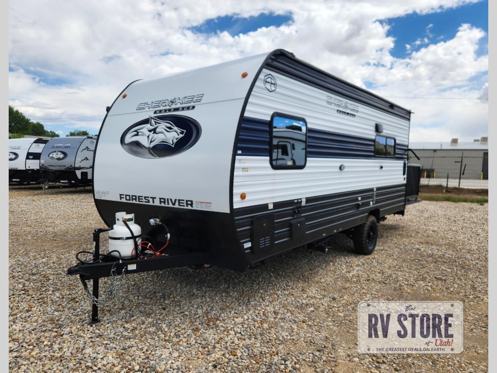 Each one of these Forest River Cherokee Wolf Pup travel trailers and toy hauler are lightweight and easy to tow! They are fully self contained with ample tank capacities, an abundance of storage space, and filled with at home amenities. The aerodynamic smooth radius front profile, the Power Gear frame technology, and the space saver rail design make them easier to maneuver. You will also appreciate the seamless roofing membrane with heat reflectivity to keep the sun from making your unit a hot box. The tongue and groove plywood flooring will hold up for years of fun and the USB charging stations help to keep your electronics at 100% while you're away. Come find the best model for you today!