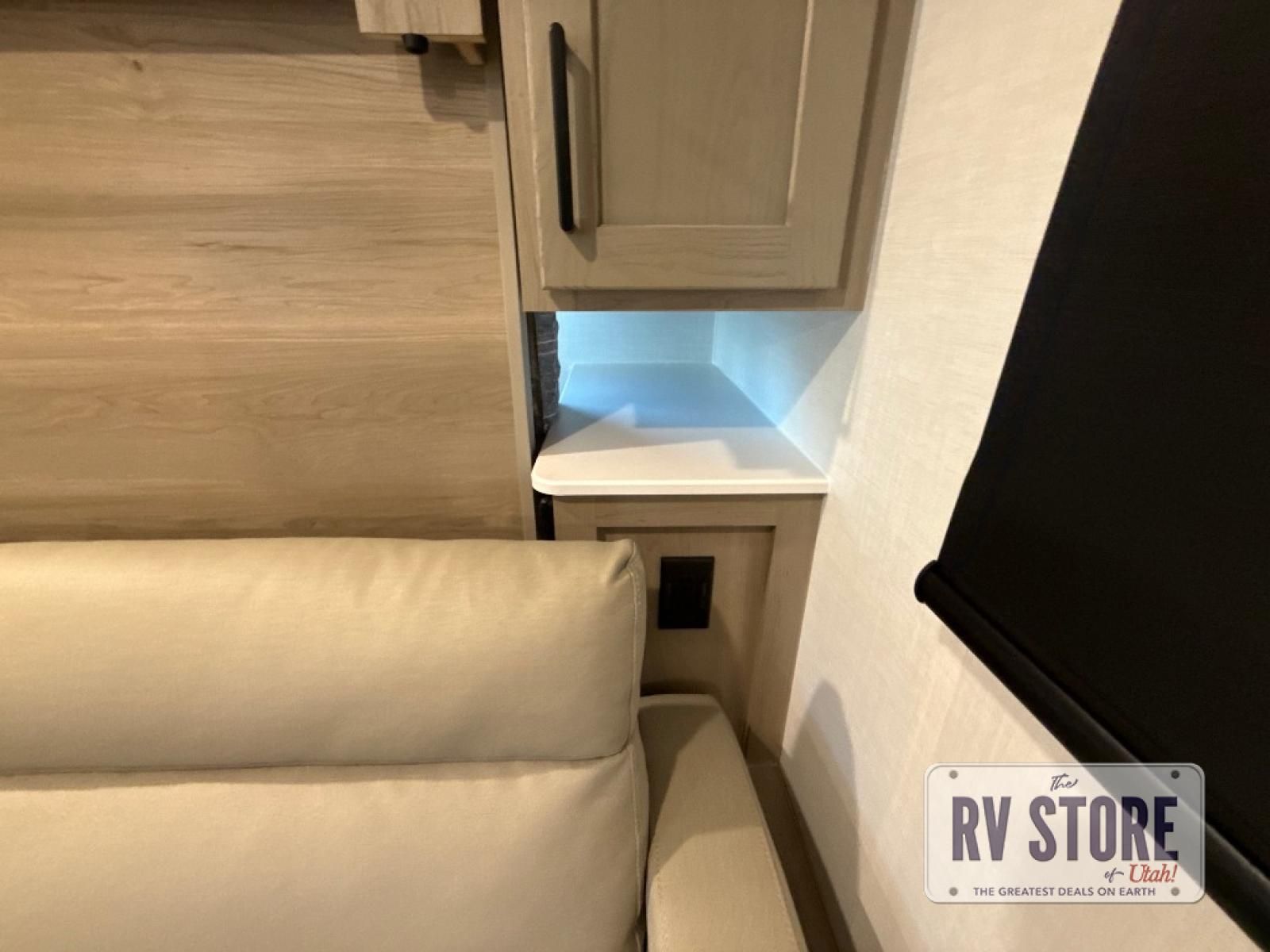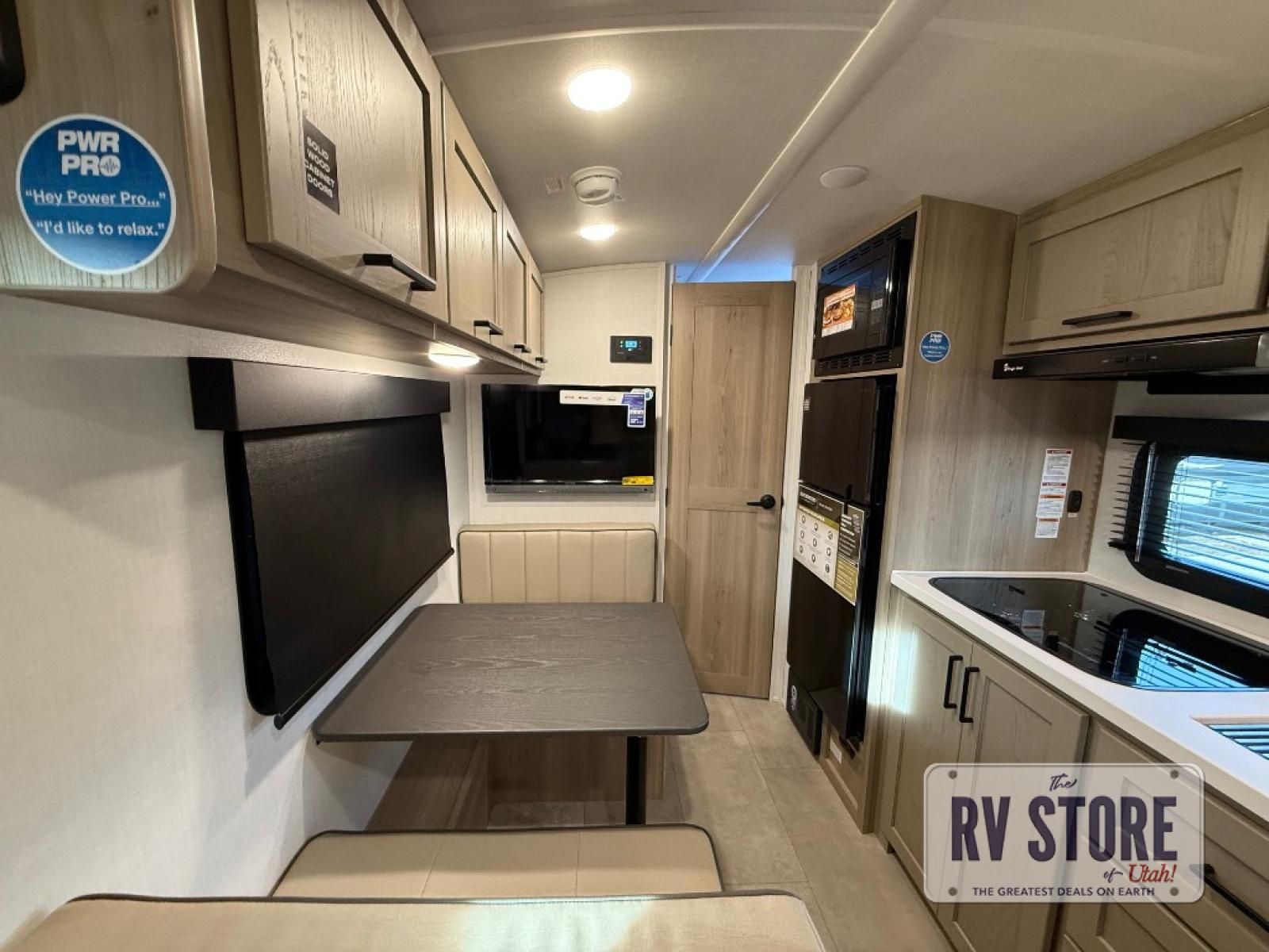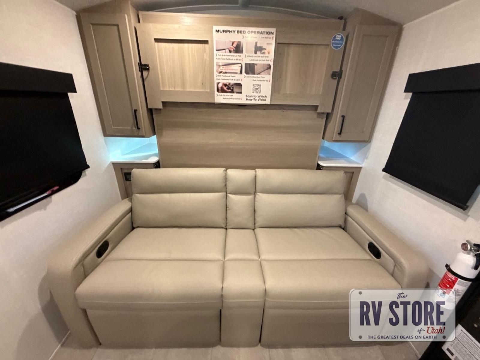 You will love how versatile this travel trailer is thanks to the Murphy bed up front. After you've had a great night's rest, just fold it up to relax on the 72" sofa. This will give the chef more space in the morning to prepare breakfast on the three burner cooktop or in the microwave oven. There is a 32" booth dinette to dine at, or you may just want to take your plate outdoors under the 14' power awning. The full rear bath includes a large linen closet to store clean towels. You will appreciate a pass-through storage, plus additional exterior storage so you can bring along hiking gear, water tubes, and fishing poles!Â