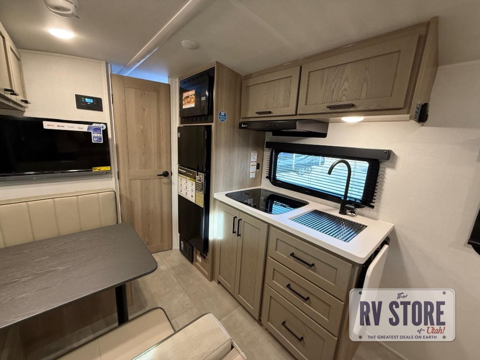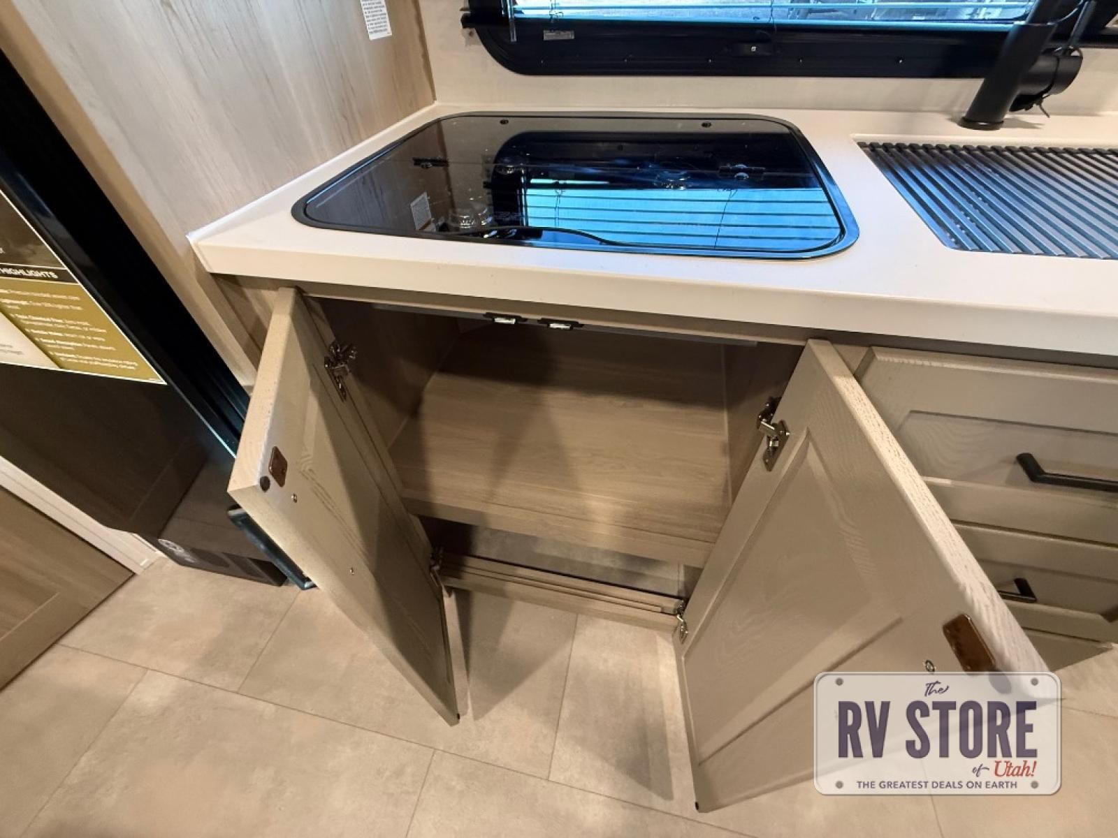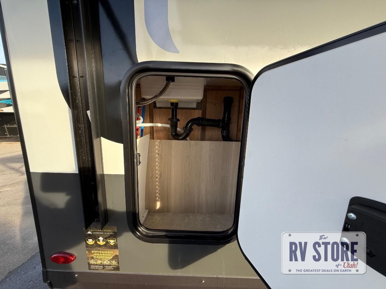 You will love how versatile this travel trailer is thanks to the Murphy bed up front. After you've had a great night's rest, just fold it up to relax on the 72" sofa. This will give the chef more space in the morning to prepare breakfast on the three burner cooktop or in the microwave oven. There is a 32" booth dinette to dine at, or you may just want to take your plate outdoors under the 14' power awning. The full rear bath includes a large linen closet to store clean towels. You will appreciate a pass-through storage, plus additional exterior storage so you can bring along hiking gear, water tubes, and fishing poles!Â