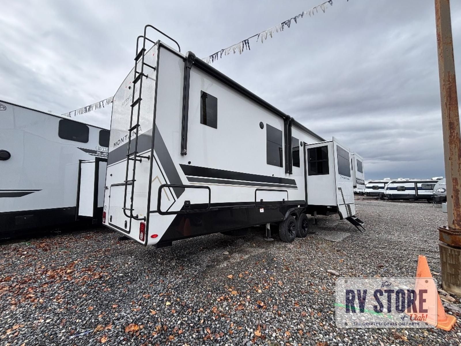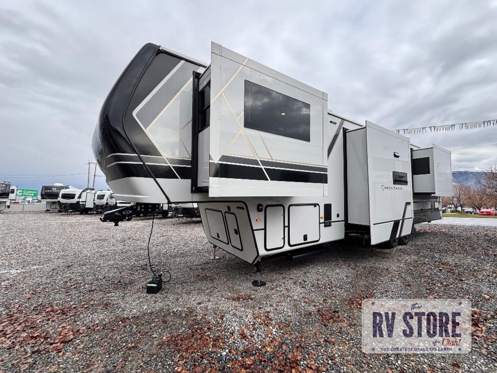Enjoy luxury, innovation, and the outdoors in any one of Montana's finest fifth wheels. Each set the standard with exceptional features, and exciting factory installed options to provide you a great home on the road. Keystone's 12" I-beam chassis with z-frame technology provides a strong and durable foundation to your fifth wheel, and the four season living package will help extend your camping season. A few other construction features you will appreciate include a MORryde CRE3000 suspension, a fully walkable roof with an alpha seamless TPO membrane system, and 4k square frameless tinted safety glass windows. Each feature stylish interiors with two decor choices paired with beautiful hardwood cabinetry, Beauflor vinyl flooring throughout, central vacuum, plus a La-Z-Boy furniture package for all-around comfort!