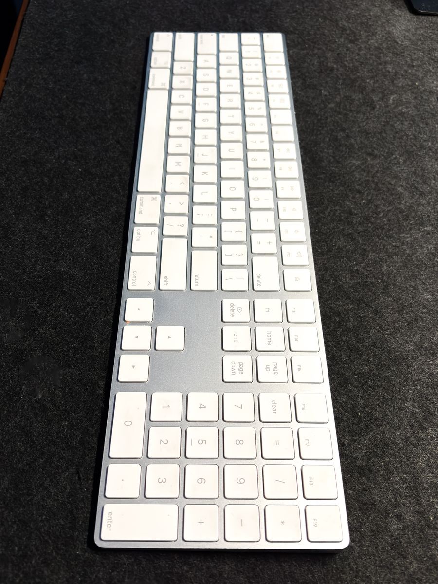 Bluetooth and rechargeable. Works with Mac, iPad, or iPhone, US English white.