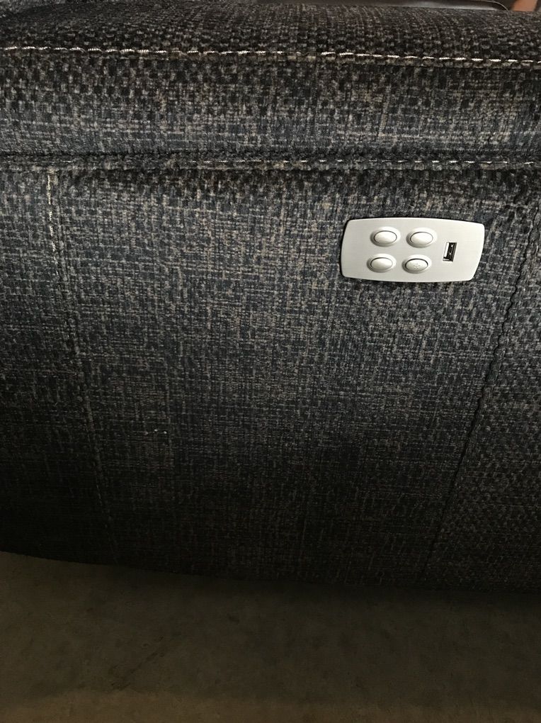 ApplePayThis GORGEOUS Sectional is so cool! The color variance of Navy and grey makes it a stand out. The softest chenille fabric ever! It has THREE FULL power motion seats with all sorts of cool features including power motion for your head and feat areas. With a USB port in it for productive relaxation. Stainless steel cupholders personal favorite