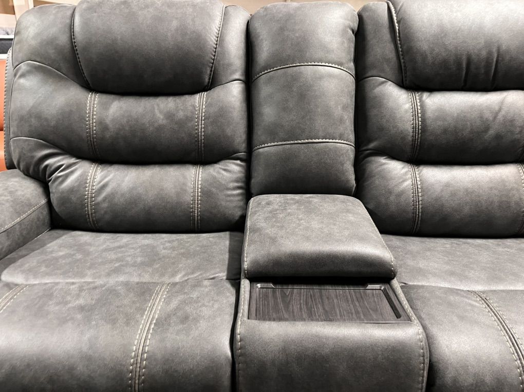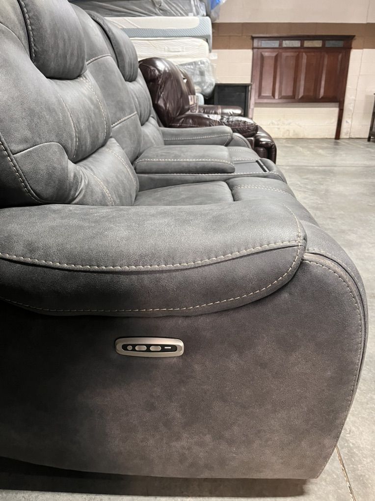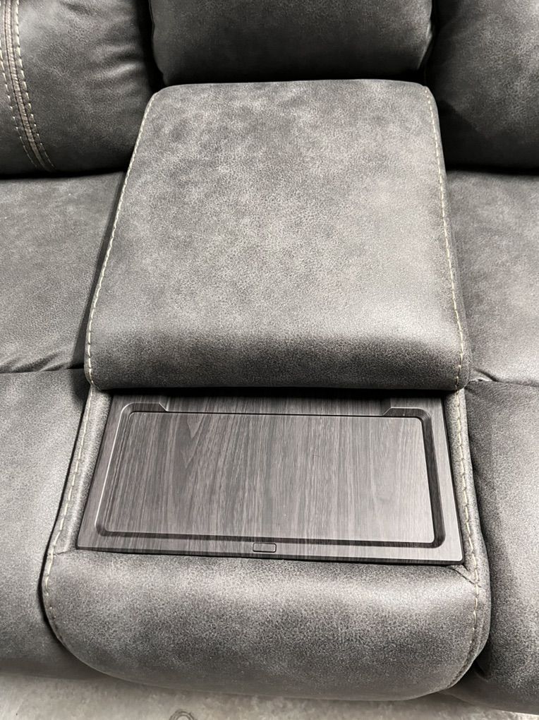 ApplePayThis sofa loveseat set is full power adjust(2 reclining seats in each couch). Polished microfiber, great for east cleanup. Hidden cupholders. USB ports for easy access charging.