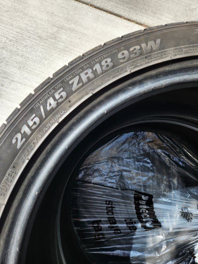 Tires for 18 inch rims. Came off a Mazda 3 that we no longer own. Ran these tires for two summers. Approx 15k miles driven on them. They still have lots of life left. Full size in the description. Come take a look!