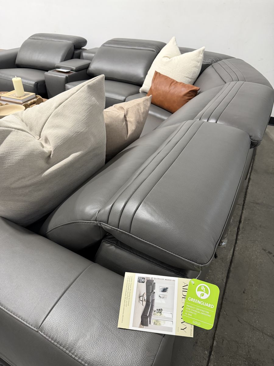 Gray Leather 3 power recliner with 3 power headrests Storage console with cupholders Retails for $3,299