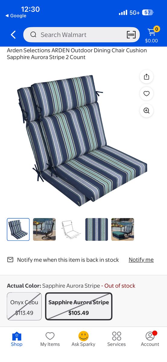 ARDEN Outdoor Dining Chair Cushion Sapphire Aurora Stripe