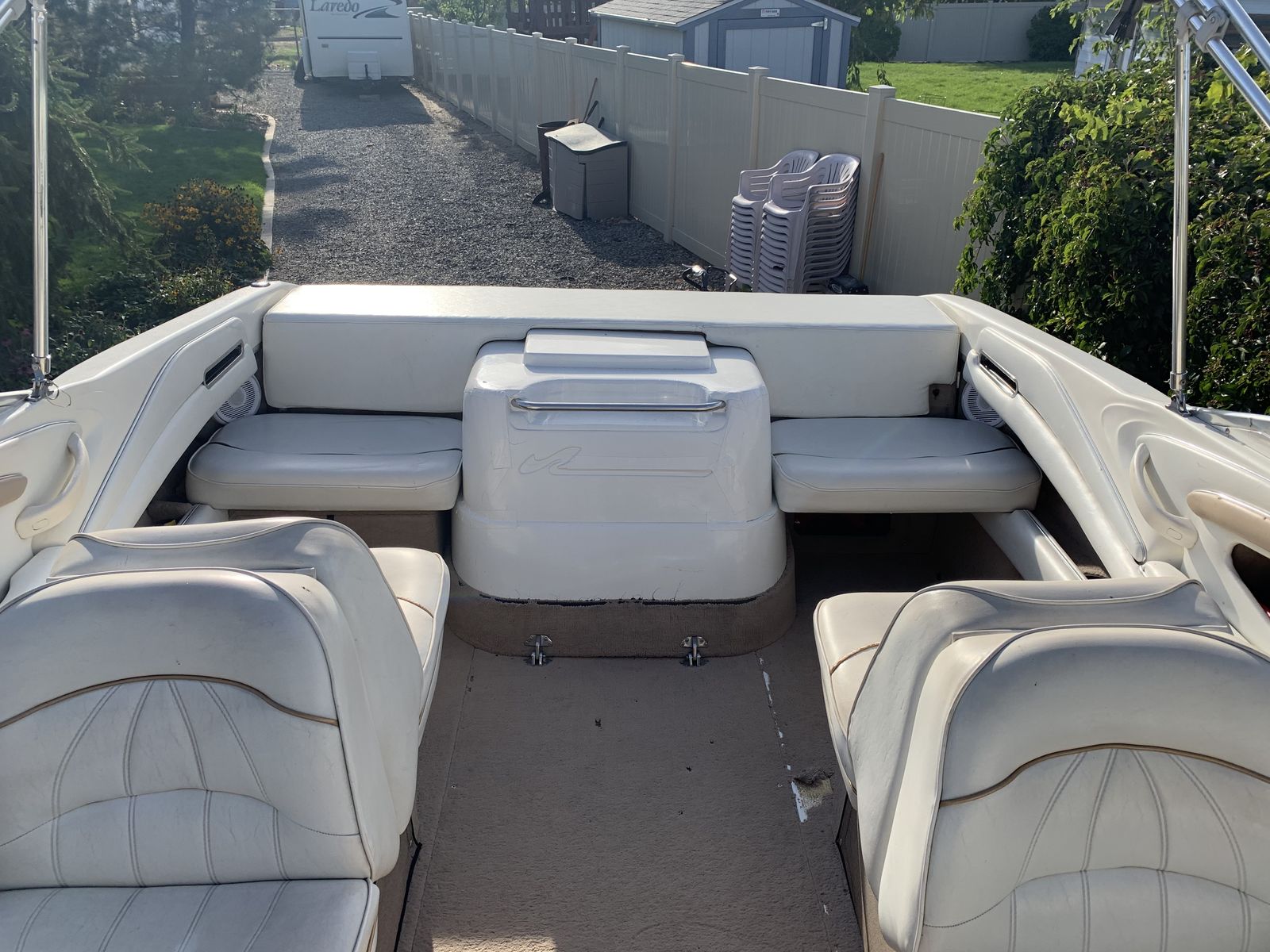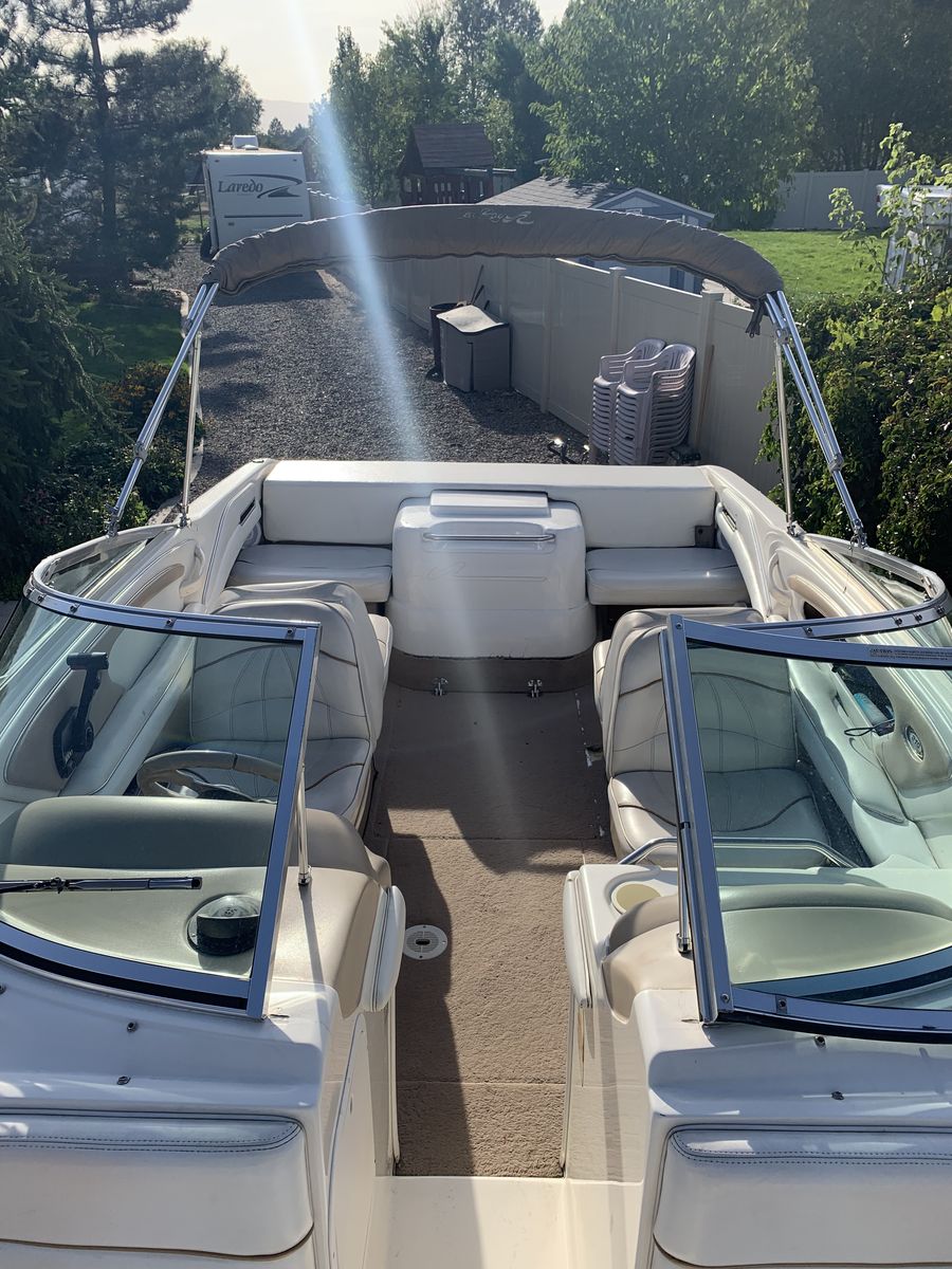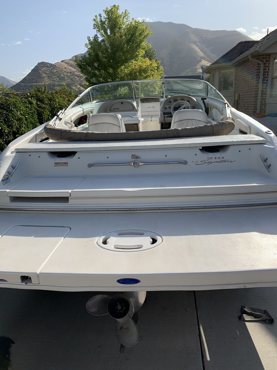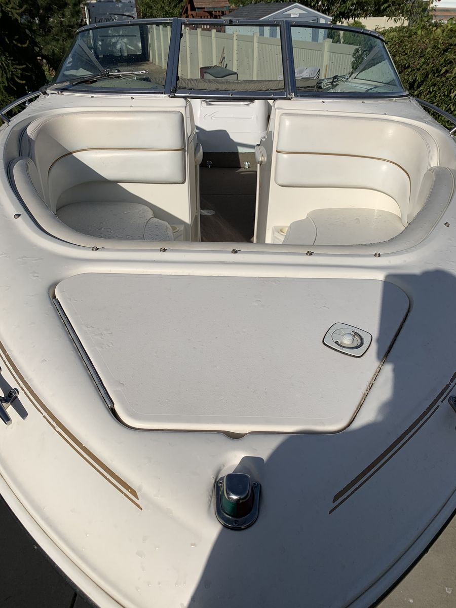 Zelle21’ Sea Ray 1997 open bow boat. We’ve owned this boat for 20 years. Extended swim platform, bow fill in cushions, Bimini and full enclosure for rain and cold weather. It needs new carpet inside and a few cosmetic repairs. Runs great!!!! New outdrive and gears and a fuel pump. Just under 500 hours. This boat rides so smooth l.