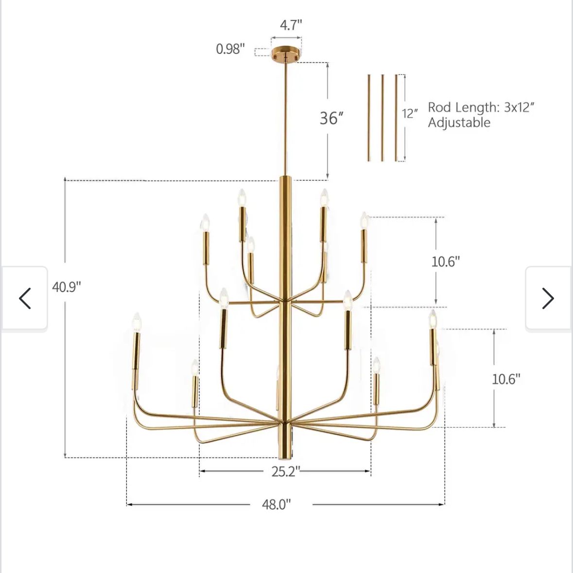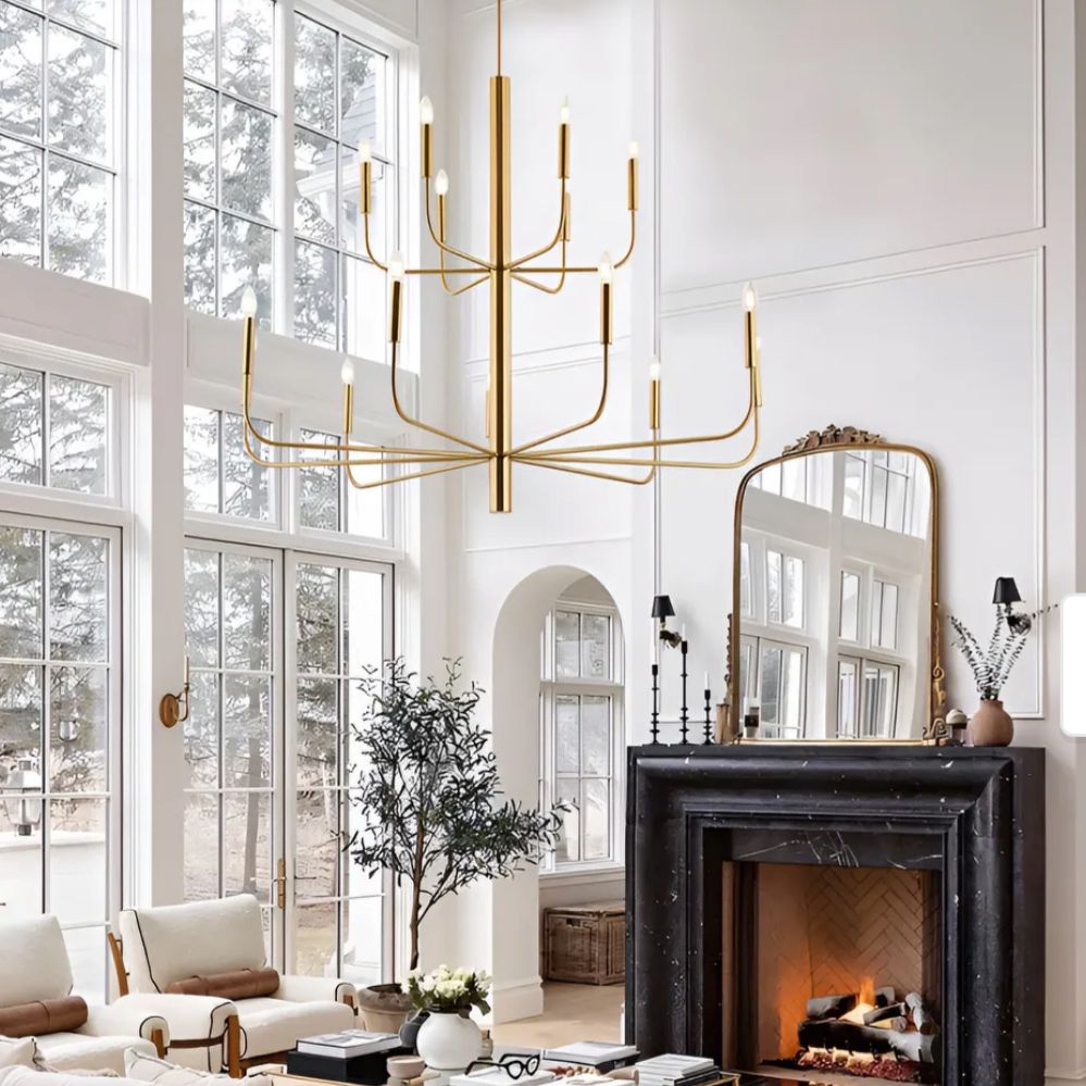 15-Light Minimalist Candlestick Chandelier, 2 Tier Ancient Design - 48
