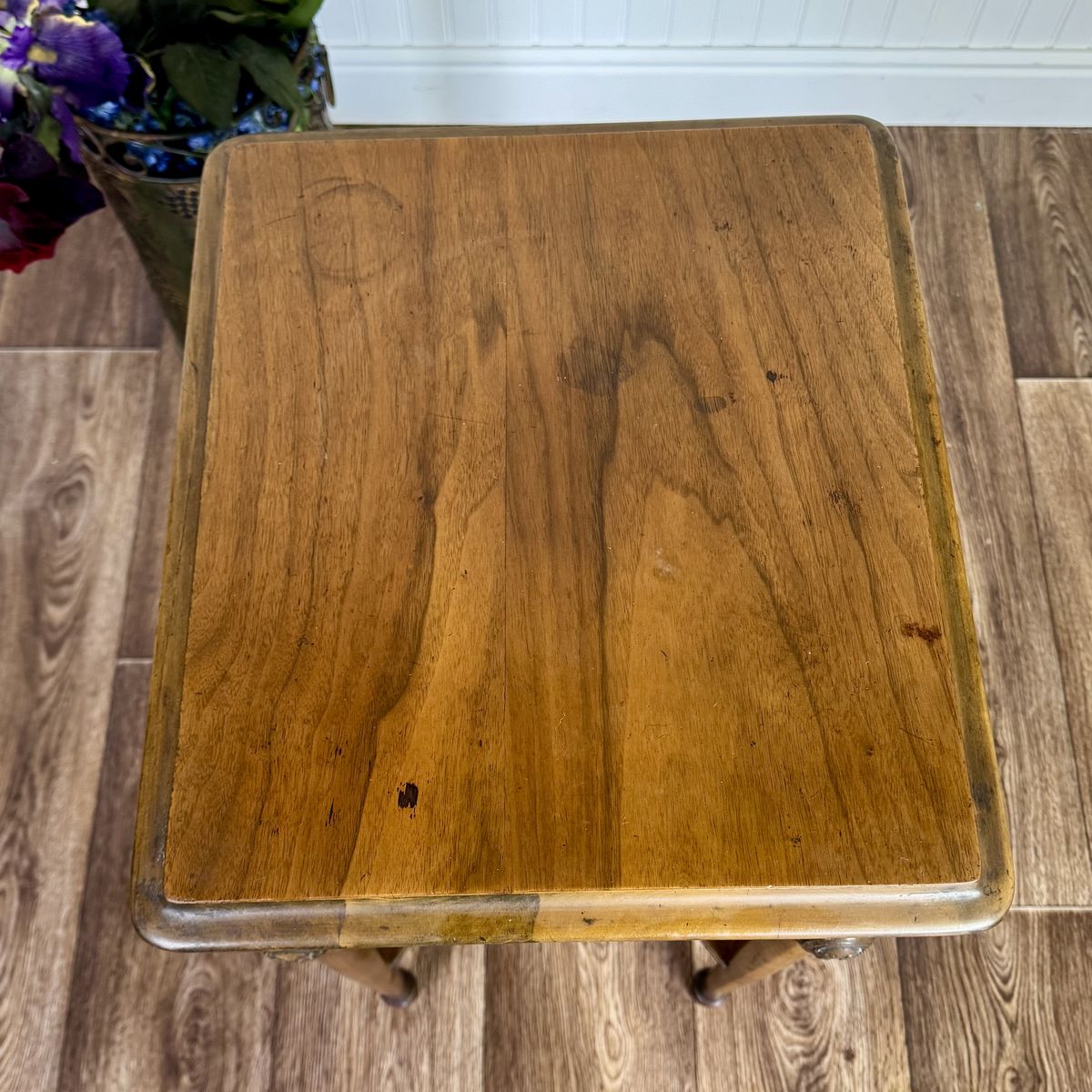 The piece is sturdy and structurally solid. There is some light wear to the top consistent with age, which does not detract from its overall charm.